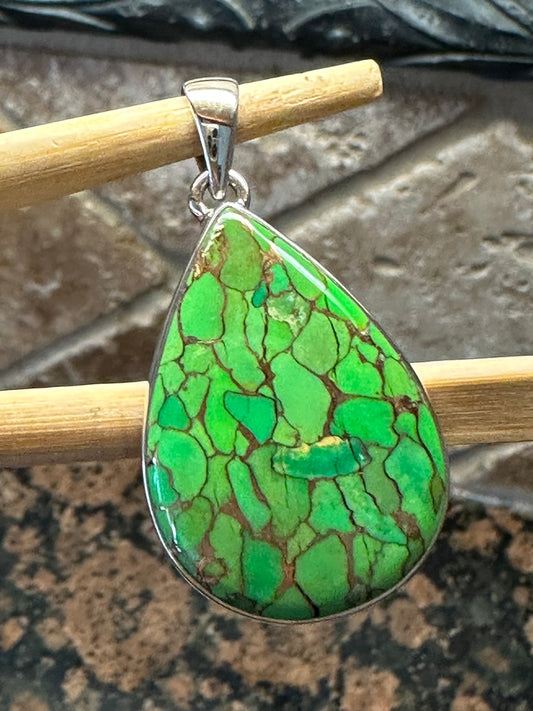 Natural Green Copper Turquoise 925 Solid Sterling Silver Pendant 40mm