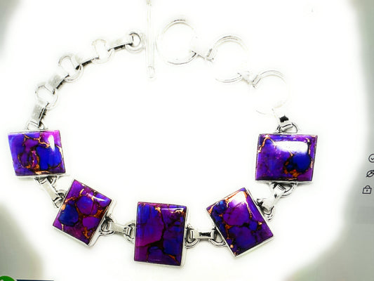 Gorgeous Purple Turquoise 925 Sterling Silver Bracelet 7" long