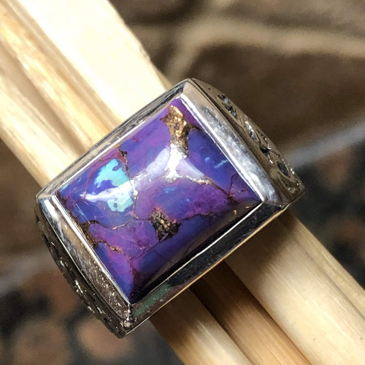 Gorgeous Purple Copper Turquoise 925 Sterling Silver Men's Ring Size 7, 8, 9, 10, 11, 12, 13, 14