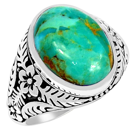 Natural Green and Blue Mohave Turquoise 925 Solid Sterling Silver Men's Ring Size 9, 10, 11, 12, 13
