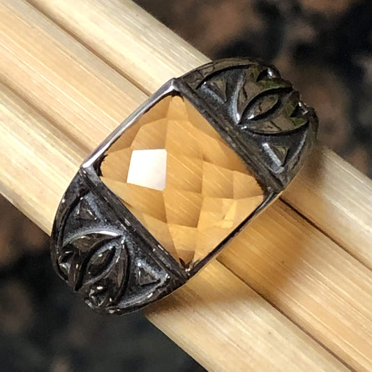 Natural 2ct Golden Citrine 925 Solid Sterling Silver Men's Ring Size 7, 8, 9, 10, 11, 12, 13