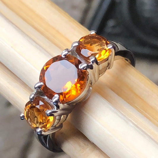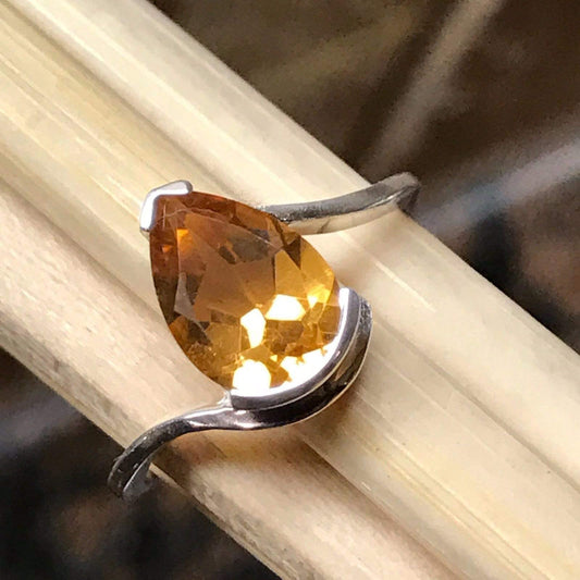Natural 2.5ct Golden Citrine 925 Solid Sterling Silver Ring Size 6, 7, 8, 9
