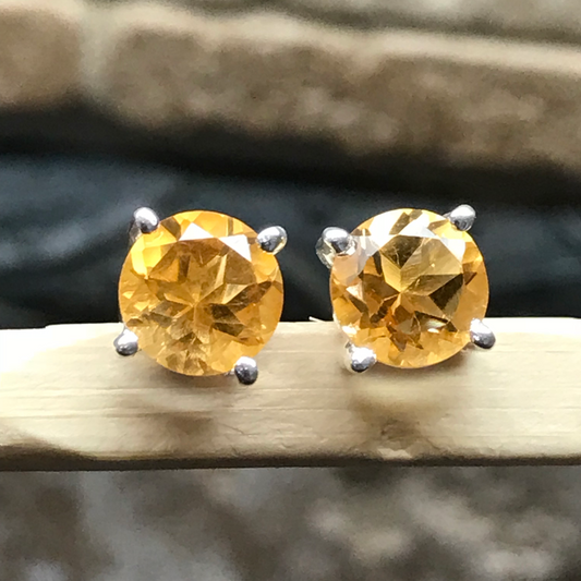 Natural 1.5ct Golden Citrine 925 Solid Sterling Silver Earring 7mm