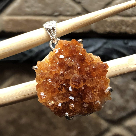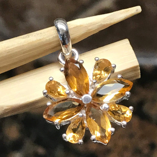 Natural Golden Citrine 925 Solid Sterling Silver Cluster Pendant 25mm