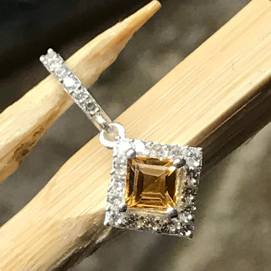 Genuine Golden Citrine 925 Solid Sterling Silver Pendant 20mm