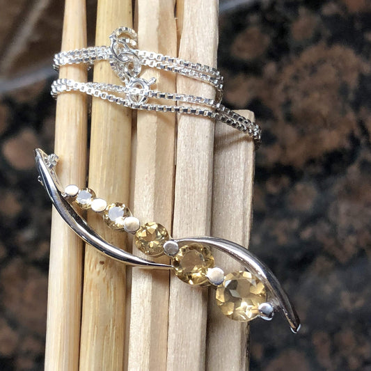 Natural 2.5ct Golden Citrine 925 Solid Sterling Silver Pendant Necklace 16''