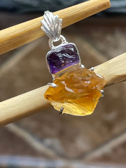 Natural Golden Citrine, Amethyst 925 Solid Sterling Silver Pendant 30mm