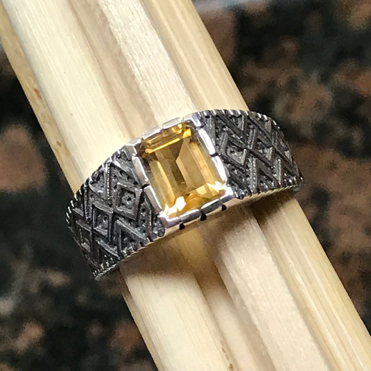 Natural 2ct Golden Citrine 925 Sterling Silver Men's Ring Size 6, 8, 9, 10, 11, 12, 13