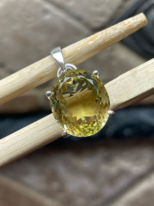 Natural 10ct Lemon Citrine 925 Solid Sterling Silver Pendant 25mm