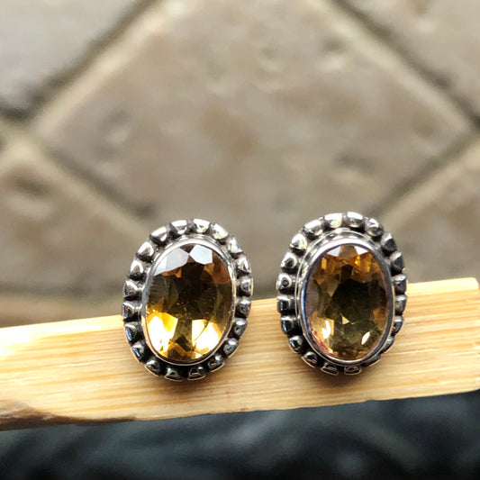 Genuine 2ct Golden Citrine 925 Solid Sterling Silver Earrings 10mm