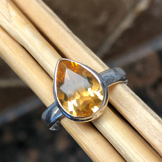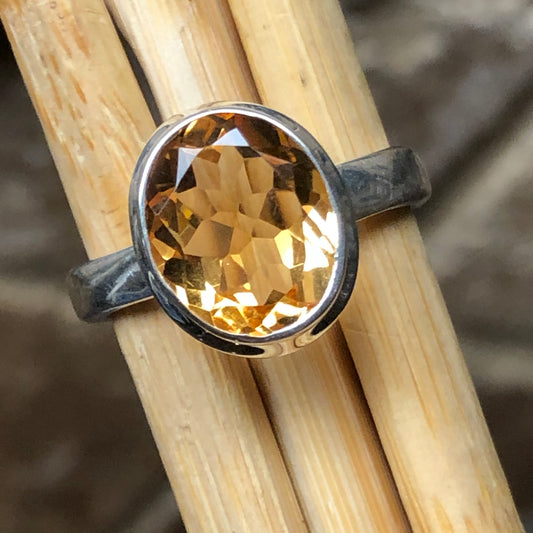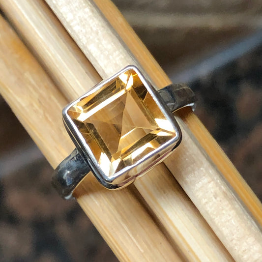 Genuine 4ct Golden Citrine 925 Solid Sterling Silver Ring Size 6, 7, 8, 9