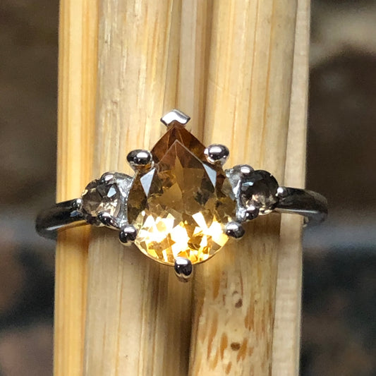 Natural 8ct Smoky Topaz, Golden Citrine 925 Solid Sterling Silver Ring Size 6, 7, 8, 9