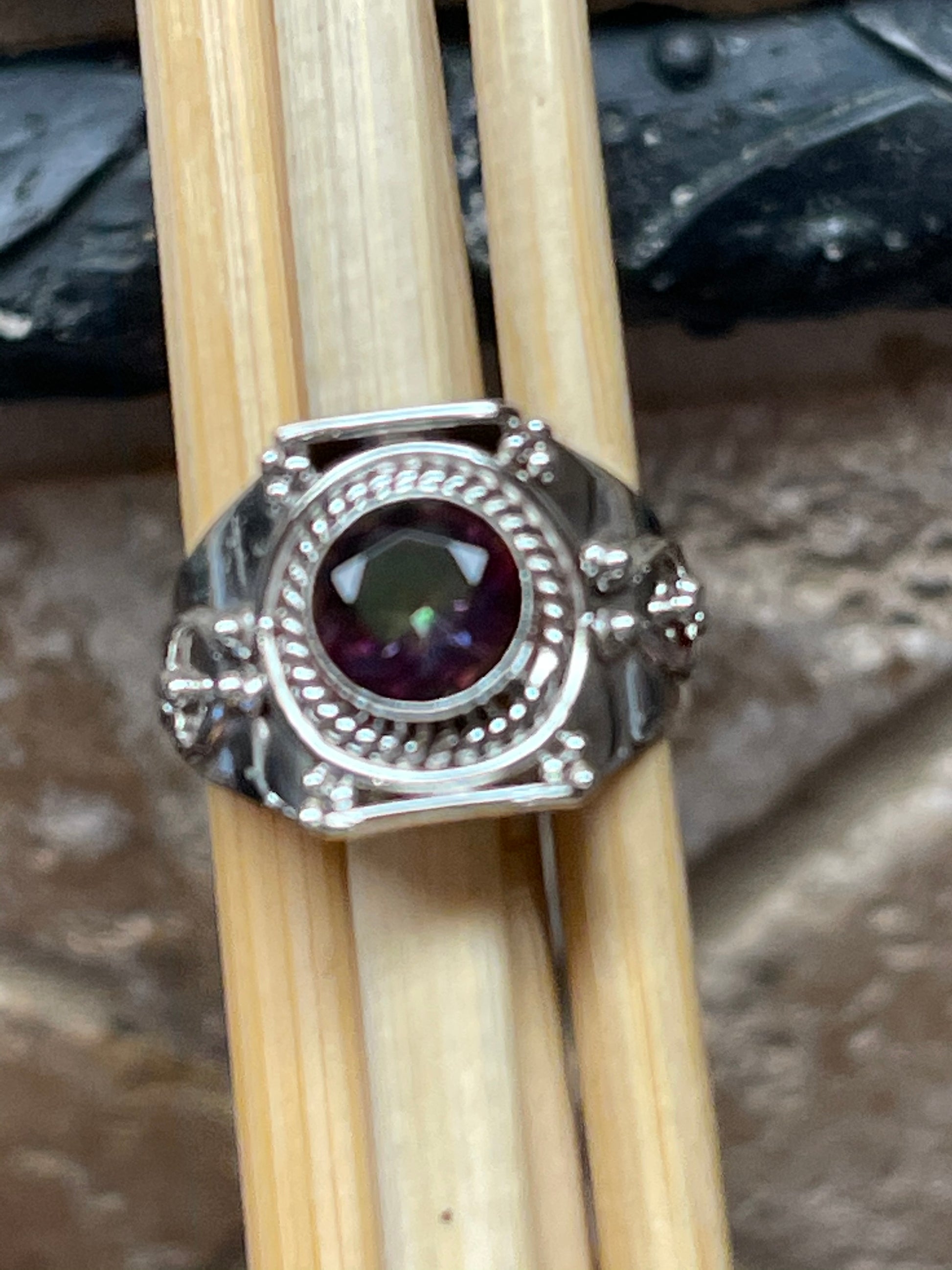 Gorgeous 1ct Mystic Topaz 925 Solid Sterling Silver Wedding Ring 6, 7.25, 8, 9.25