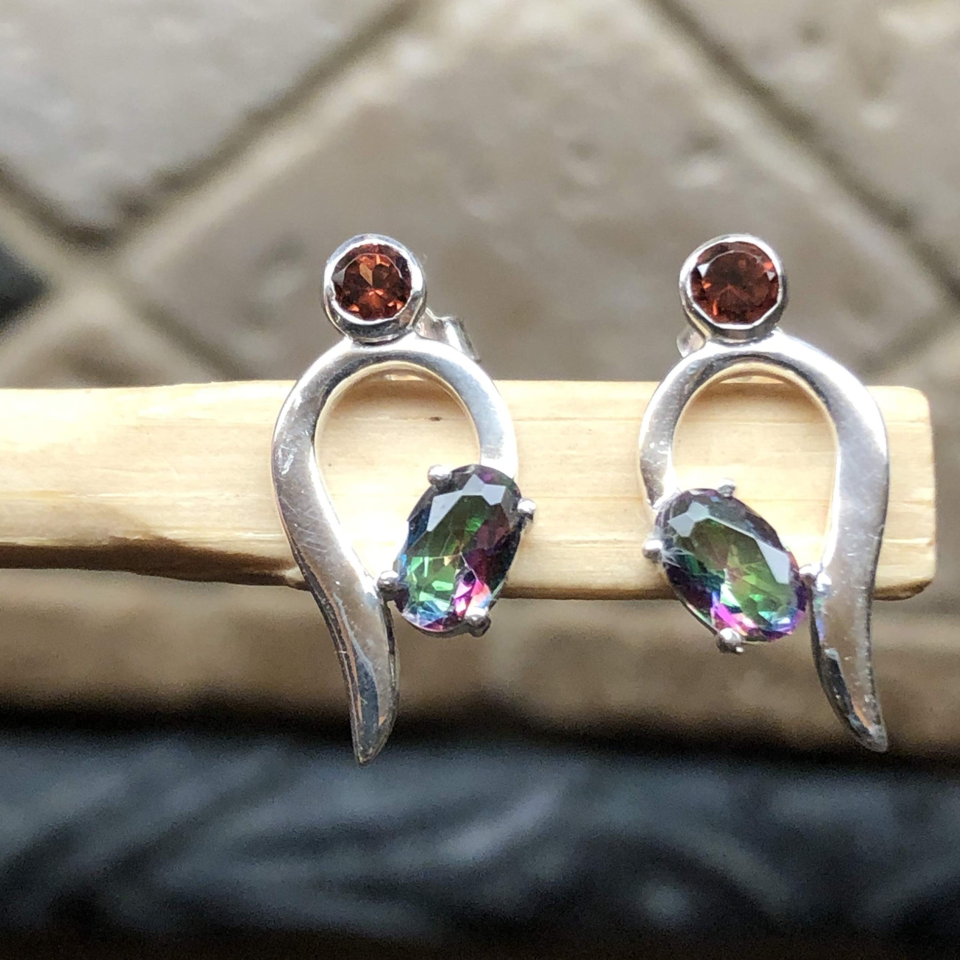 Gorgeous Mystic Topaz 925 Solid Sterling Silver Earrings 17mm