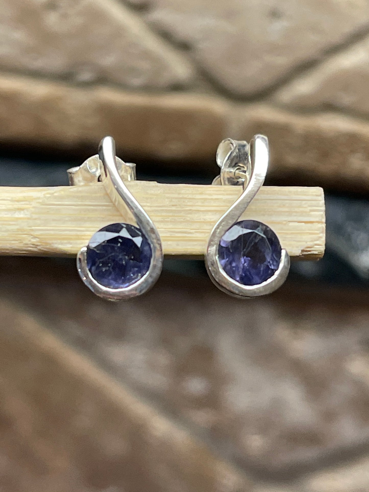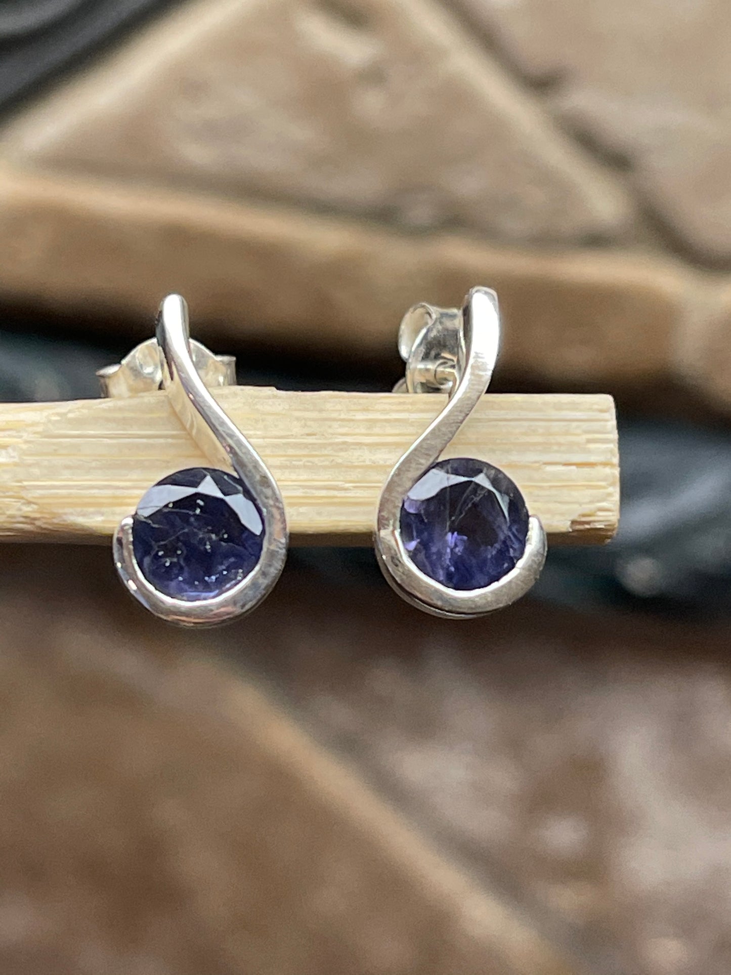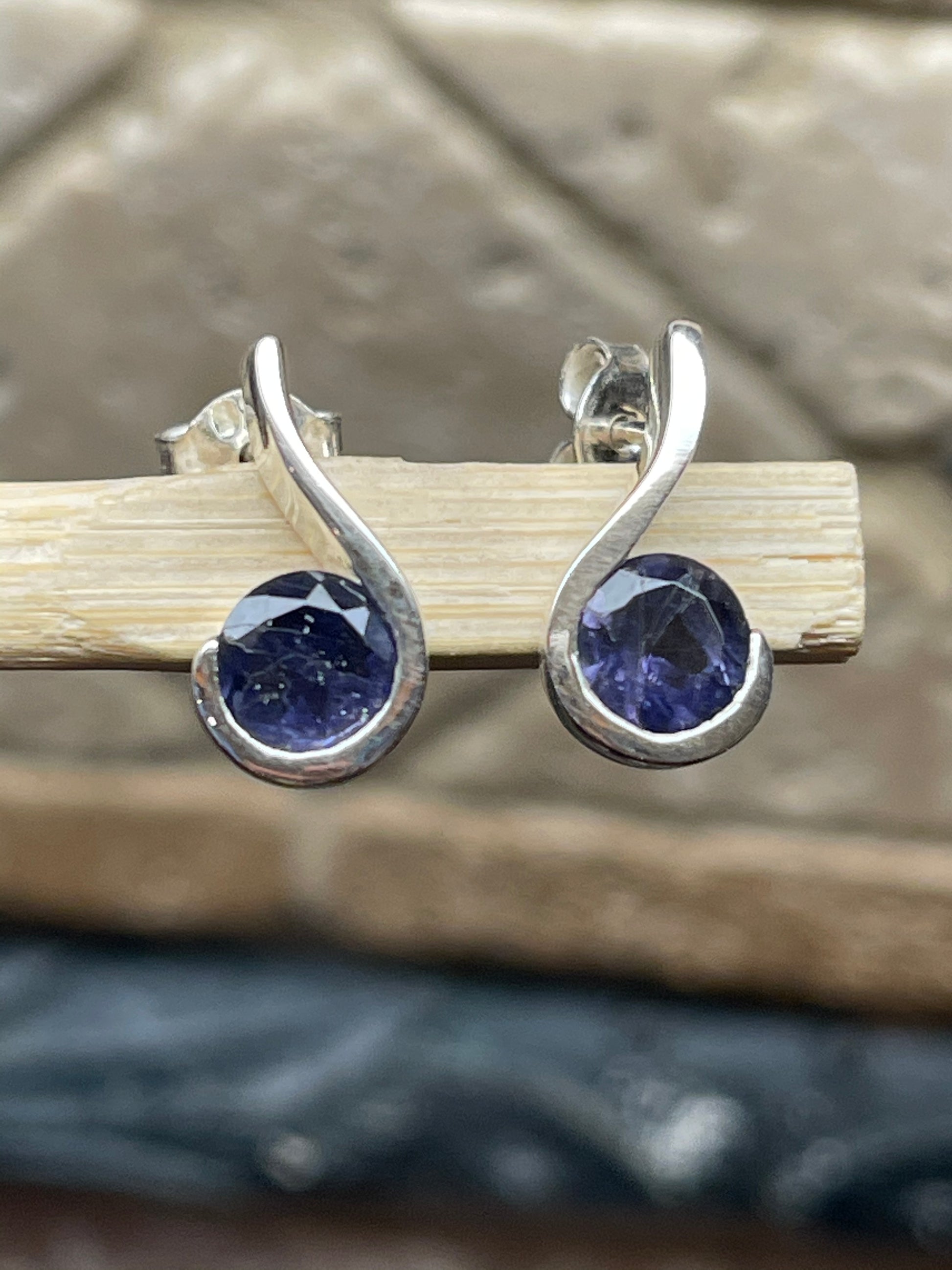 Natural 2ct Iolite 925 Solid Sterling Silver Earrings 12mm