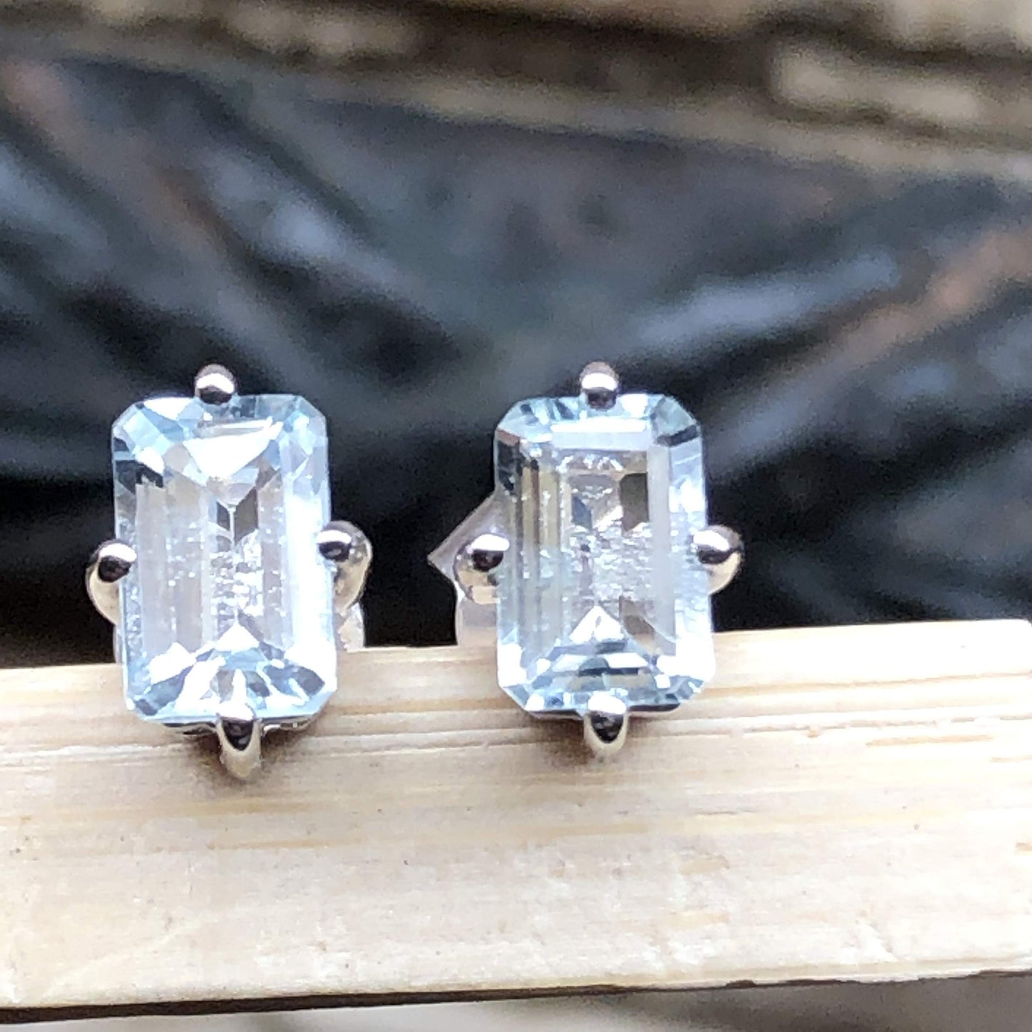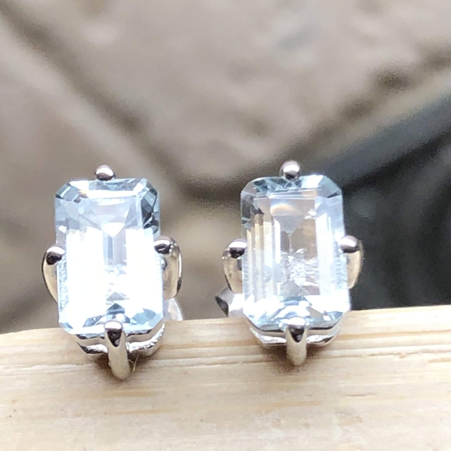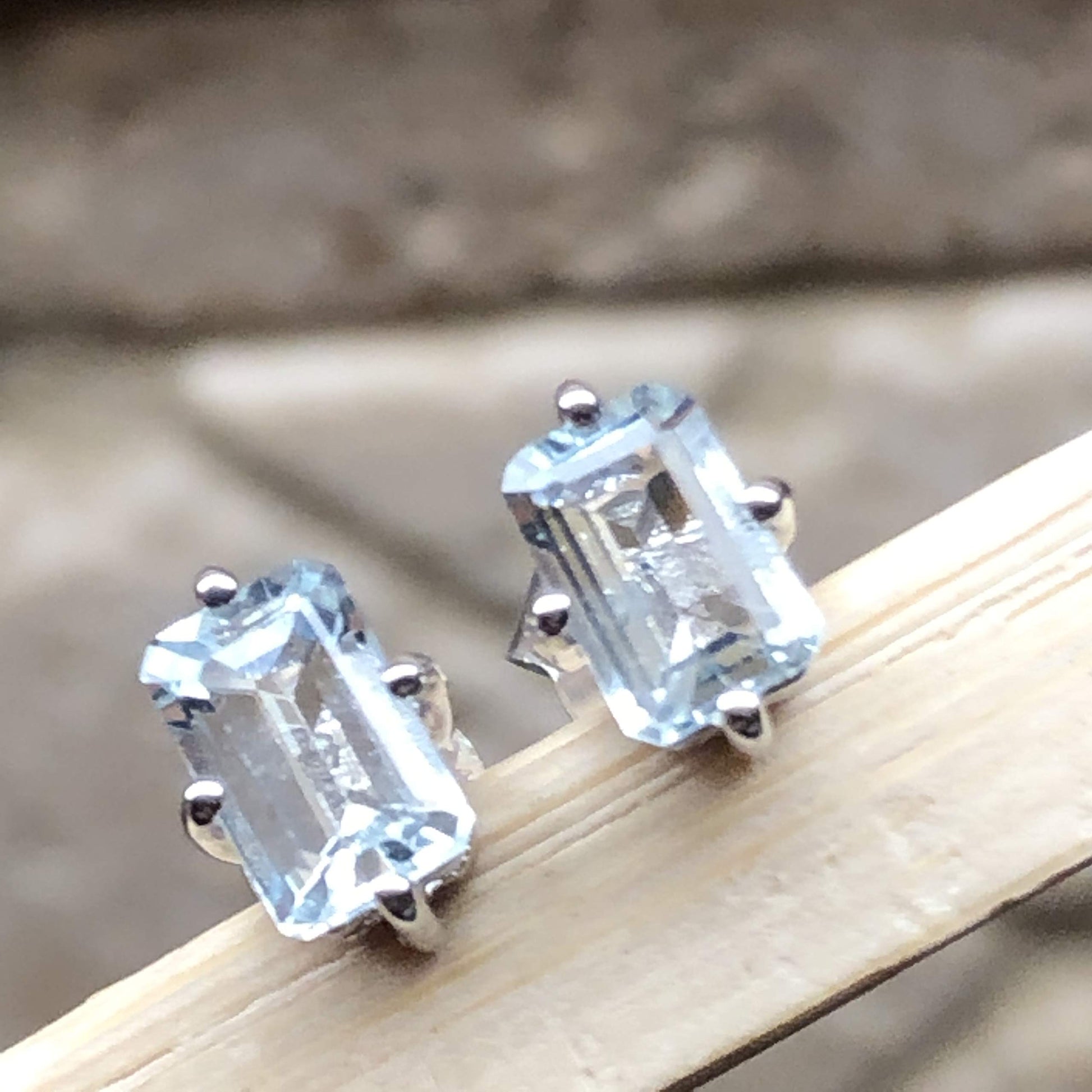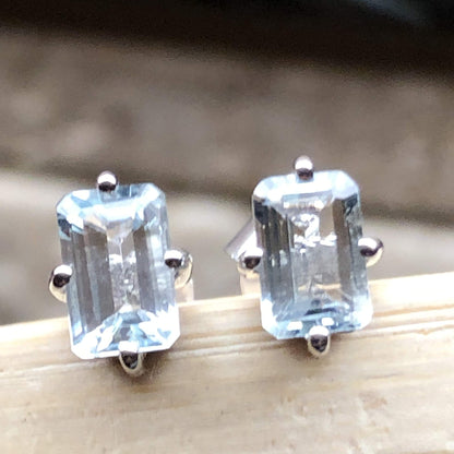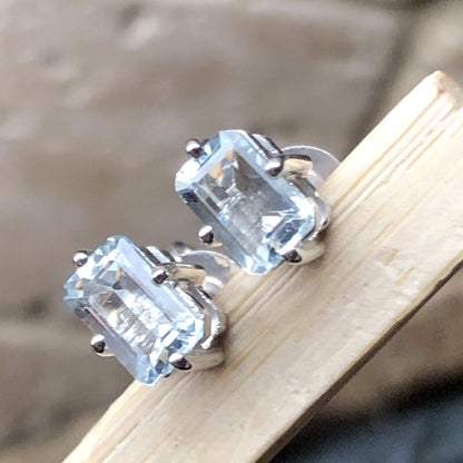 Natural 2ct Blue Aquamarine 925 Solid Sterling Silver Earrings 6mm