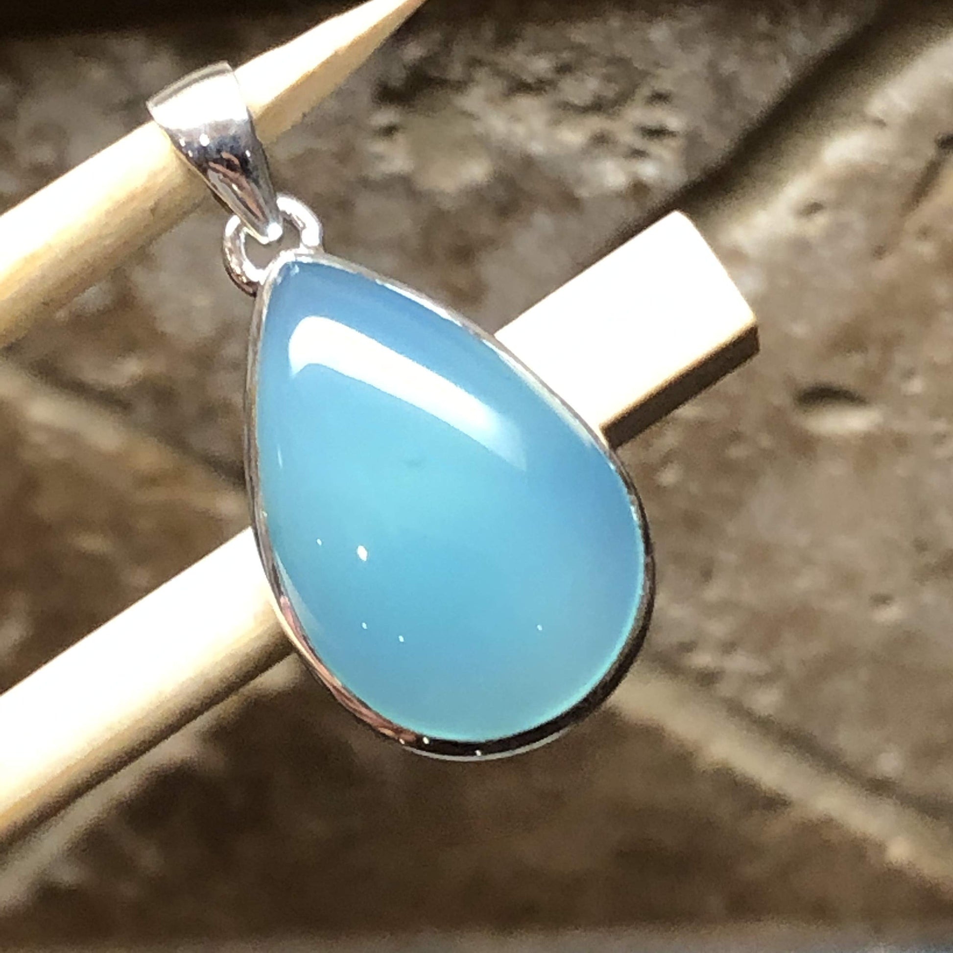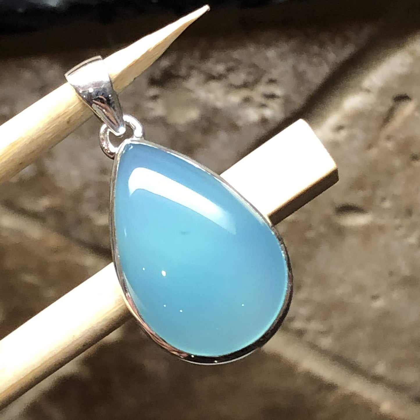 Natural Blue Chalcedony 925 Solid Sterling Silver Pendant 40mm