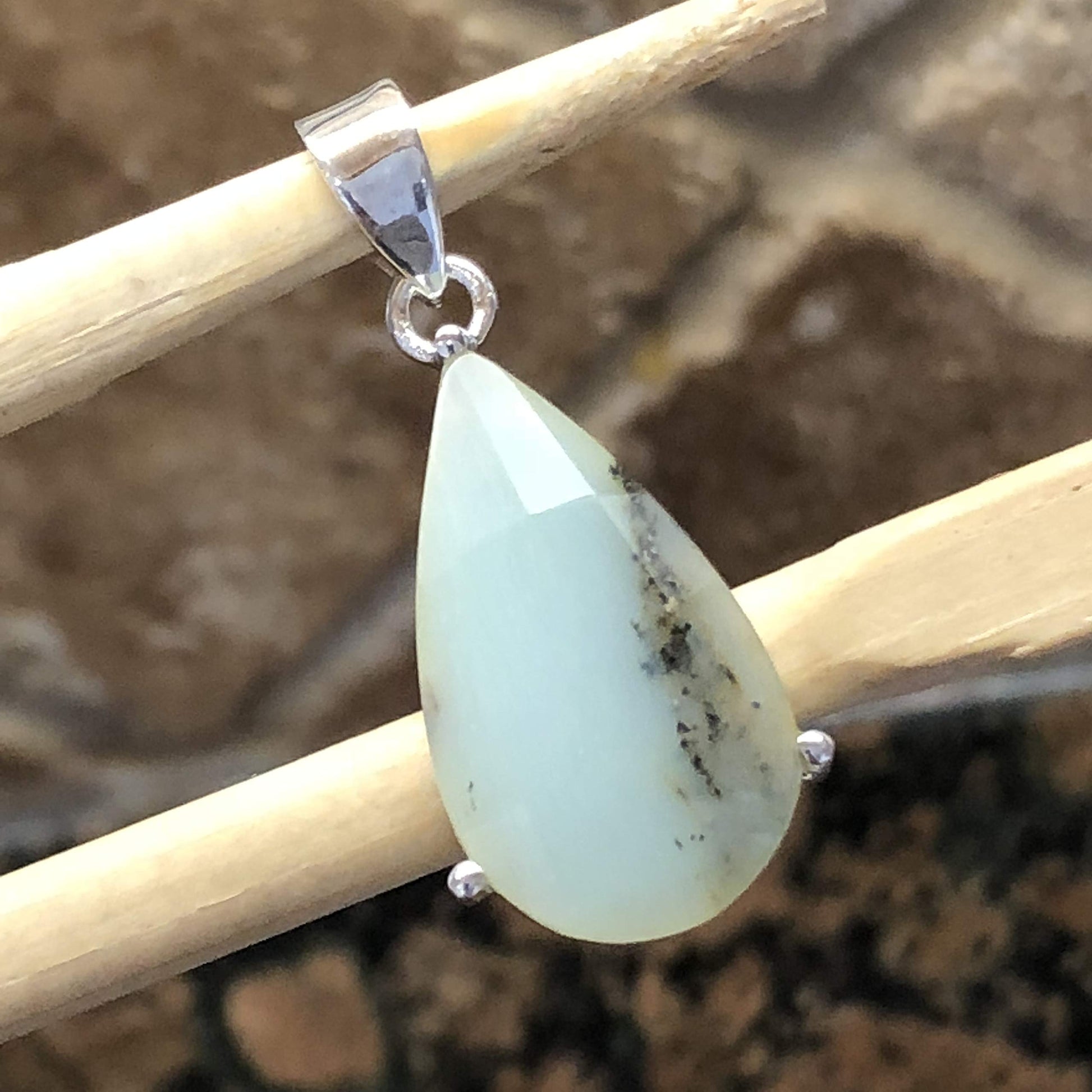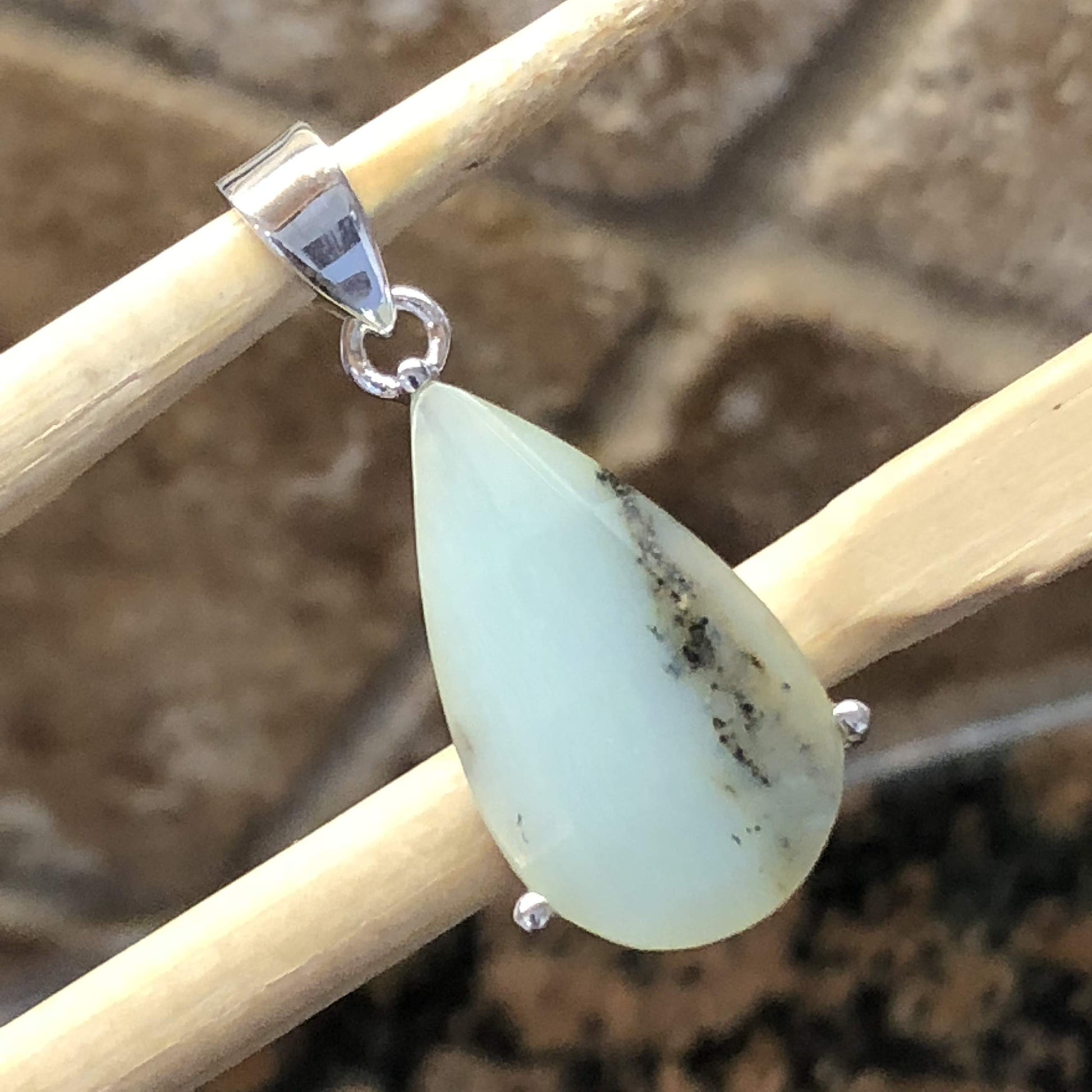 Natural Blue Peruvian Opal 925 Solid Sterling Silver Pendant 35mm