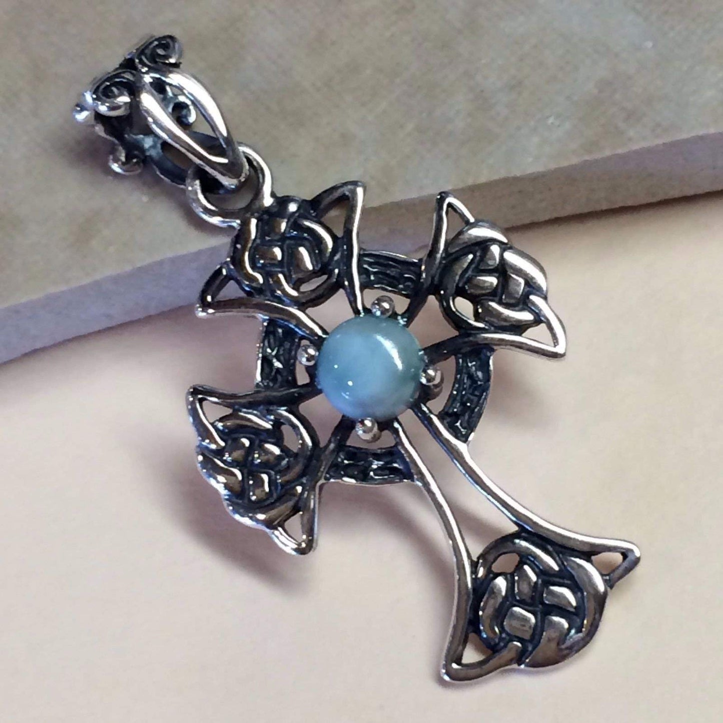 Natural Dominican Larimar 925 Solid Sterling Silver Cross Pendant 36mm