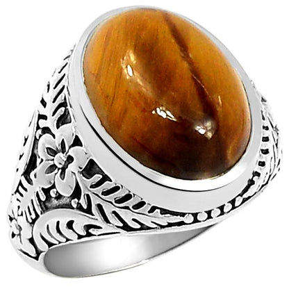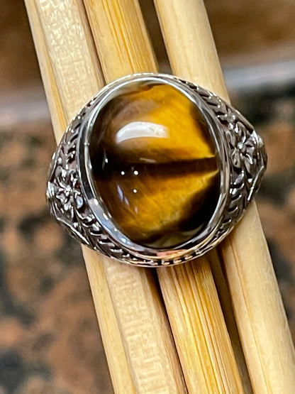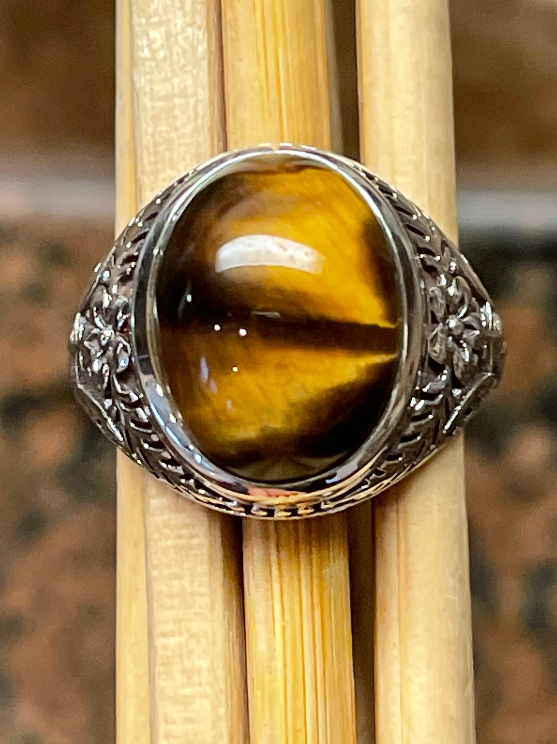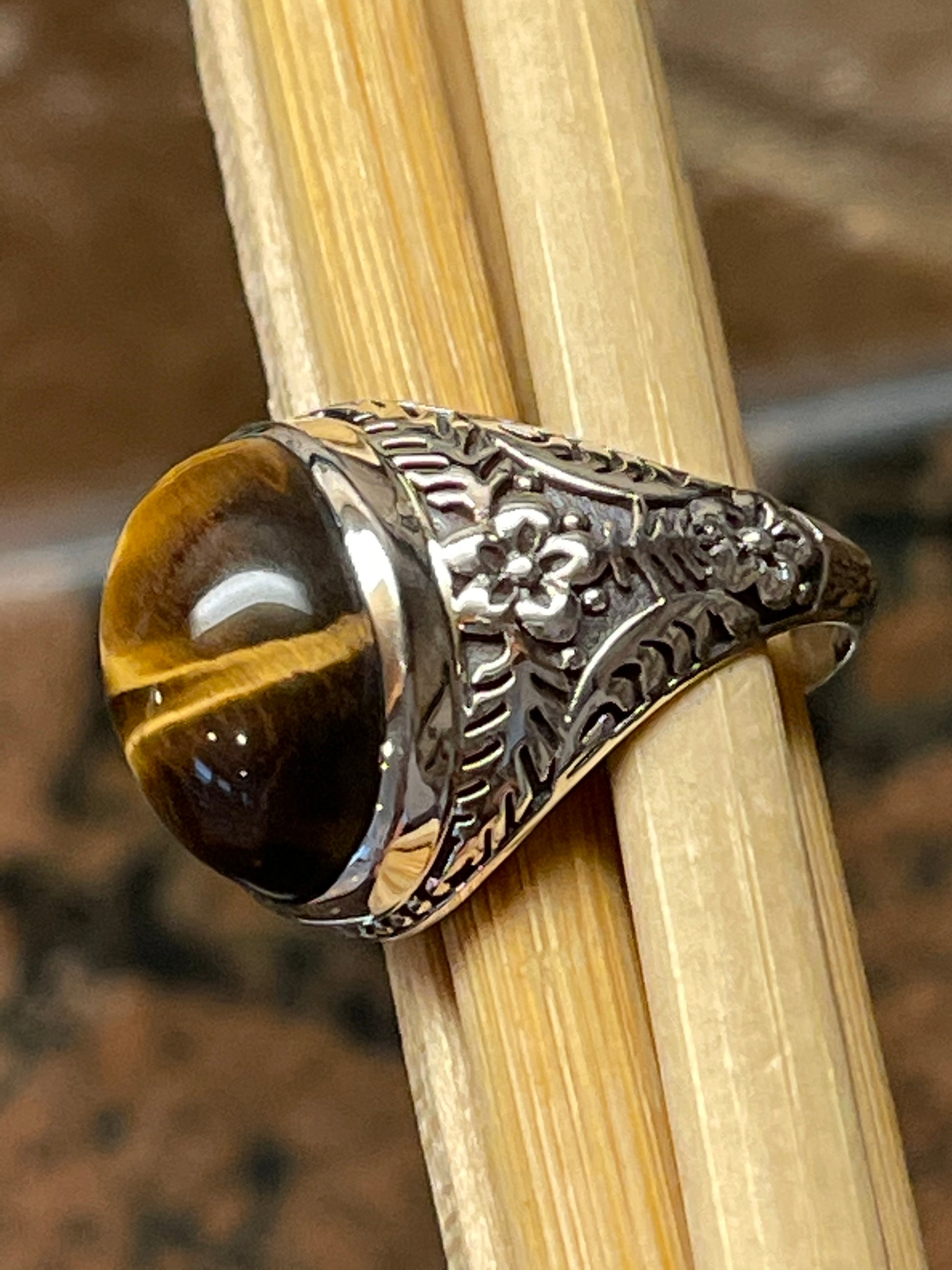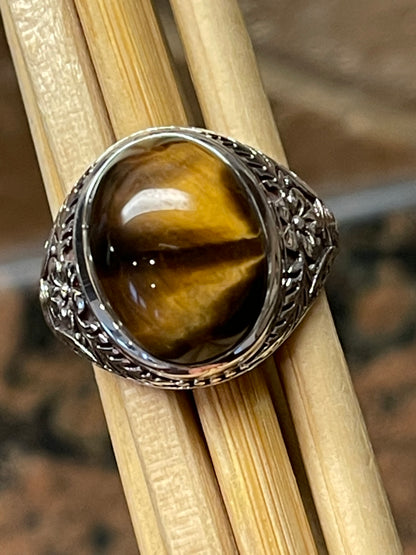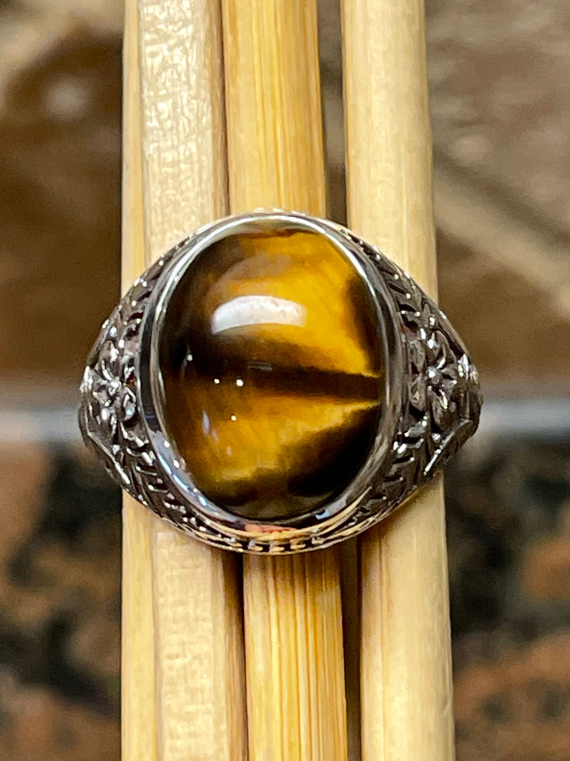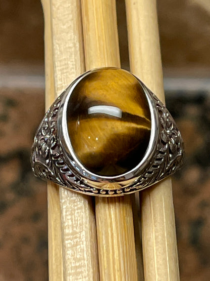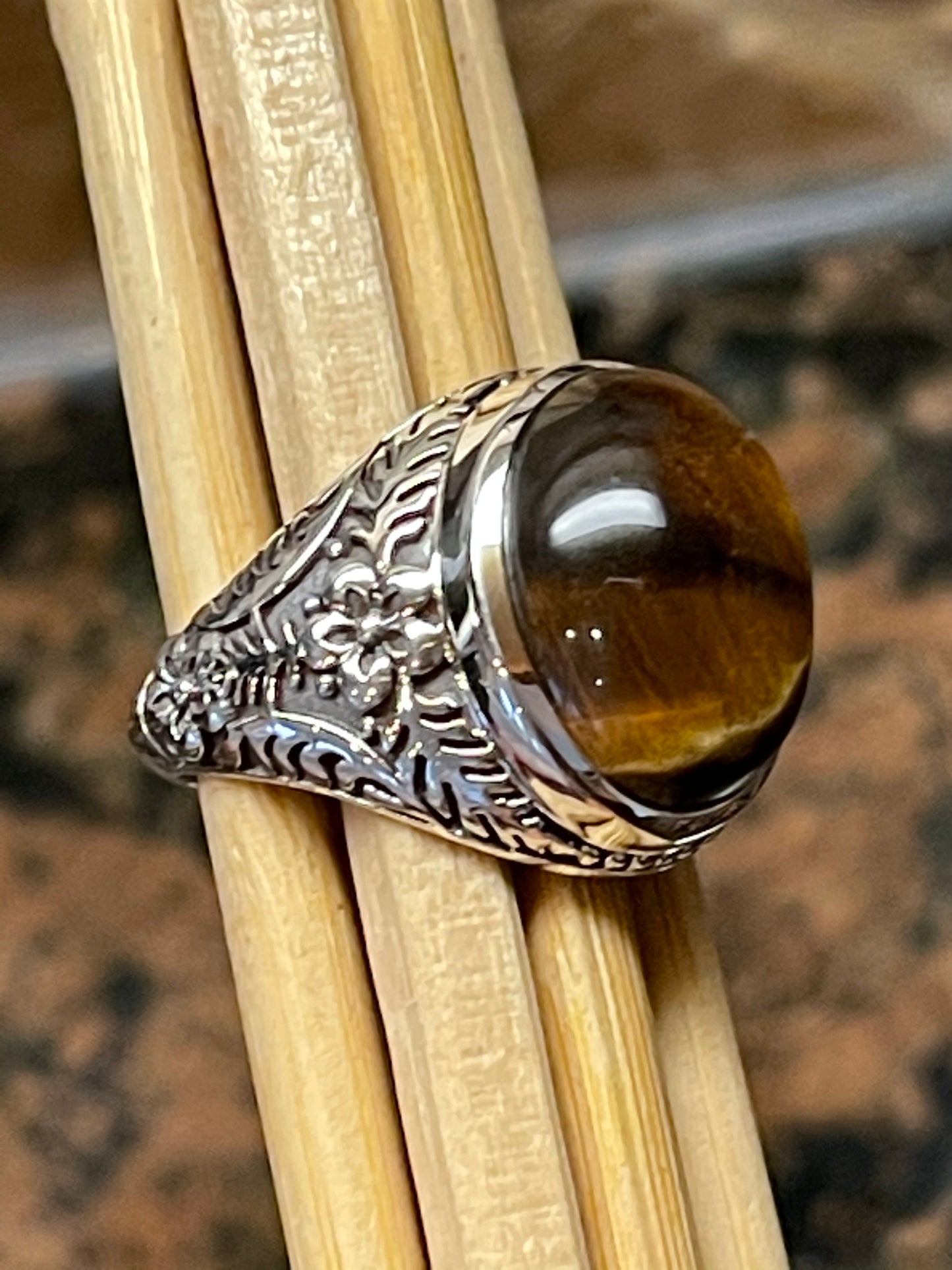 Natural Tiger's Eye 925 Solid Sterling Silver Men's Ring Size 7, 8, 9, 10, 12
