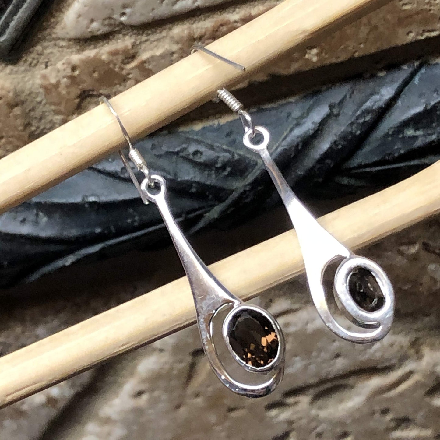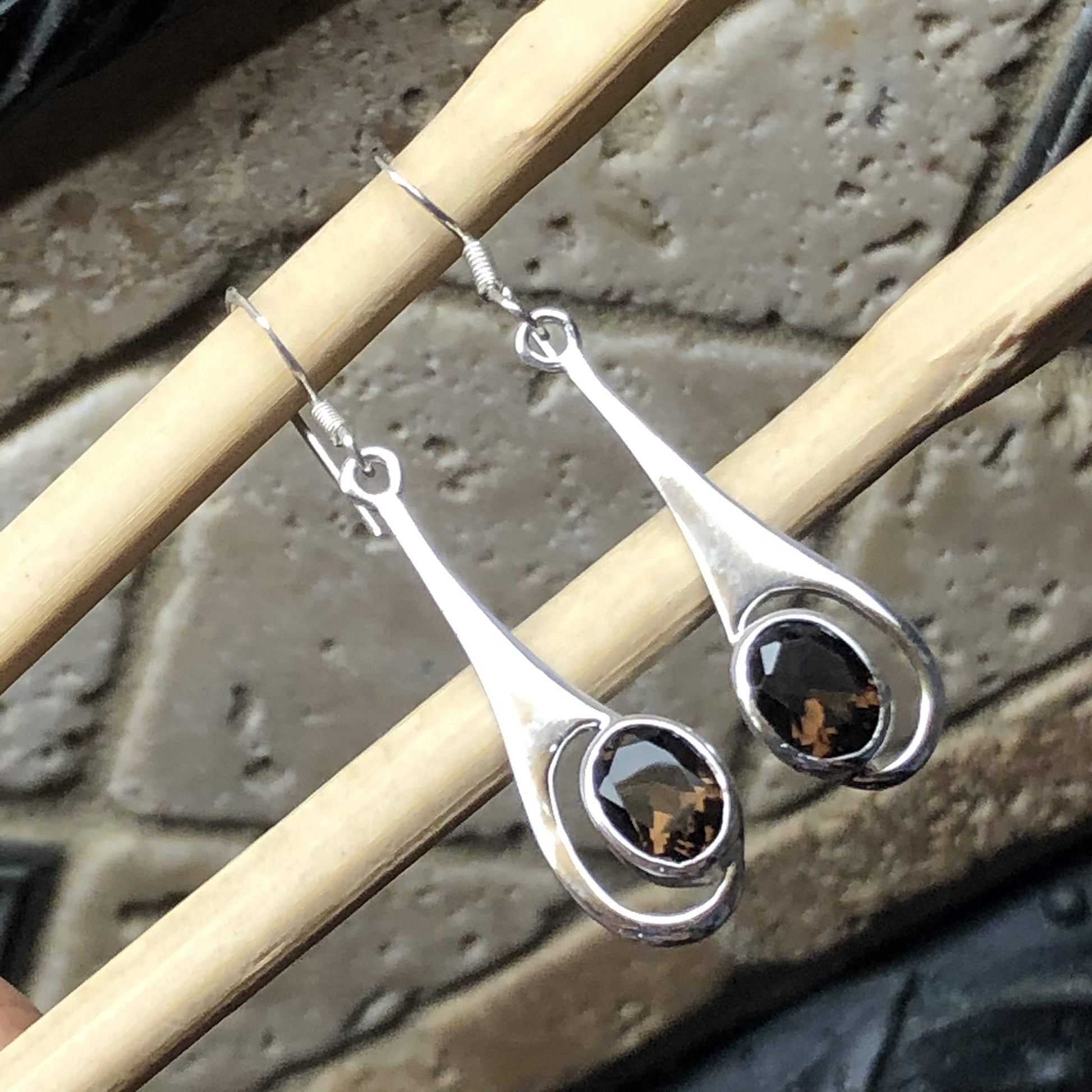 Genuine 2ct Smoky Topaz 925 Solid Sterling Silver Earrings 40mm