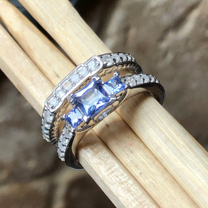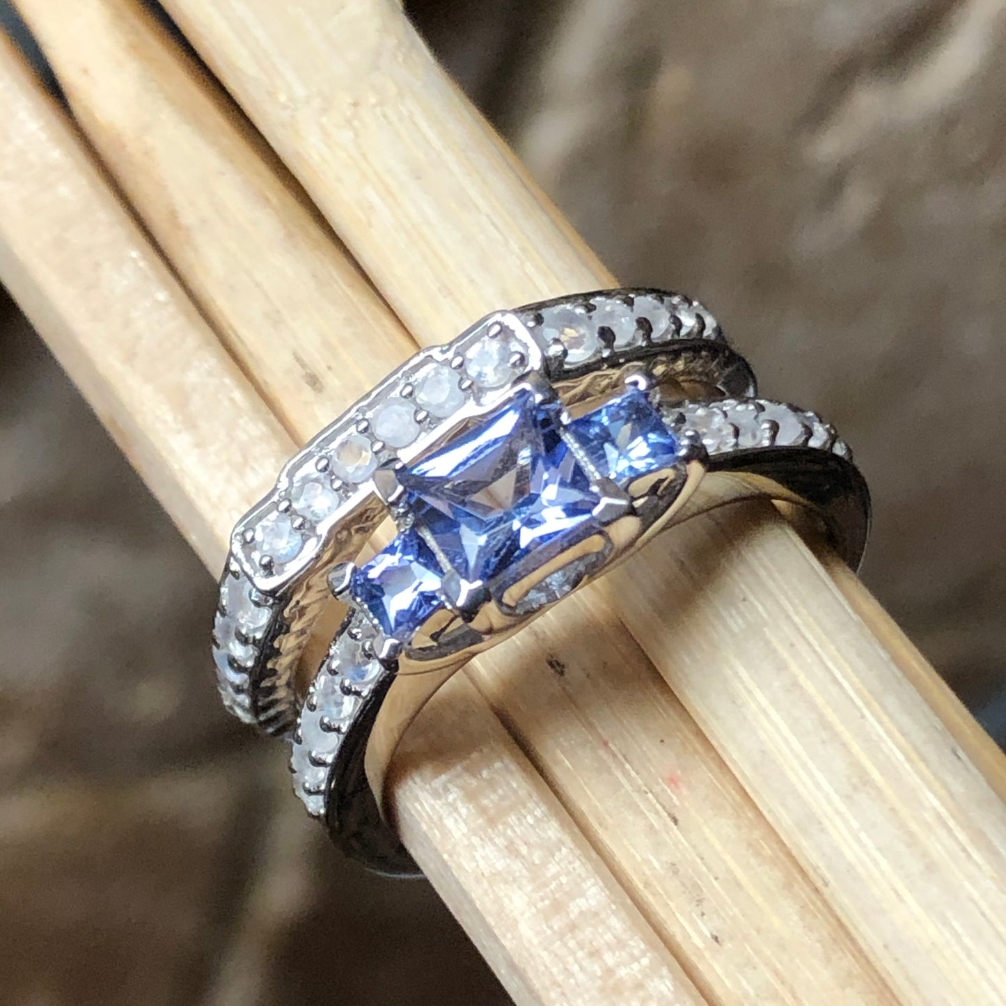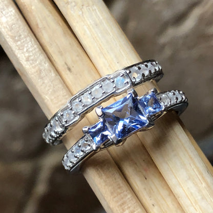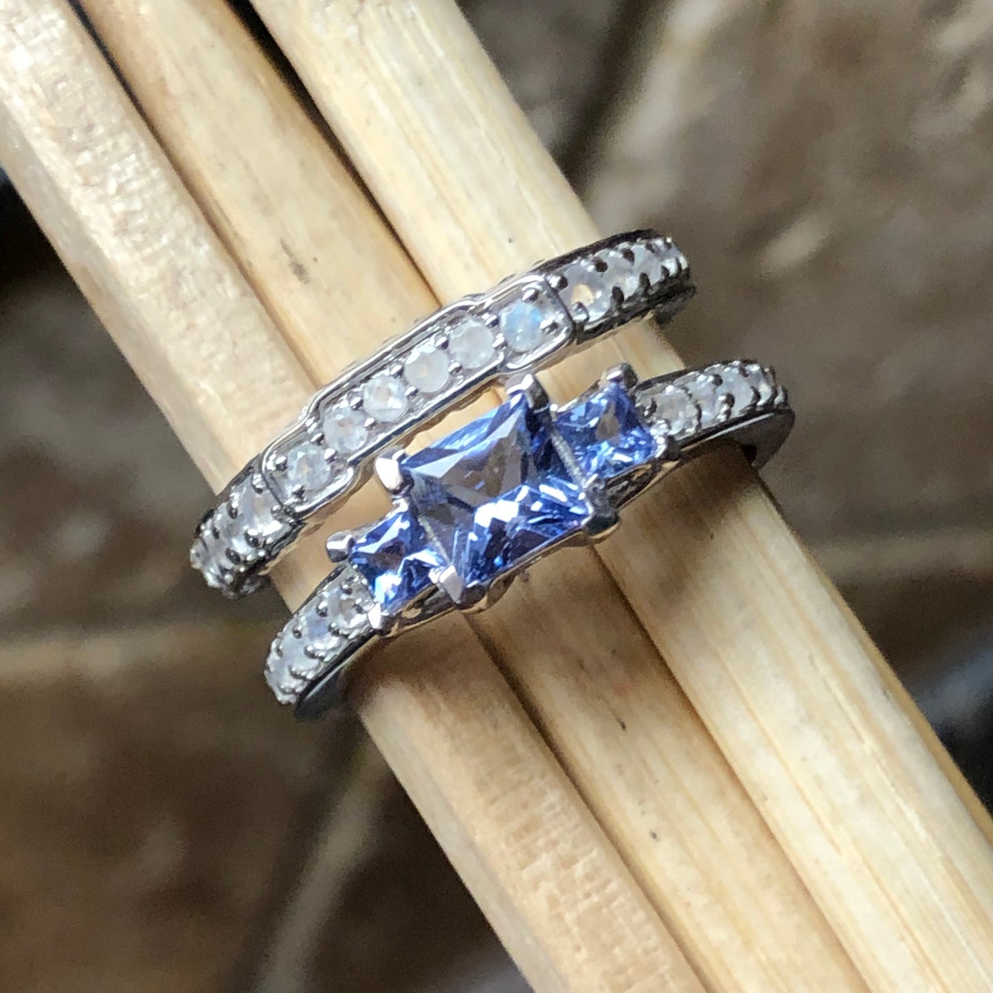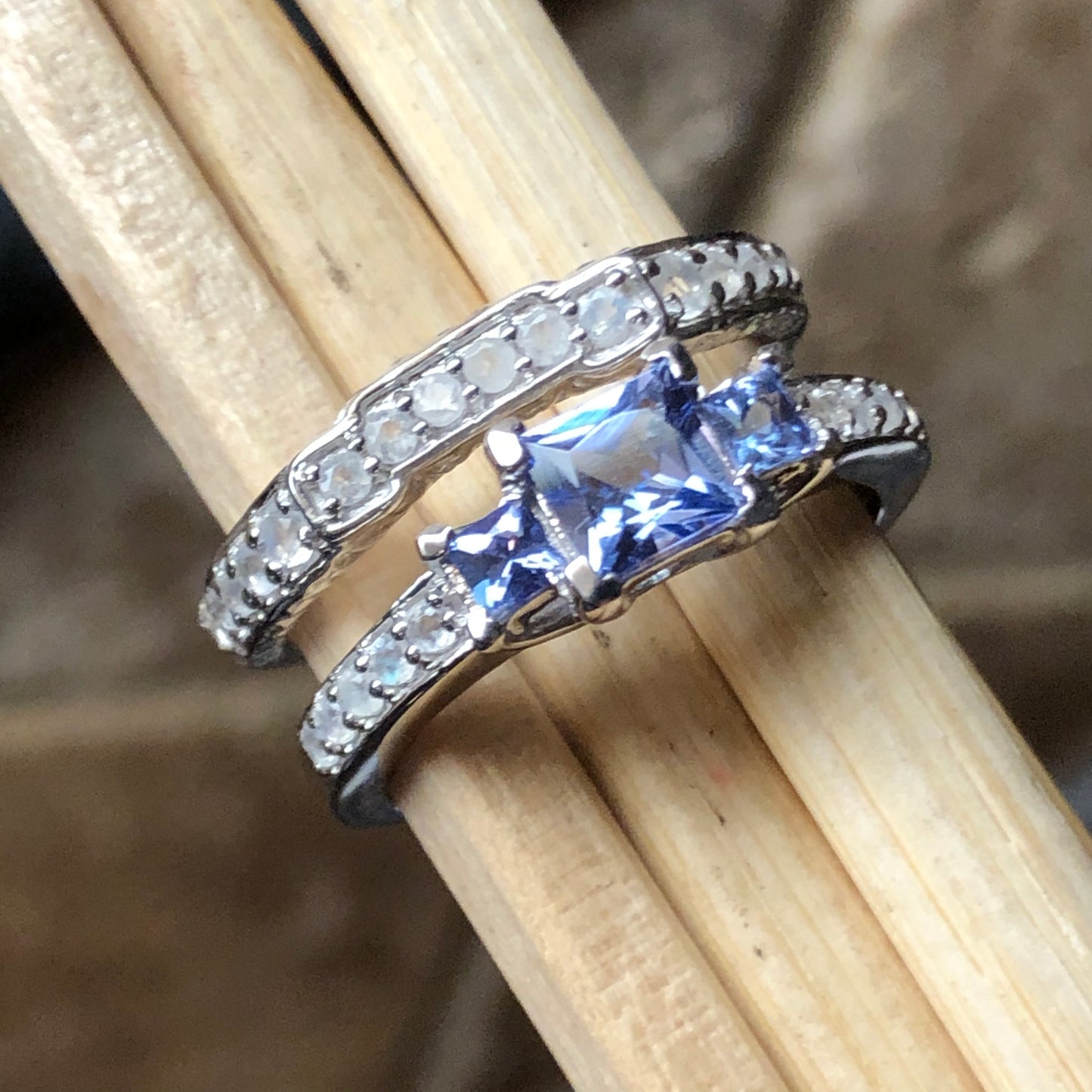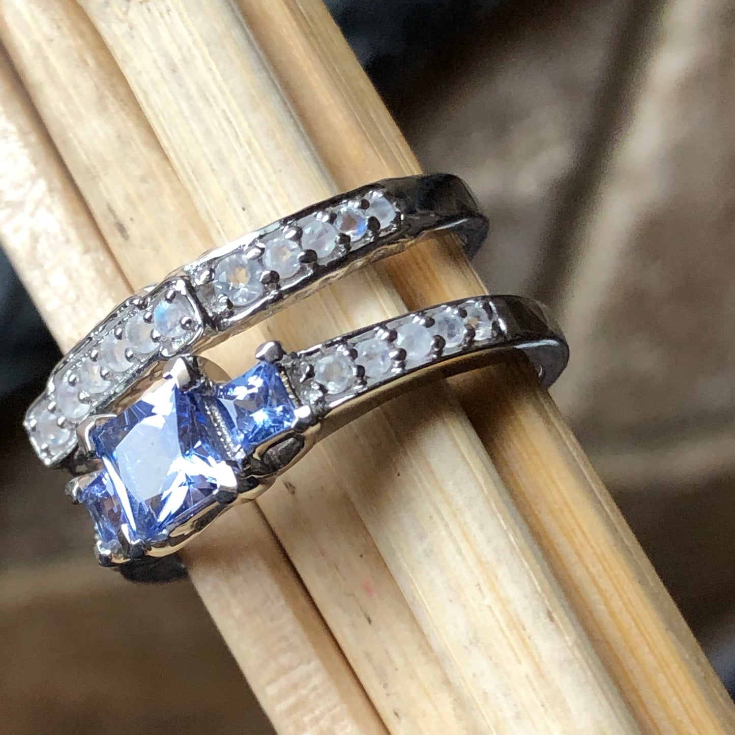 Genuine Blue Tanzanite, Moonstone 925 Solid Sterling Silver Engagement Ring Size 6, 7, 8, 9
