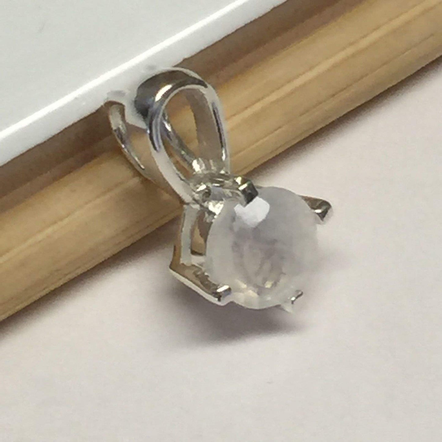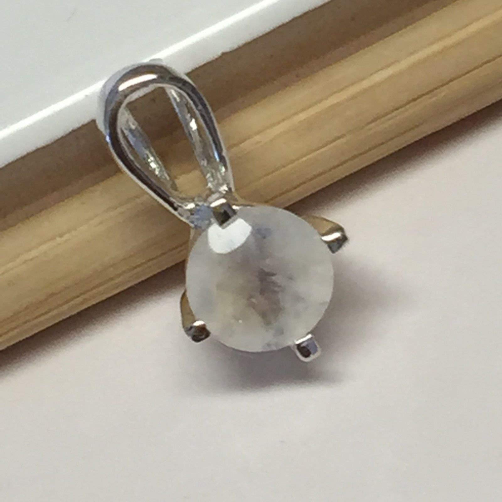 Genuine Rainbow Moonstone 925 Solid Sterling Silver Pendant 14mm