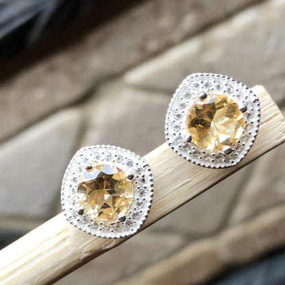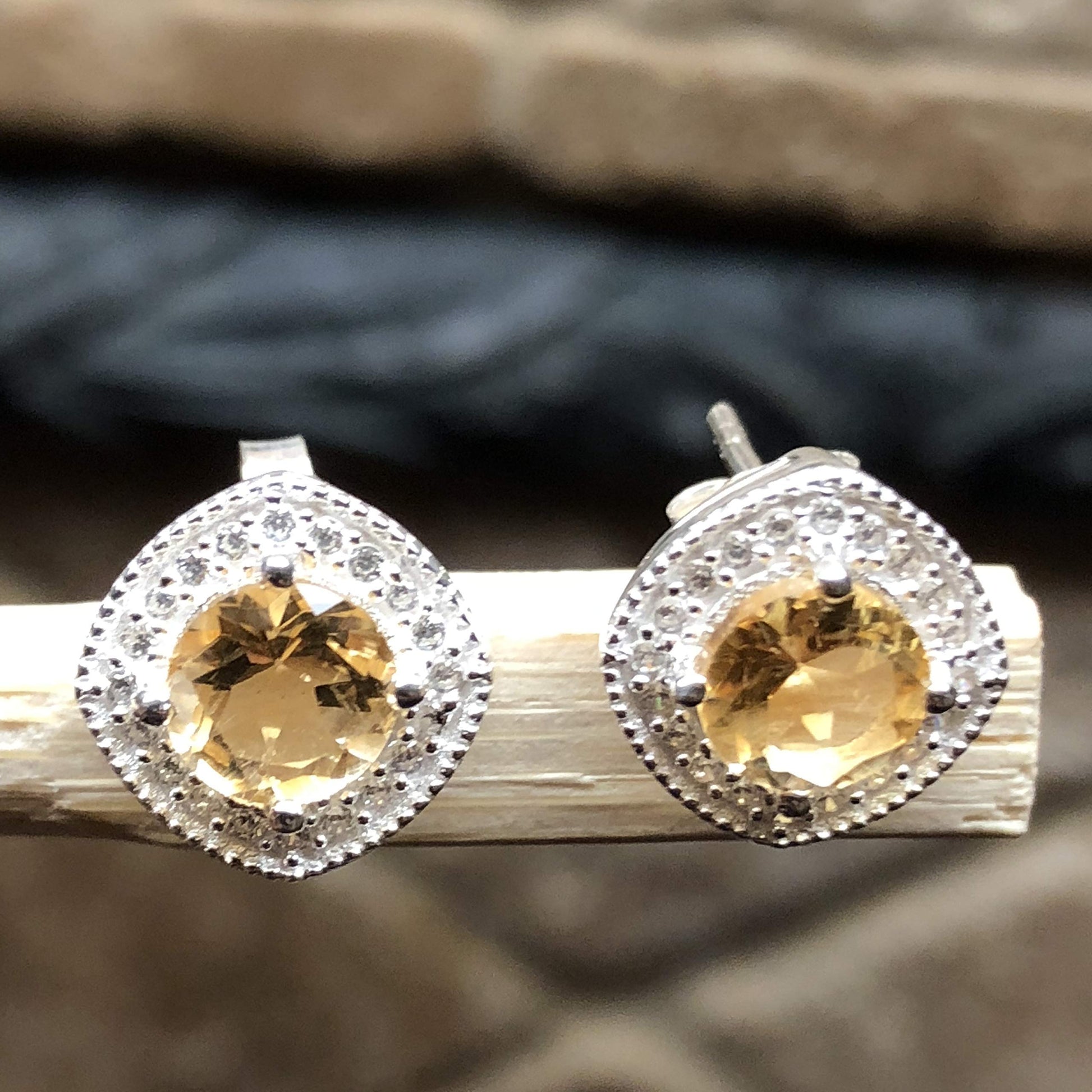Natural 1.5ct Golden Citrine 925 Solid Sterling Silver Stud Earrings 10mm