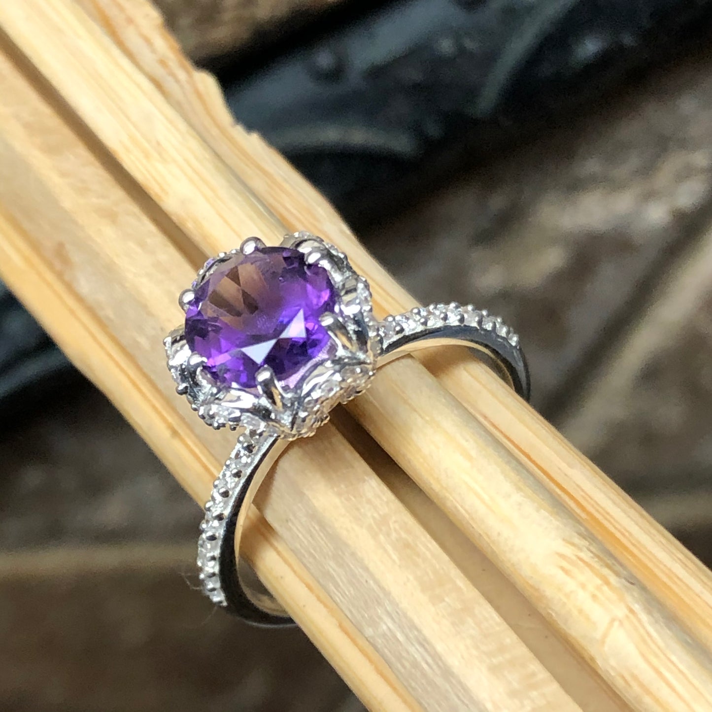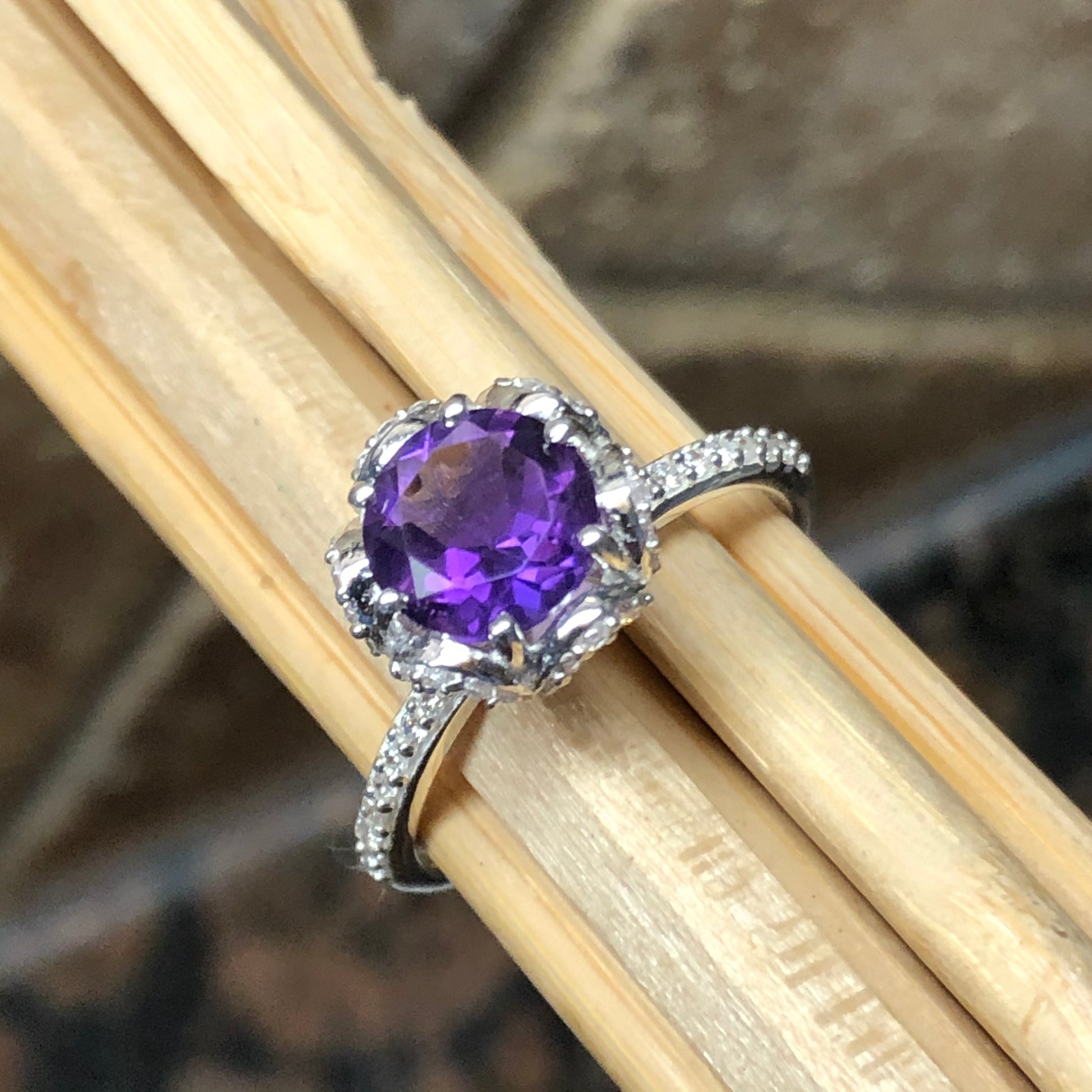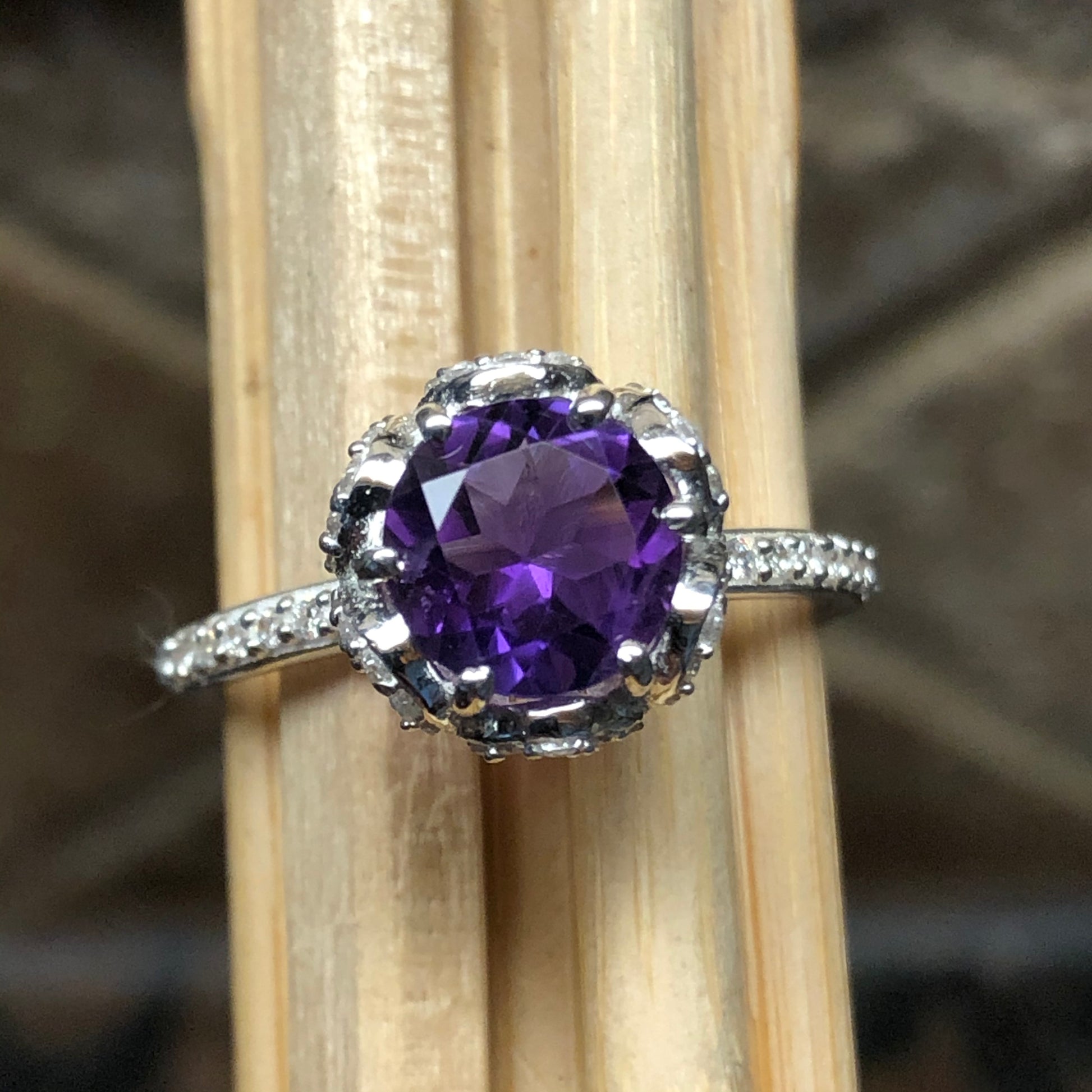 Natural 1ct Purple Amethyst 925 Solid Sterling Silver Ring Size 5, 7, 8, 9