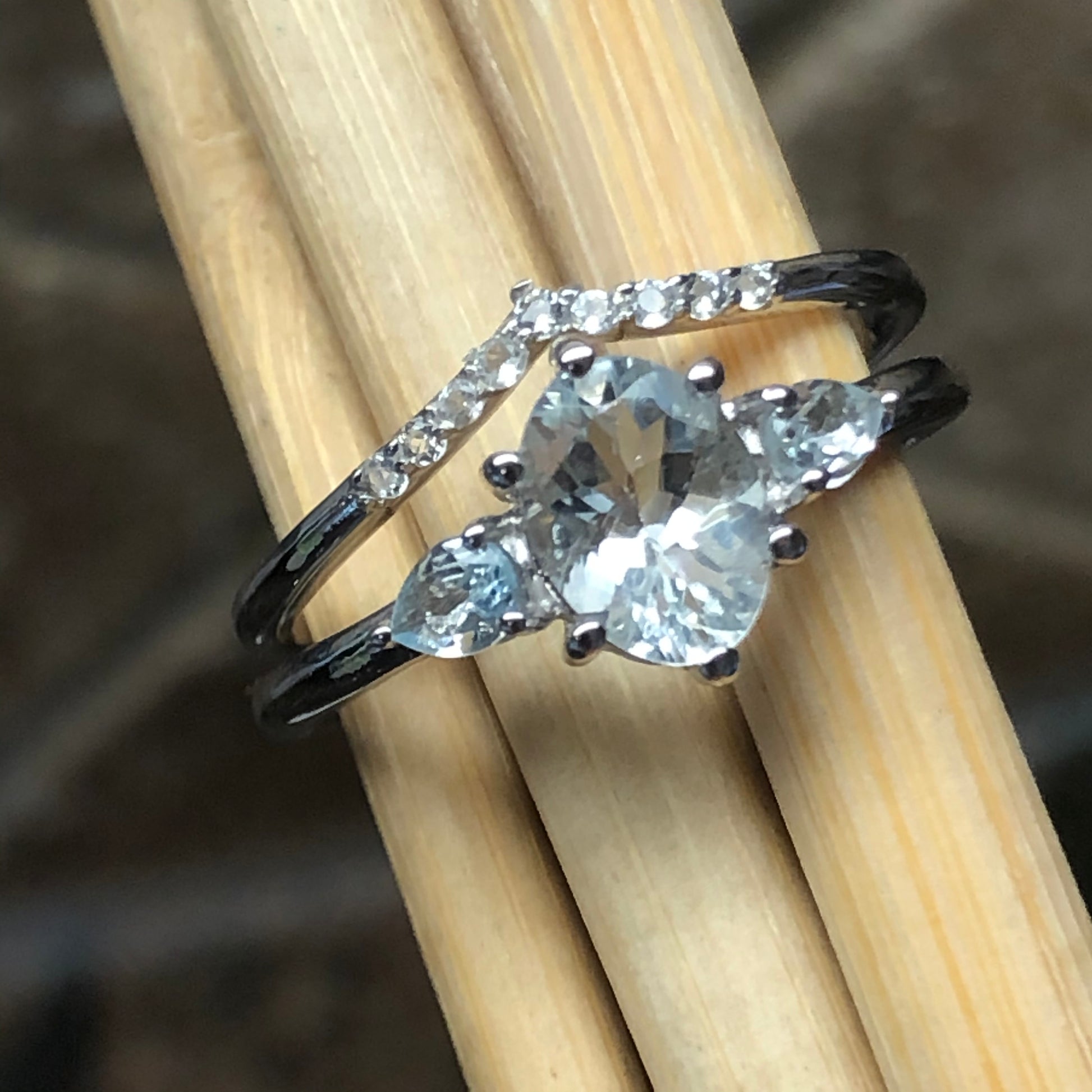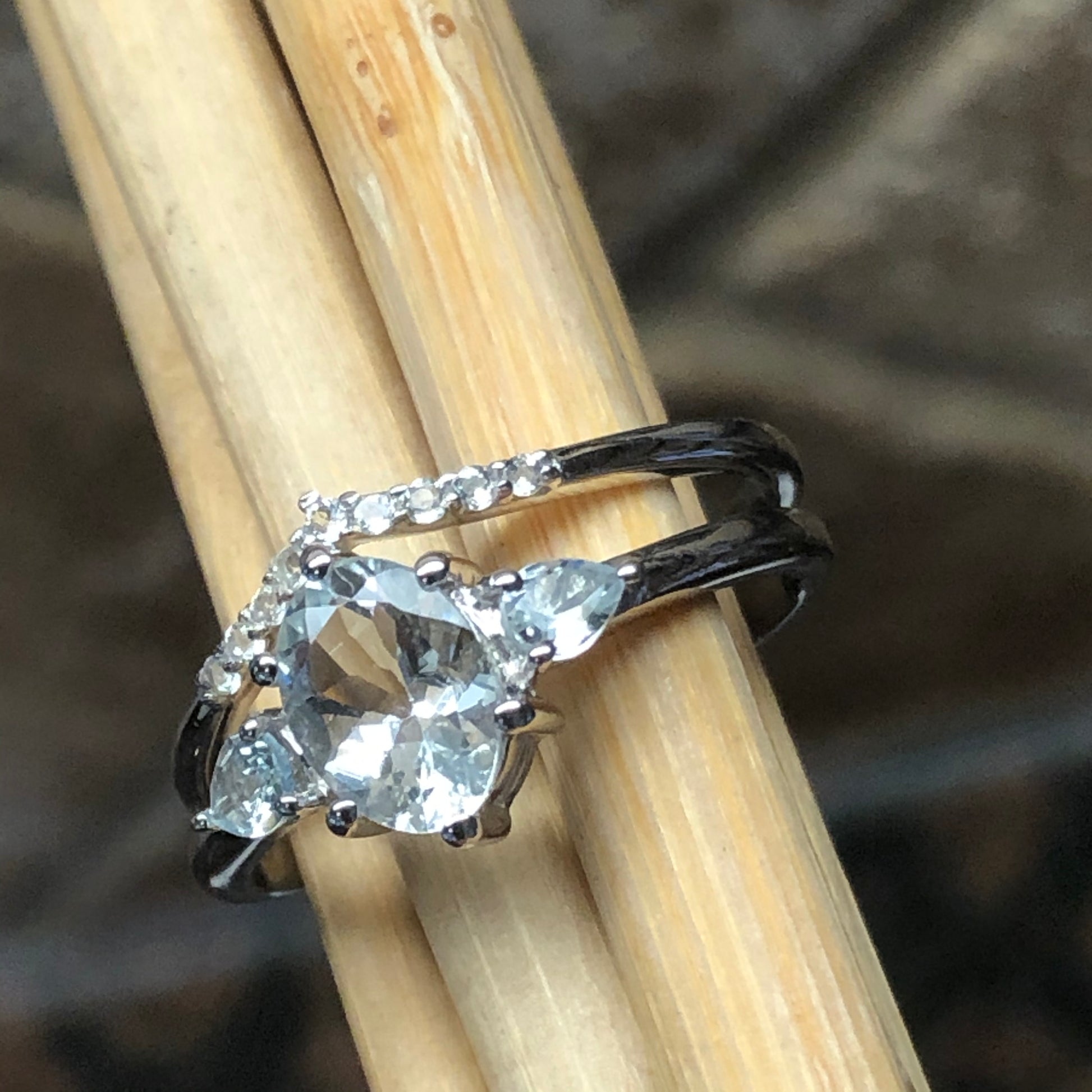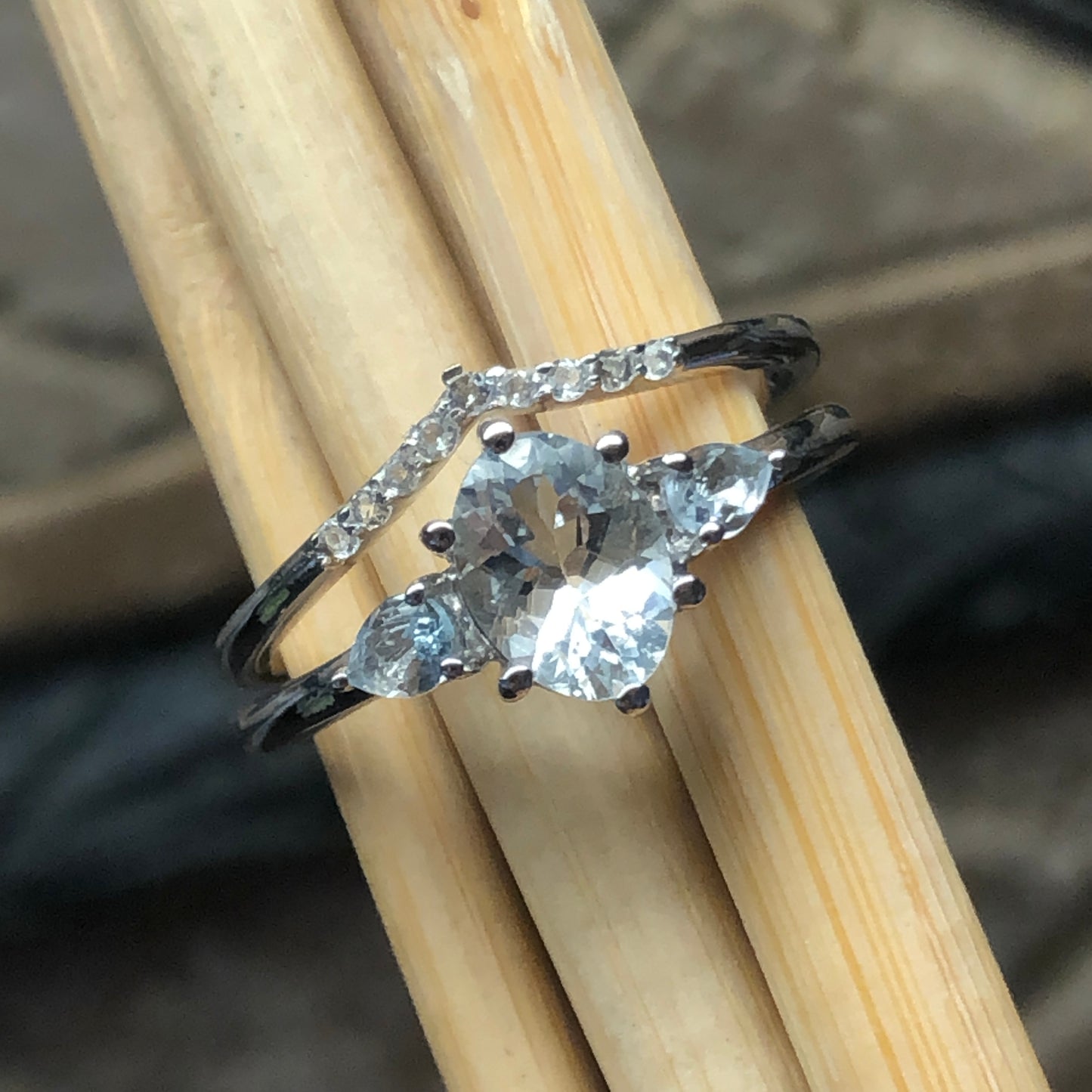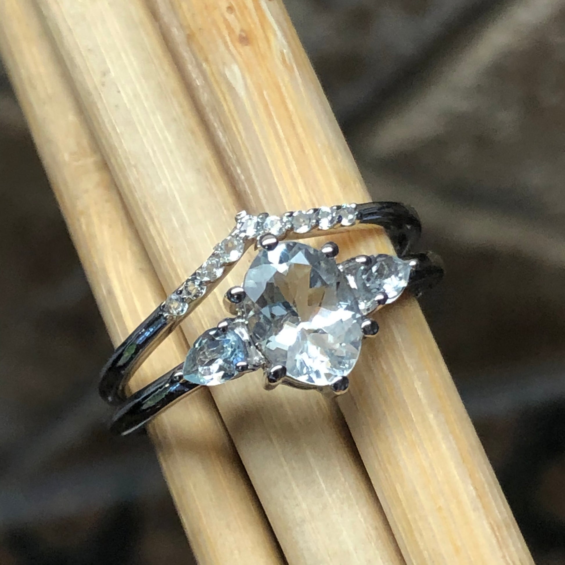 Natural 2ct Blue Aquamarine 925 Solid Sterling Silver Engagement Ring Size 6, 7, 8, 9