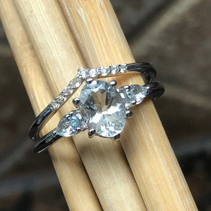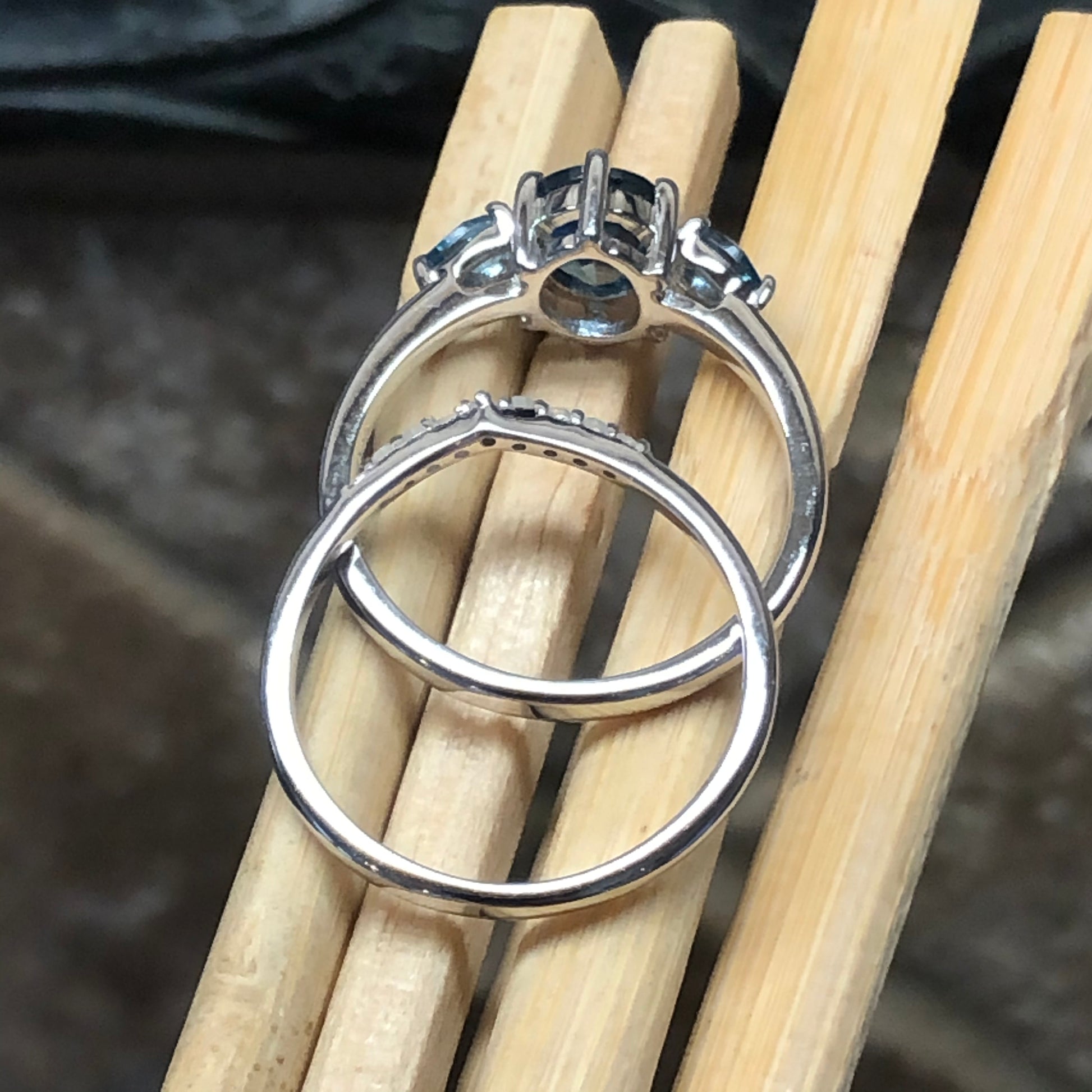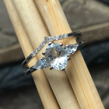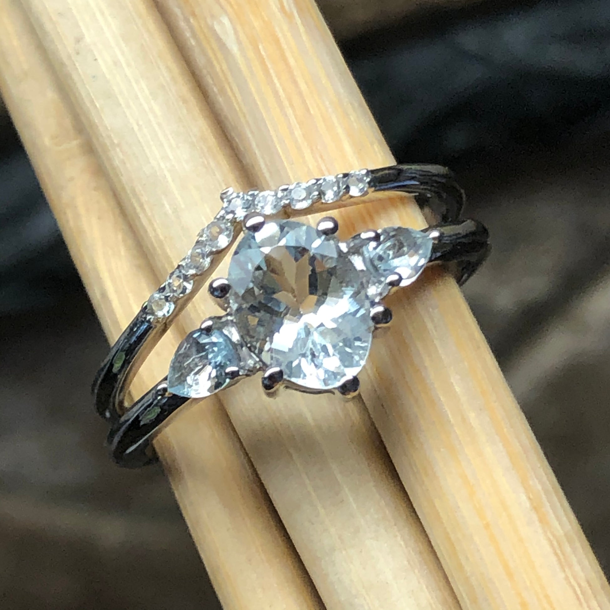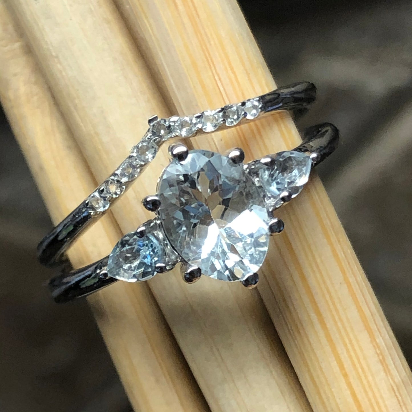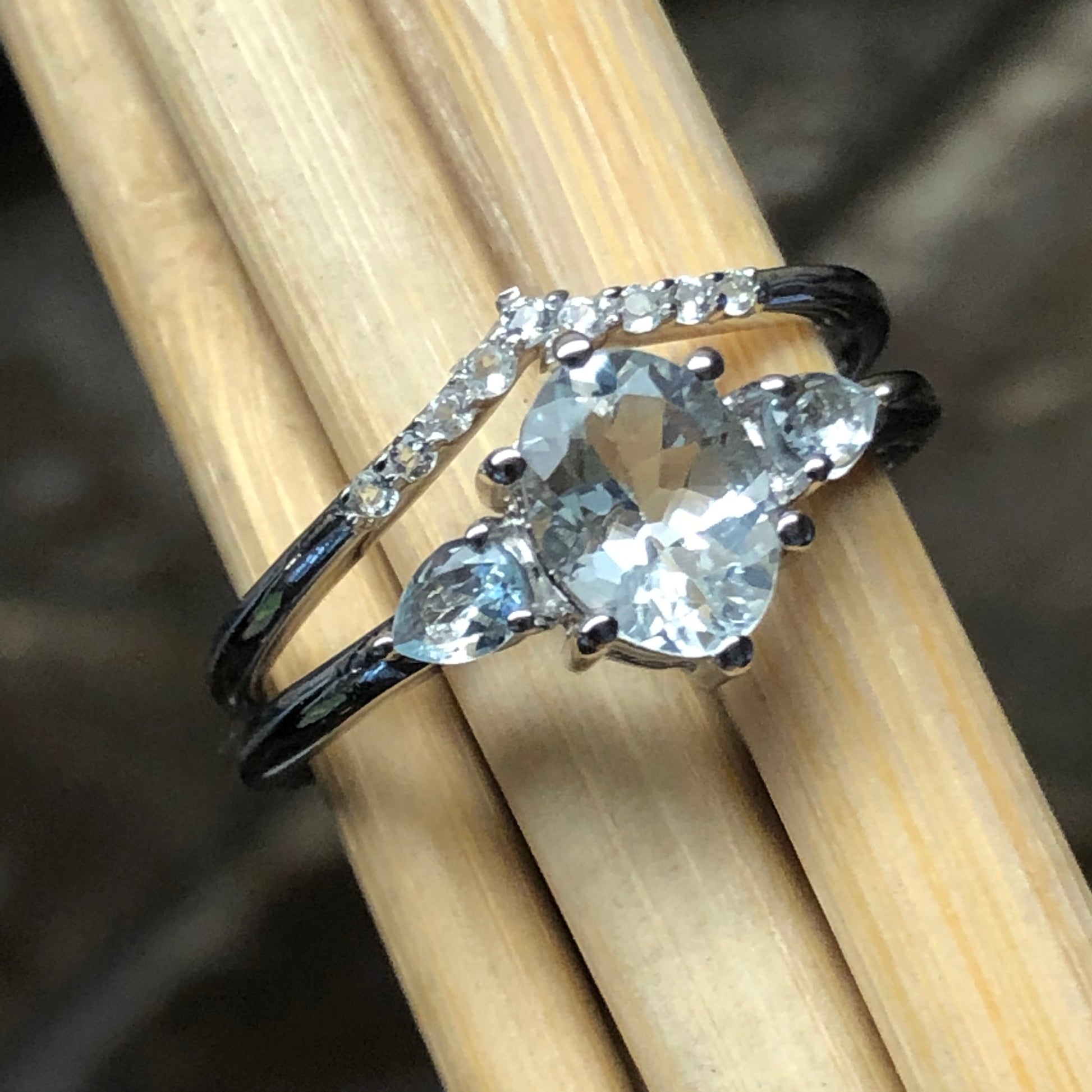 Natural 2ct Blue Aquamarine 925 Solid Sterling Silver Engagement Ring Size 6, 7, 8, 9
