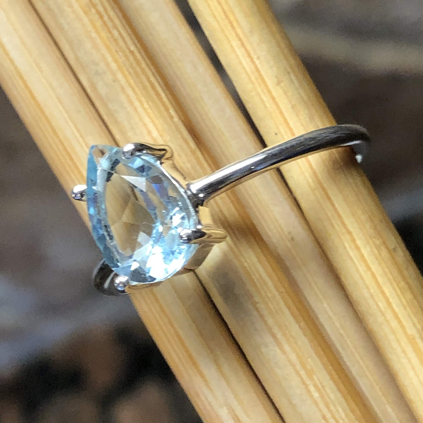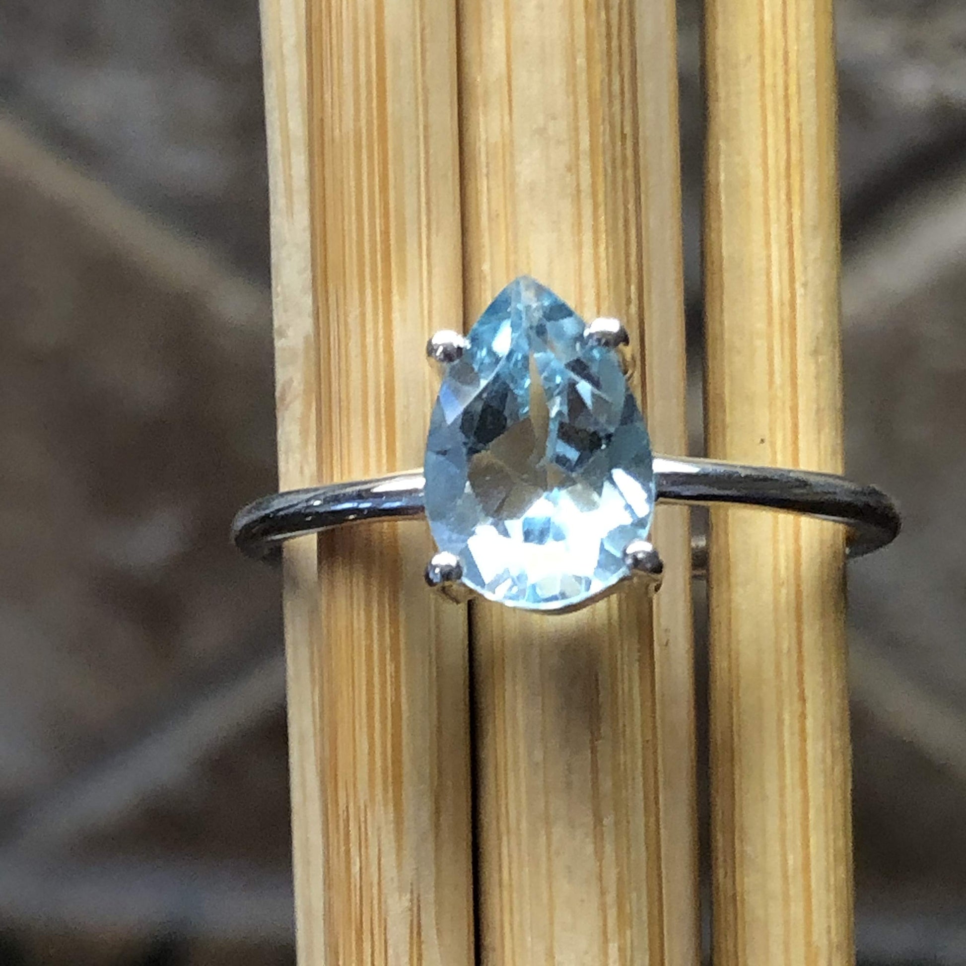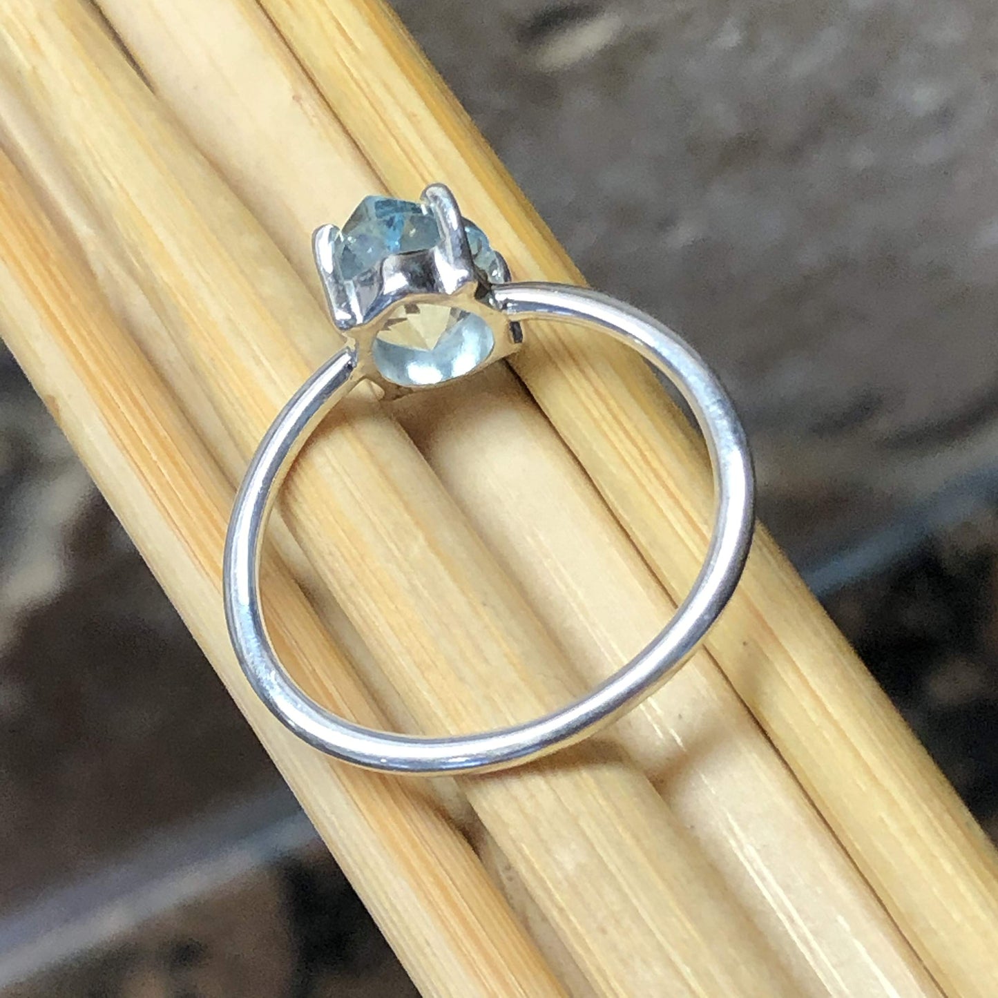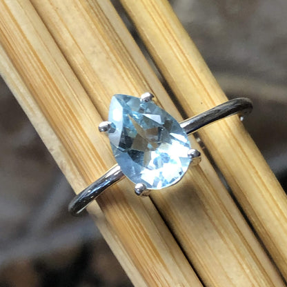 Natural 2ct Blue Topaz 925 Solid Sterling Silver Ring Size 5.25, 8