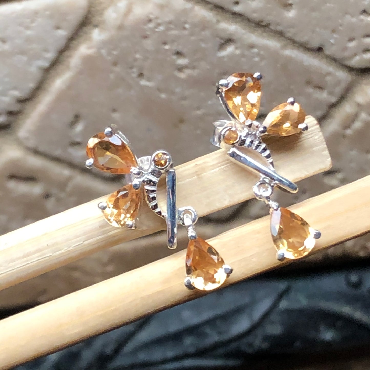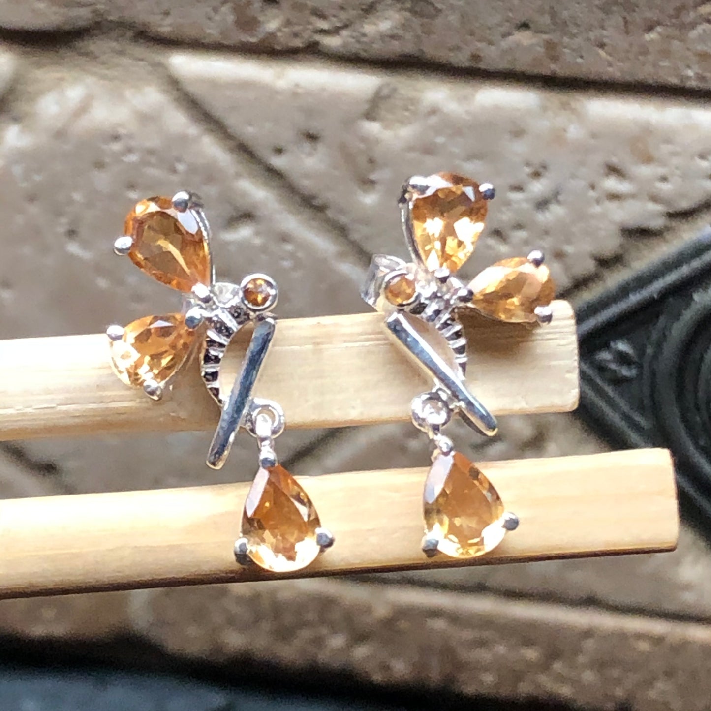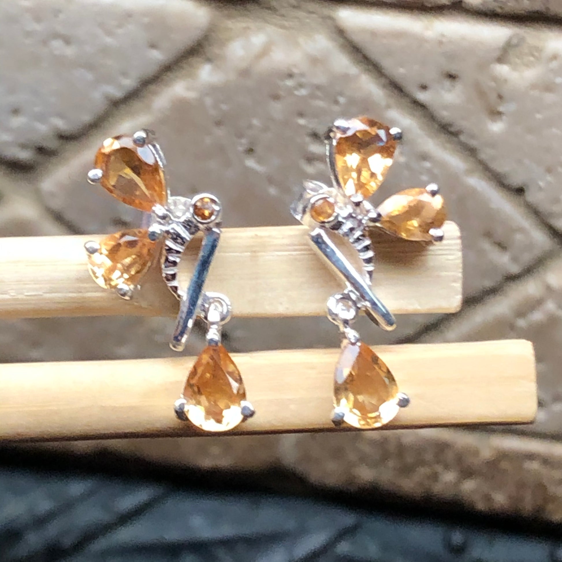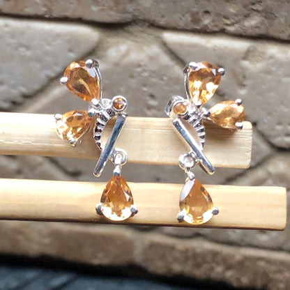 Natural 3.5ct Golden Citrine 925 Solid Sterling Silver Earrings 25mm
