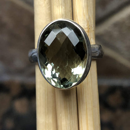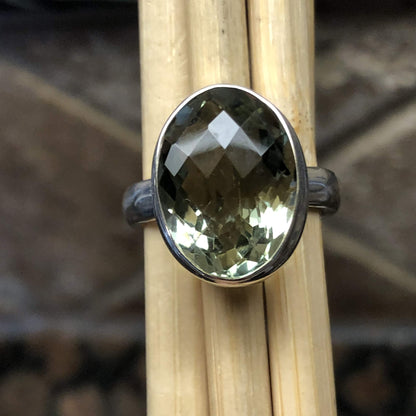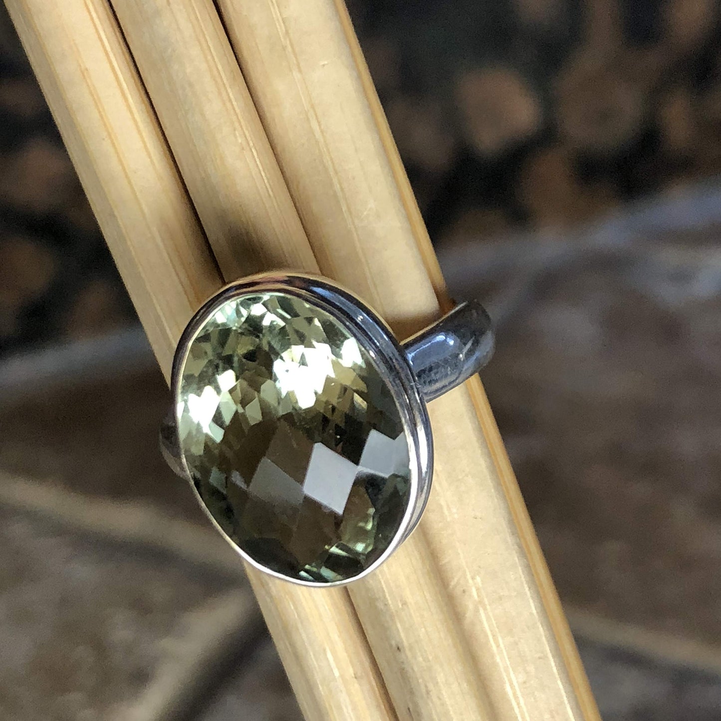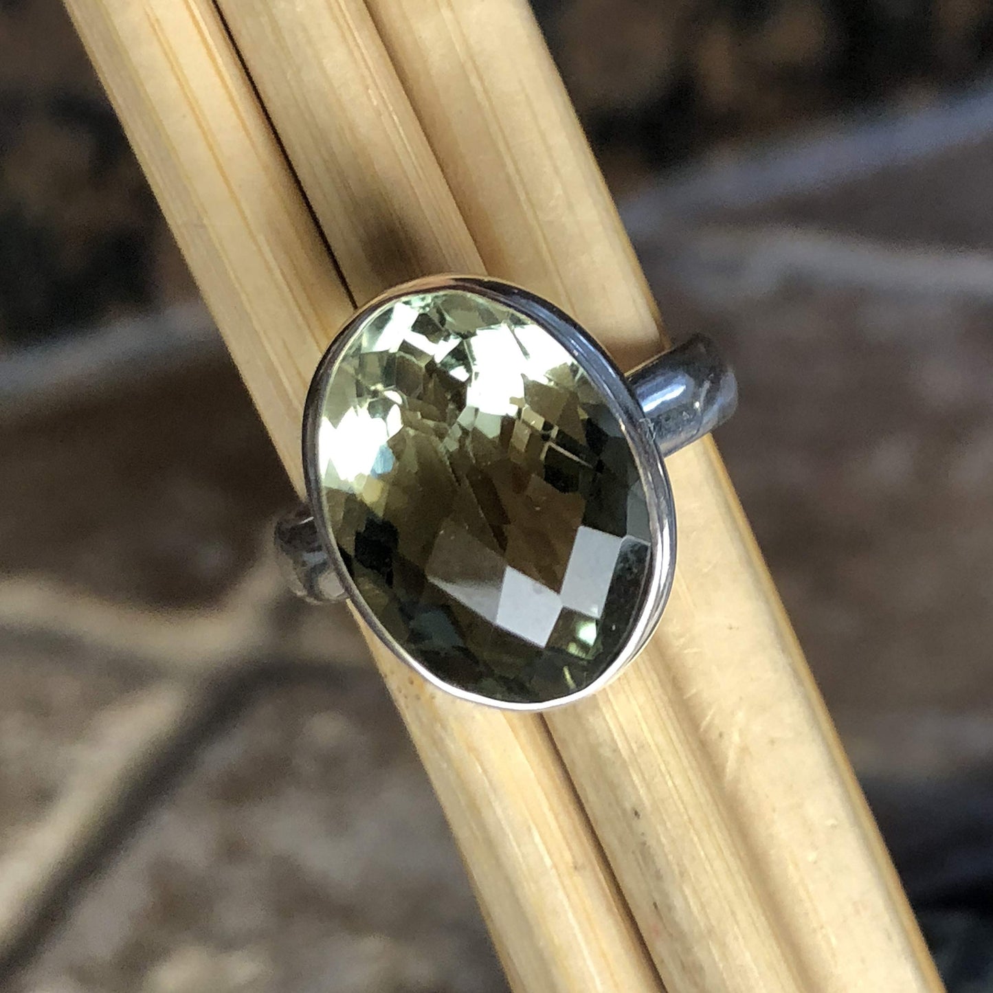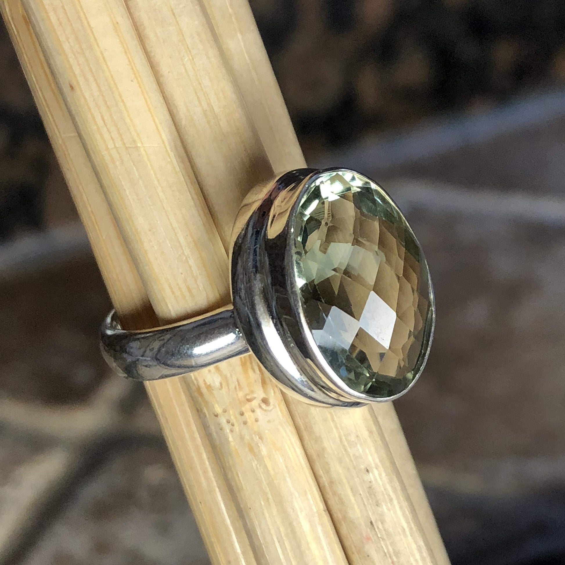 Natural 4ct Green Amethyst 925 Solid Sterling Silver Ring Size 6, 8
