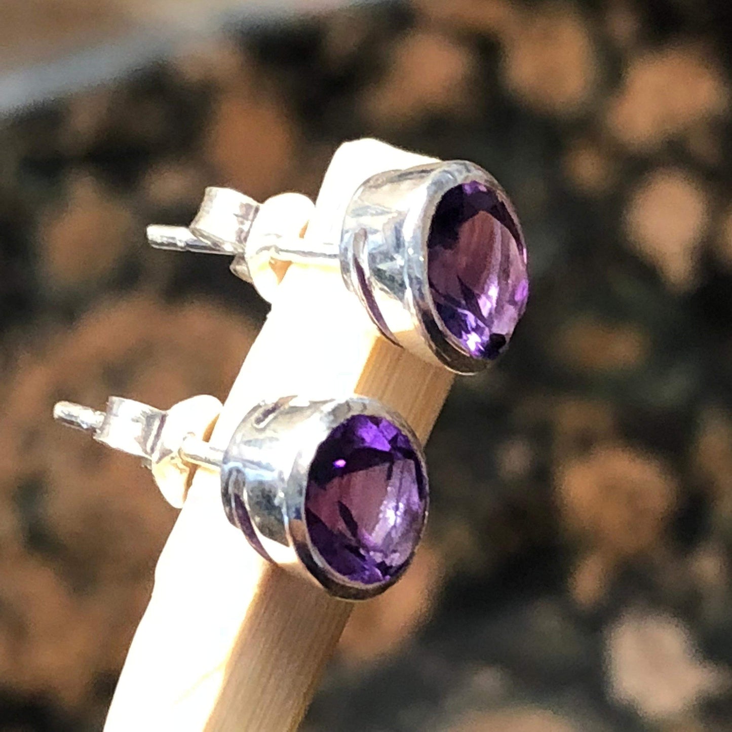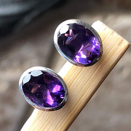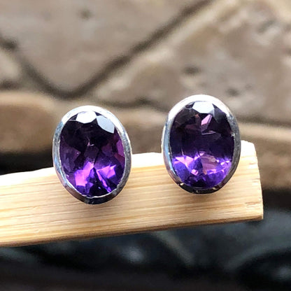 Natural 4ct Purple Amethyst 925 Solid Sterling Silver Earrings 10mm