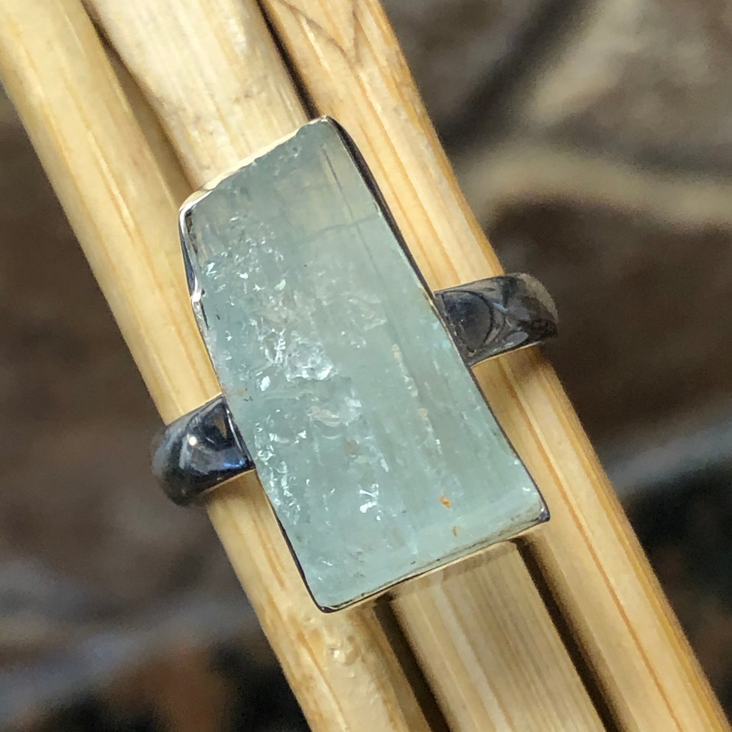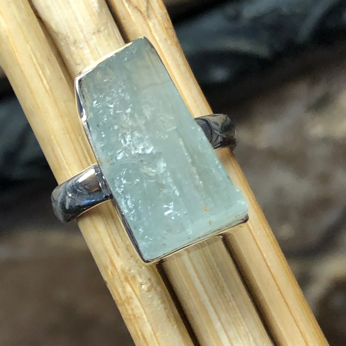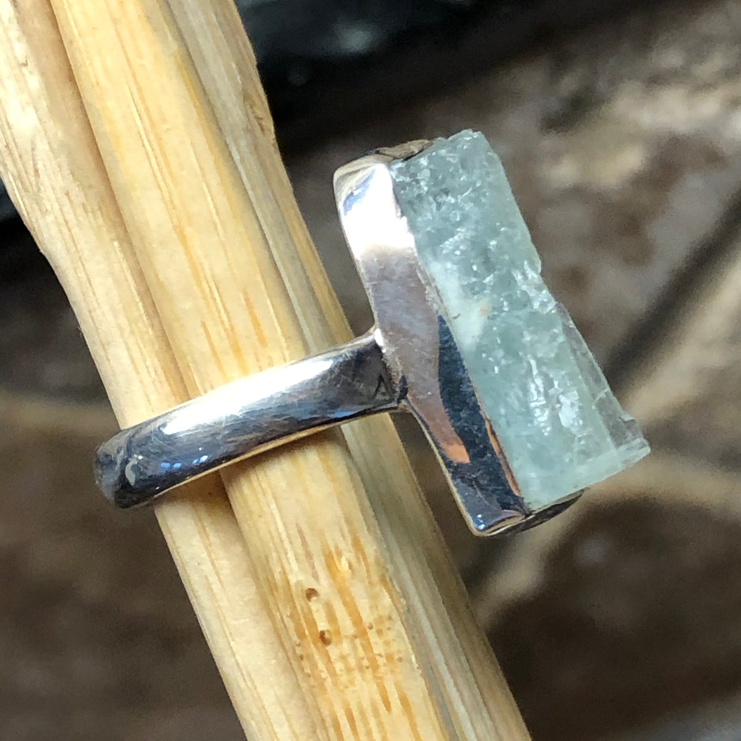 Natural Aquamarine 925 Solid Sterling Silver Unisex Ring Size 7