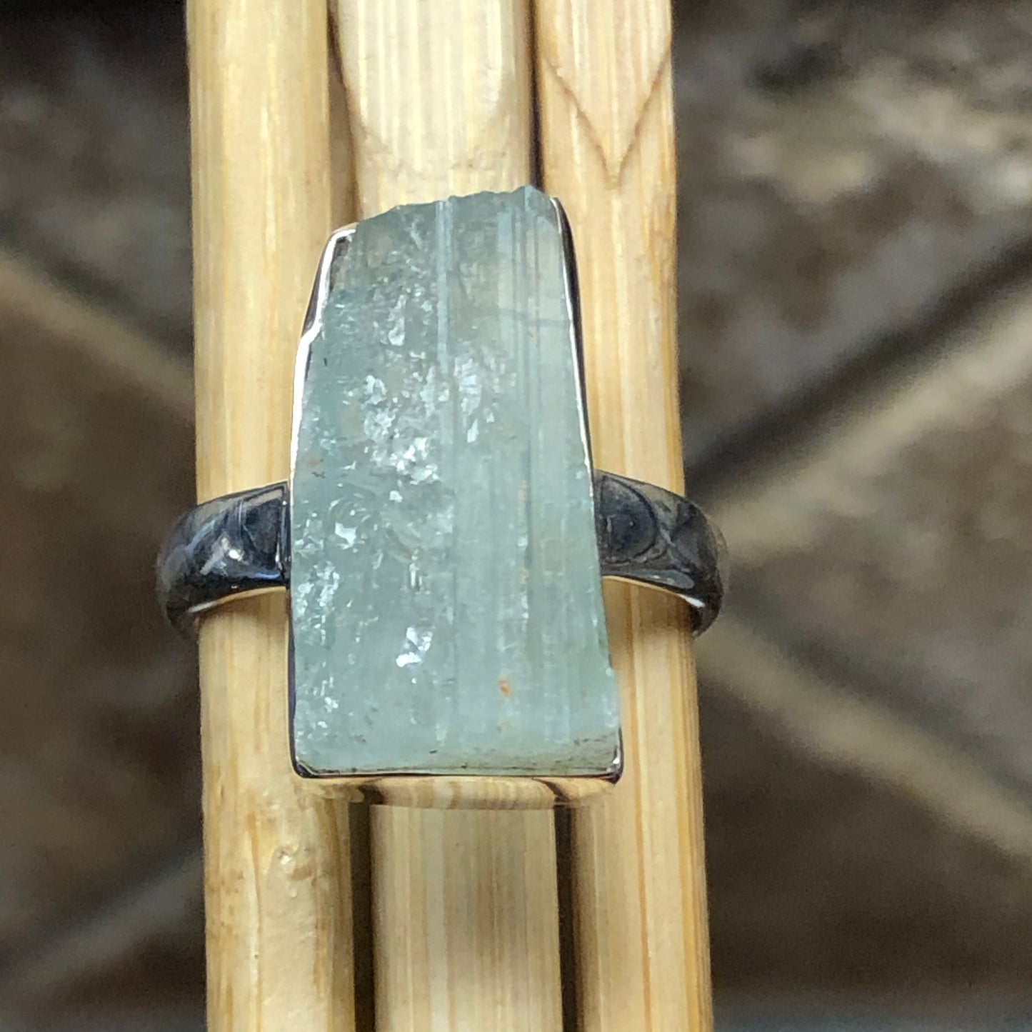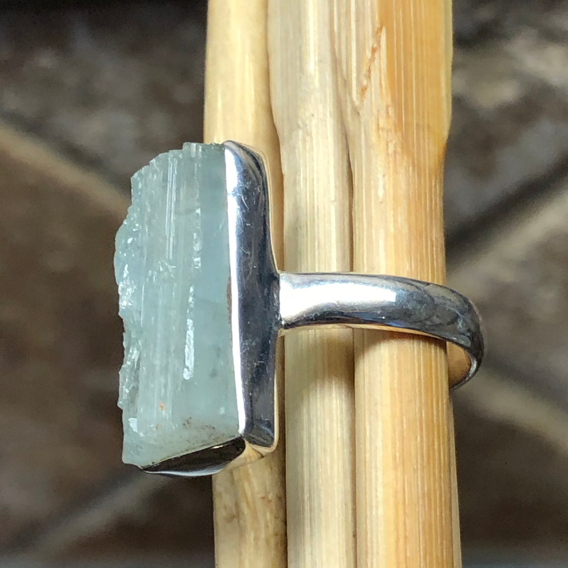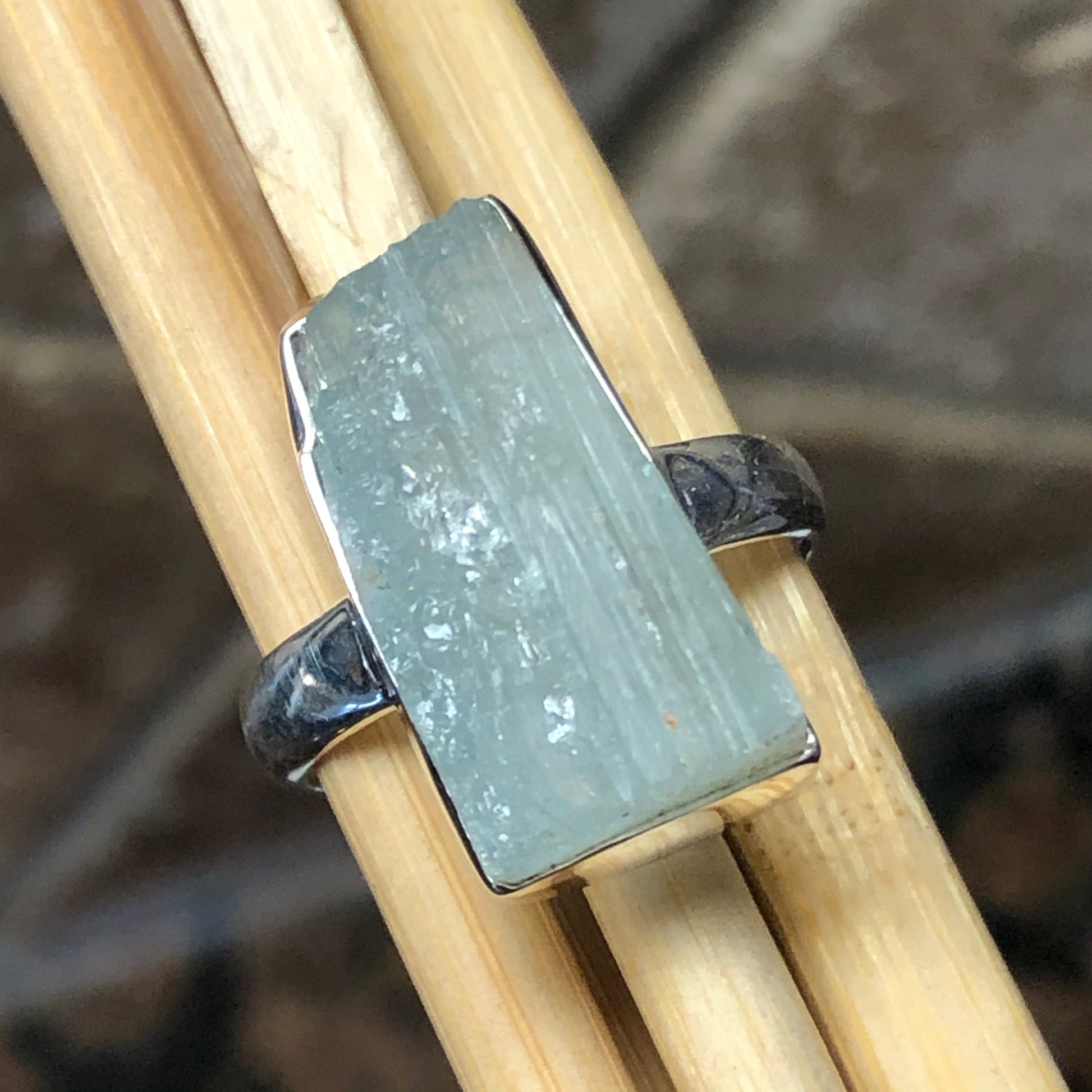 Natural Aquamarine 925 Solid Sterling Silver Unisex Ring Size 7