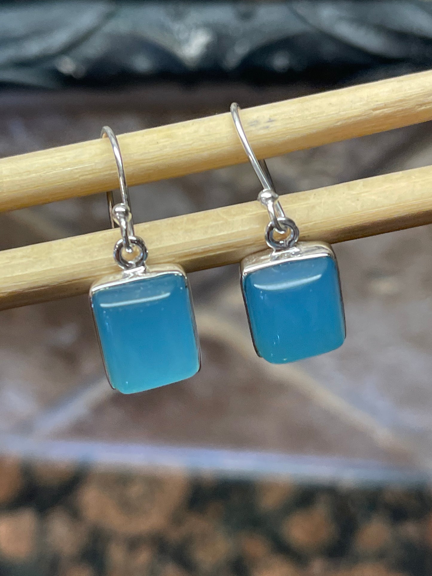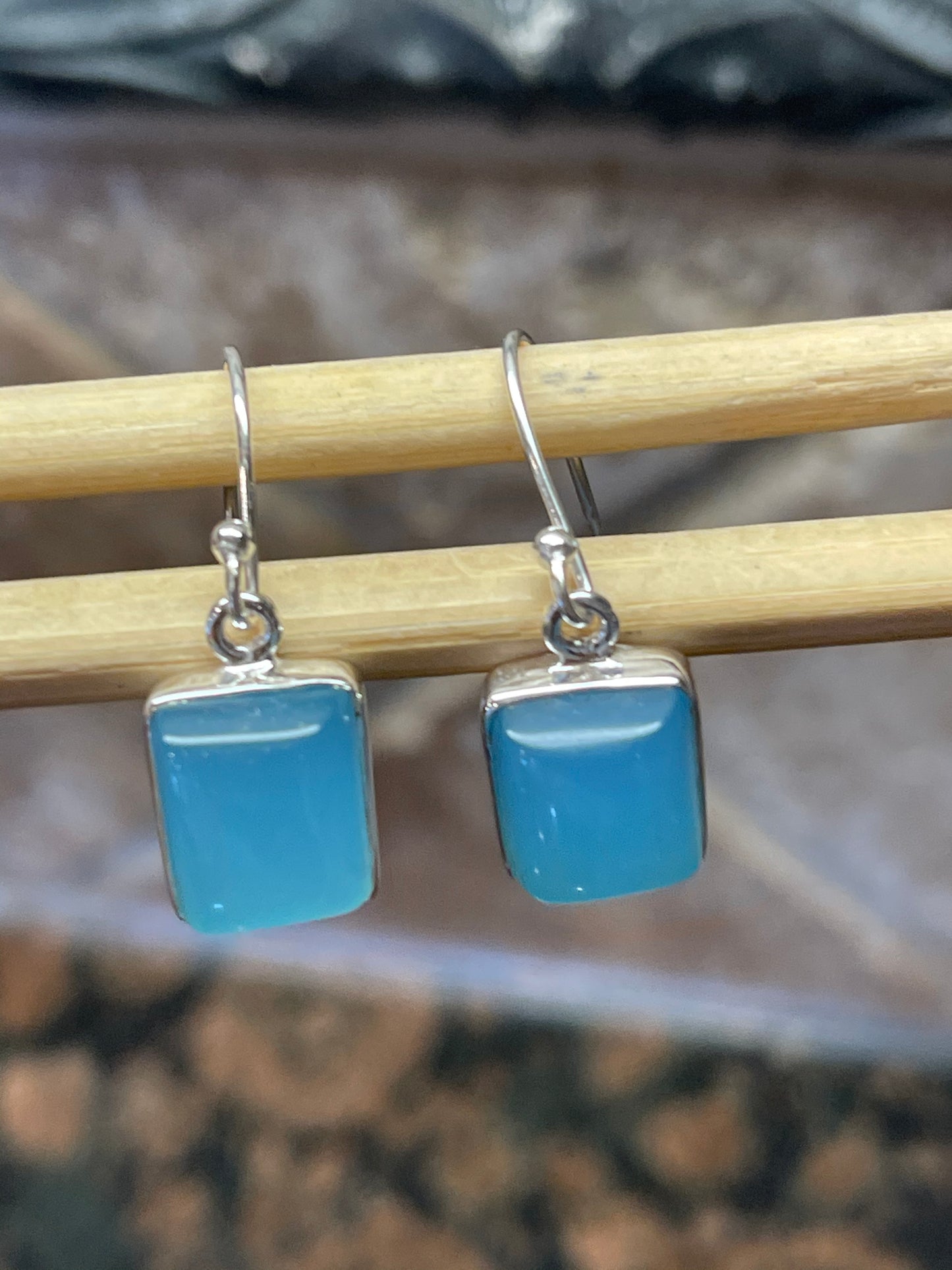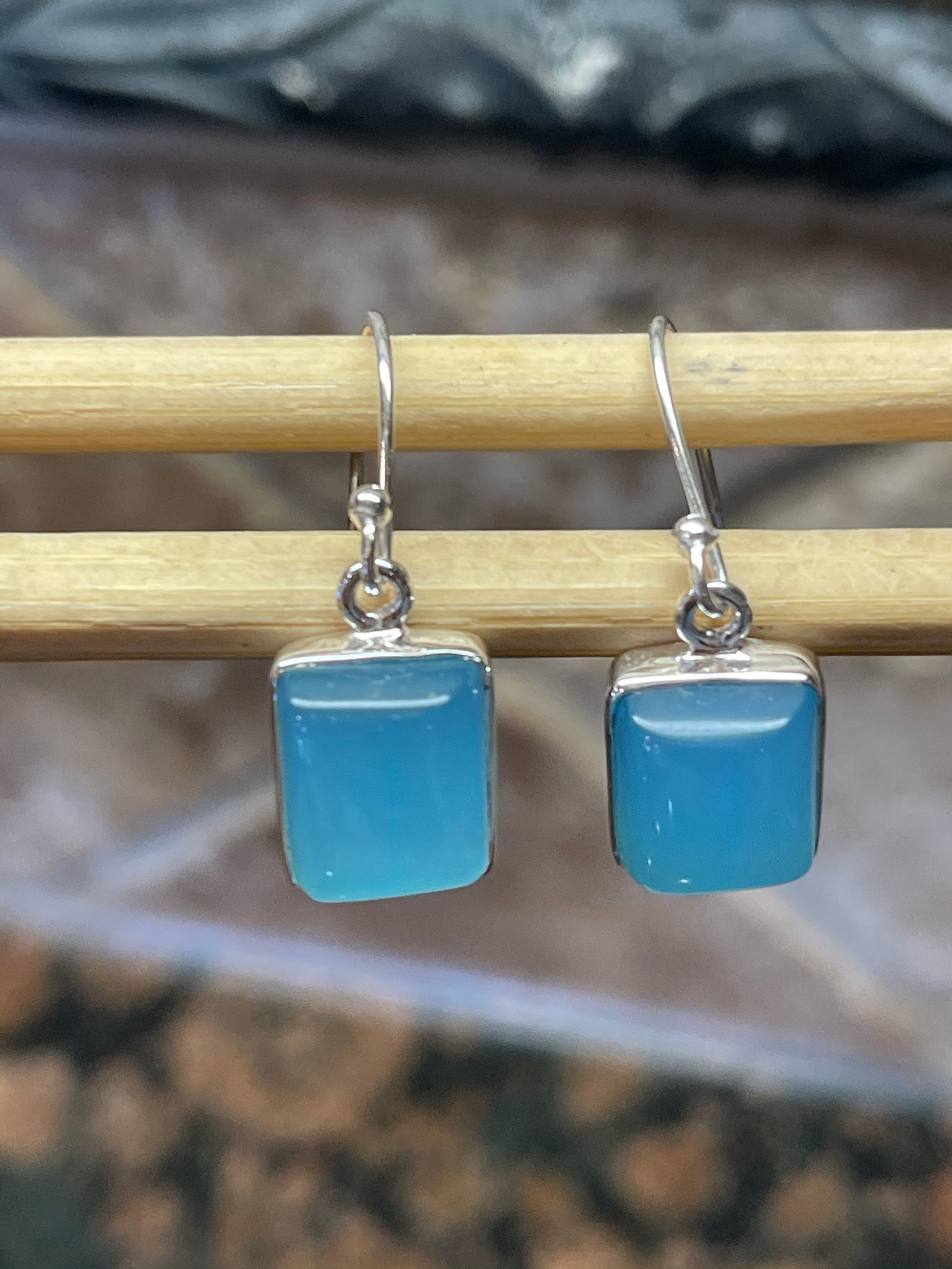 Stone: Blue Chalcedony , Dangle /Drop Earrings, Nice gift.