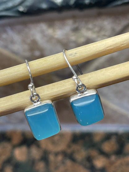Natural Blue Chalcedony 925 Solid Sterling Silver Earrings 25mm
