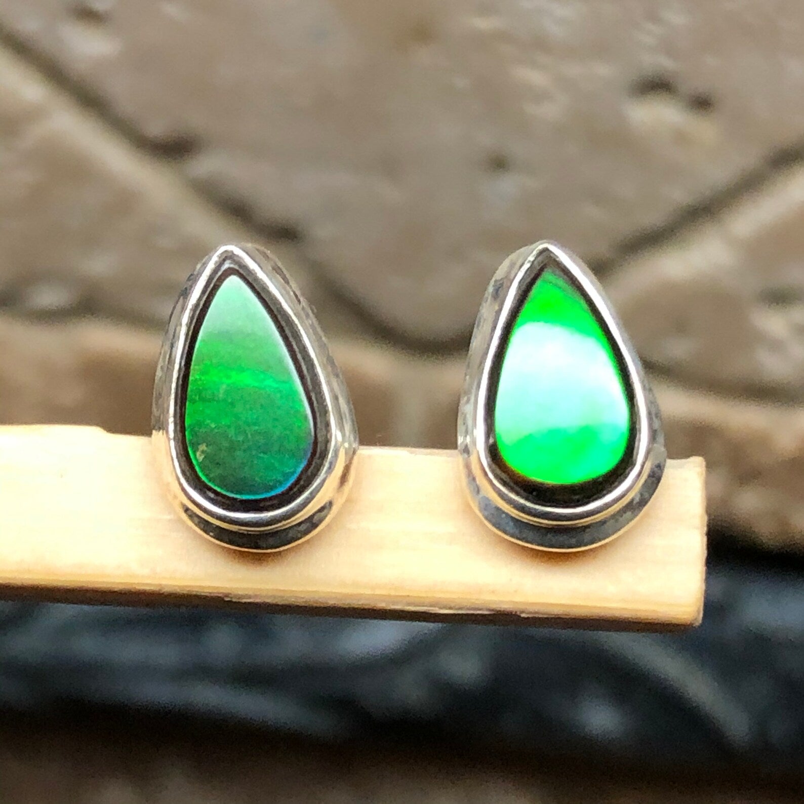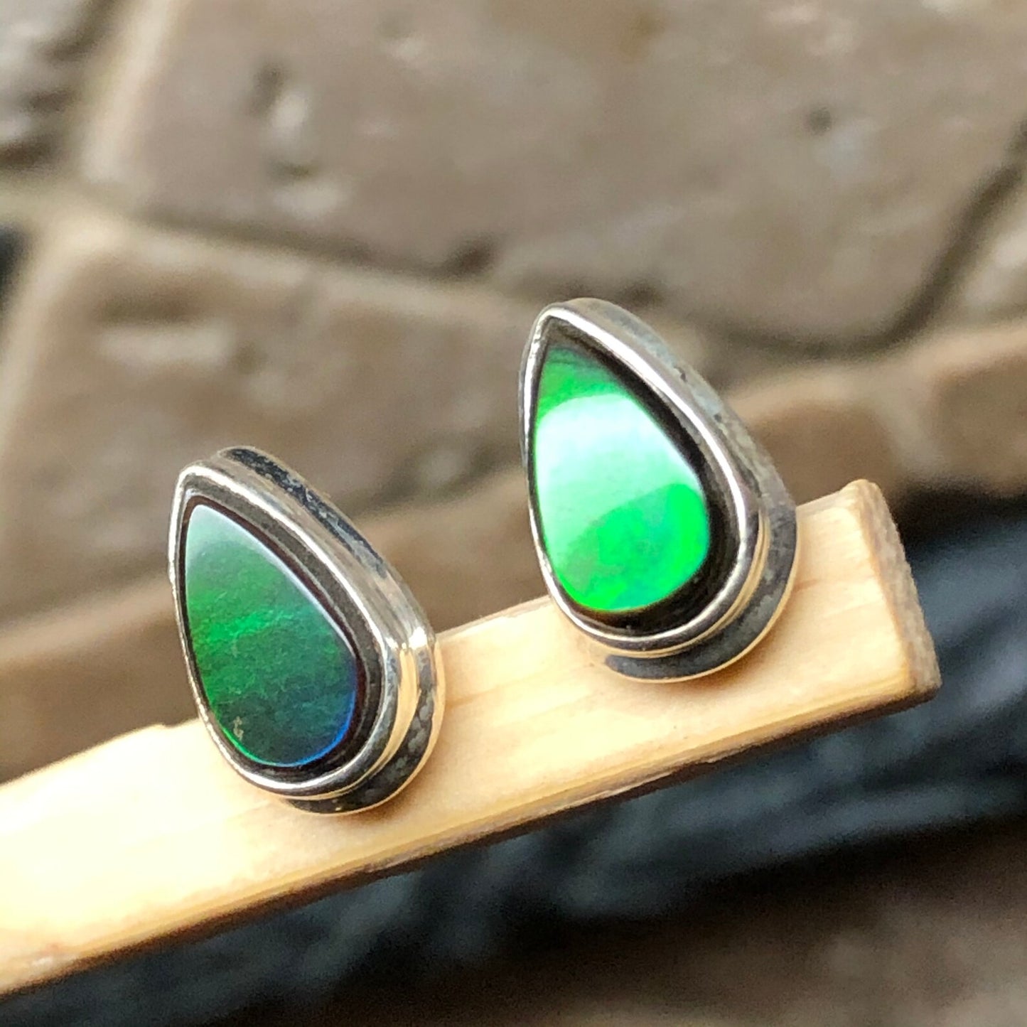 The Earrings are genuine earth mined . This item is brand new. Ammolite heals anything that needs structure and clarity. It is a helpful stone for craniosacral work. Fungi Shui masters call it The seven color prosperity stone. They believe that it stimulates the flow of qi, the life force, through the body and suggest keeping one in your home for wealth, health, vitality and happiness. it can also help promote beneficial business dealings and prosperity.