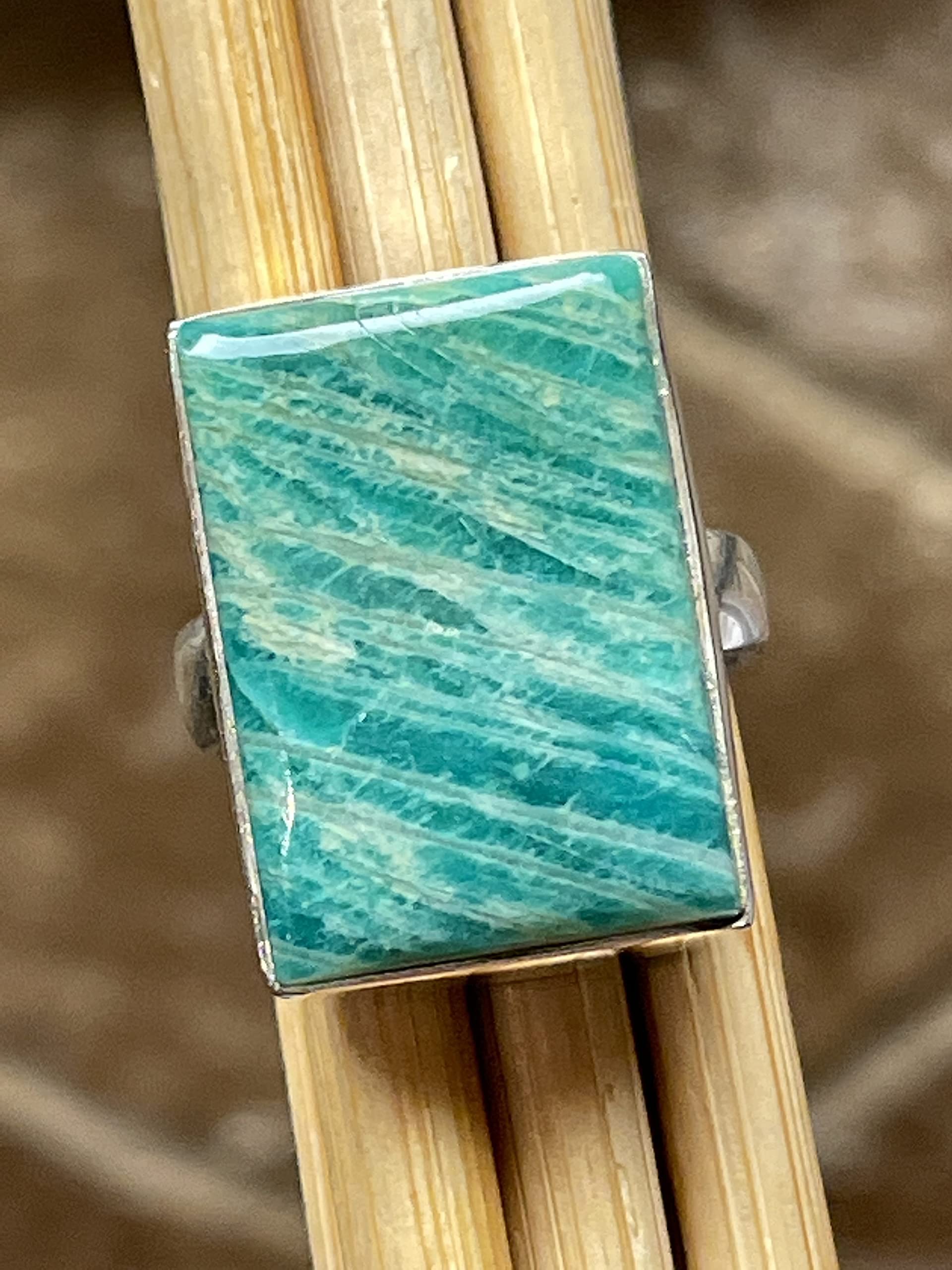 Natural Green Amazonite 925 Solid Sterling Silver Ring Size 6.5