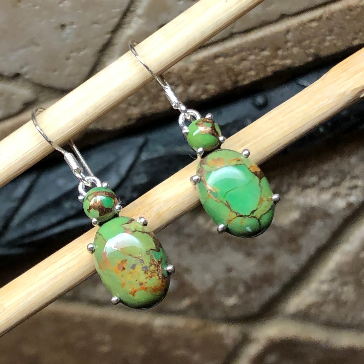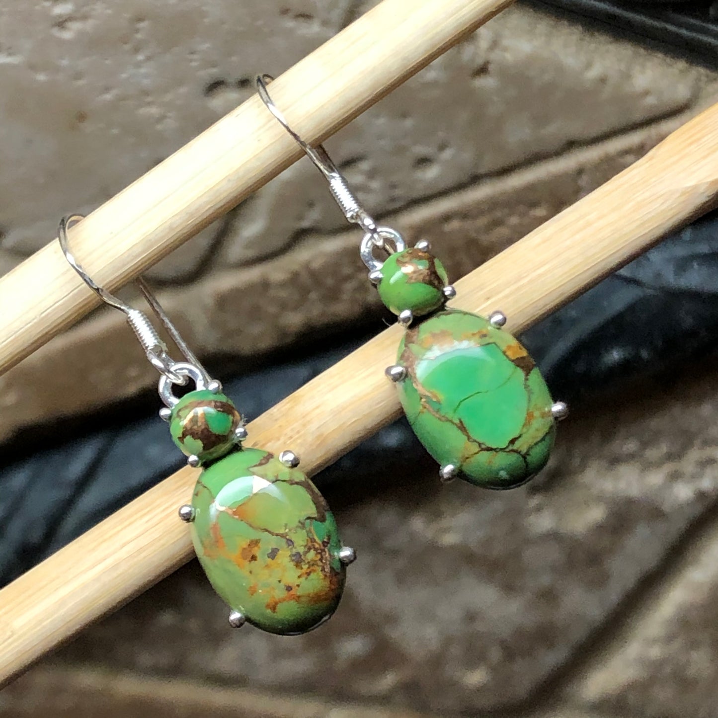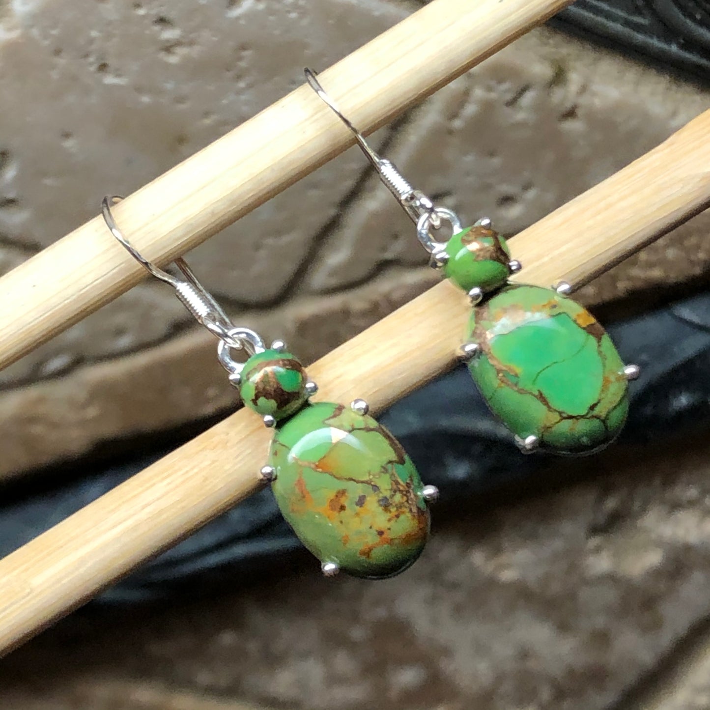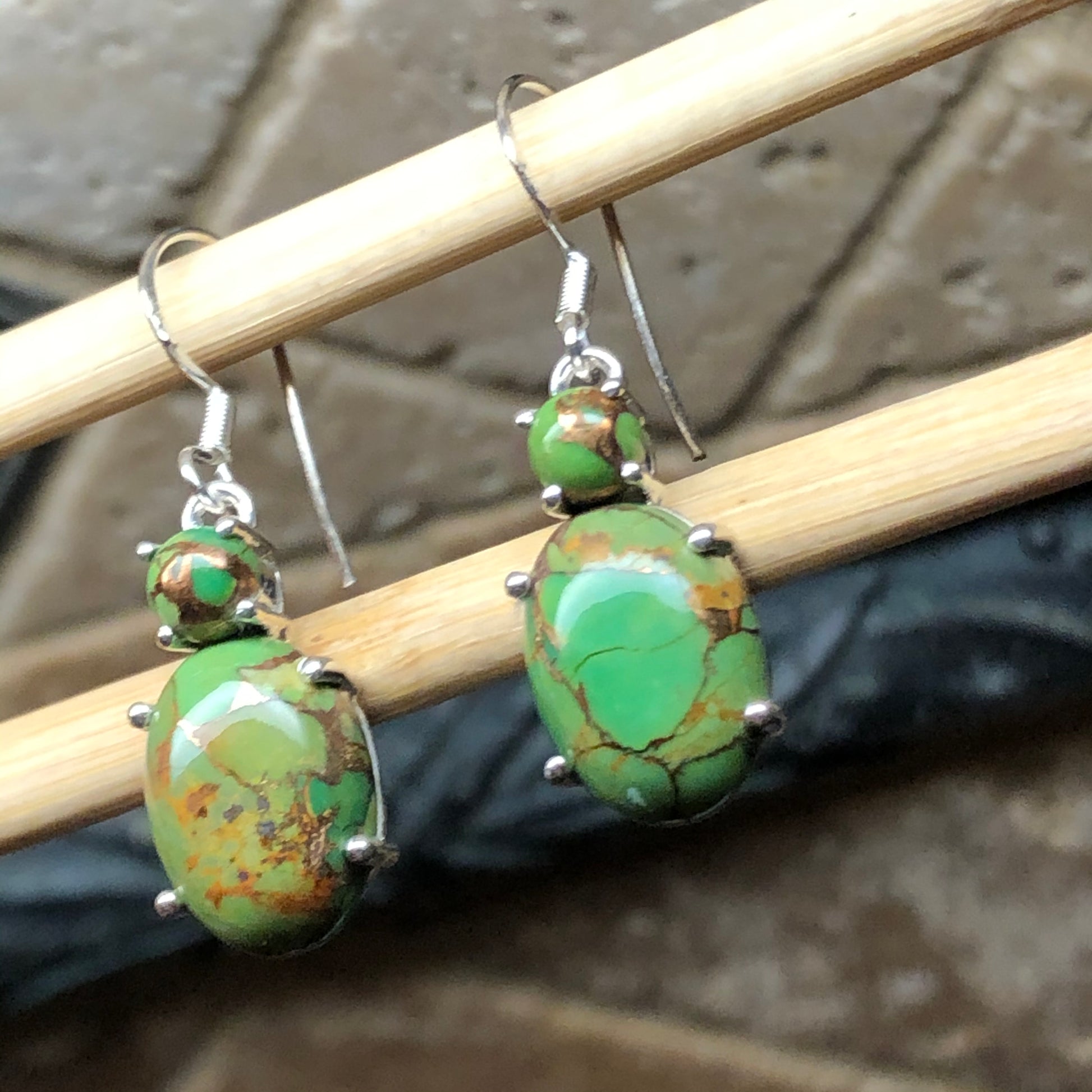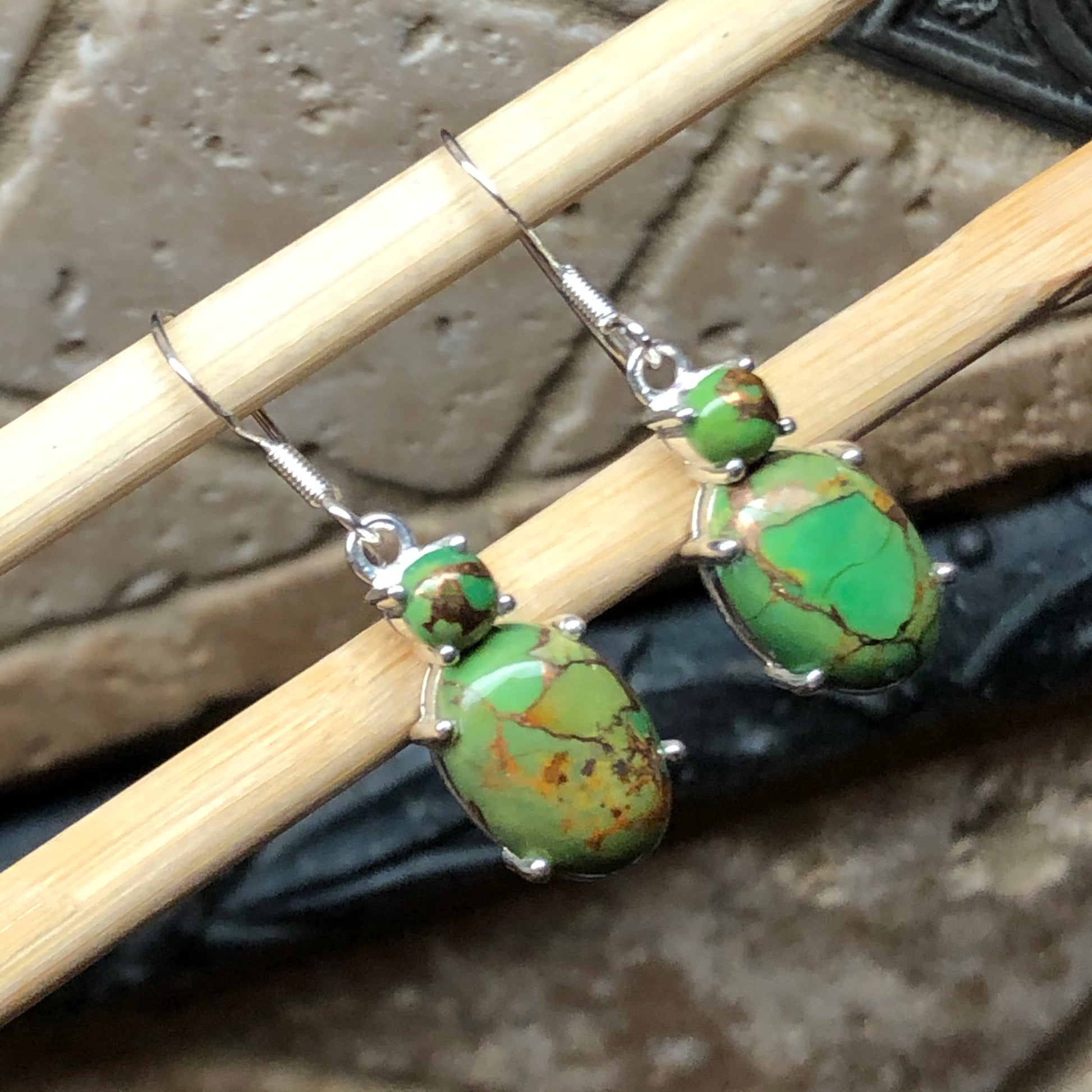 Natural Green Copper Turquoise 925 Solid Silver Earrings 35mm