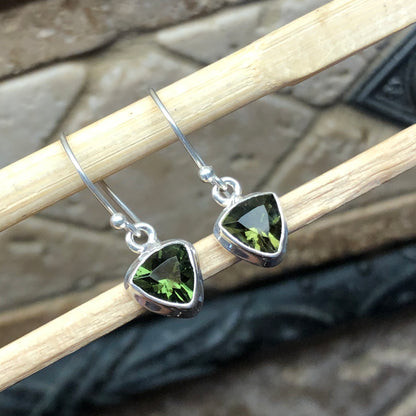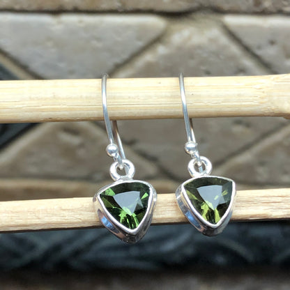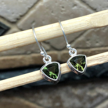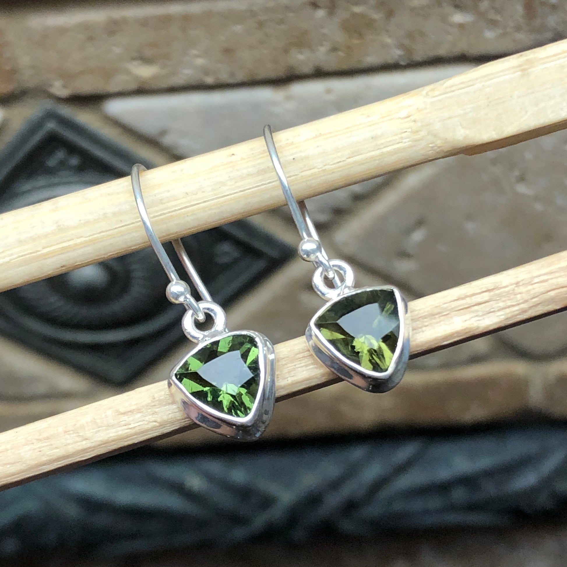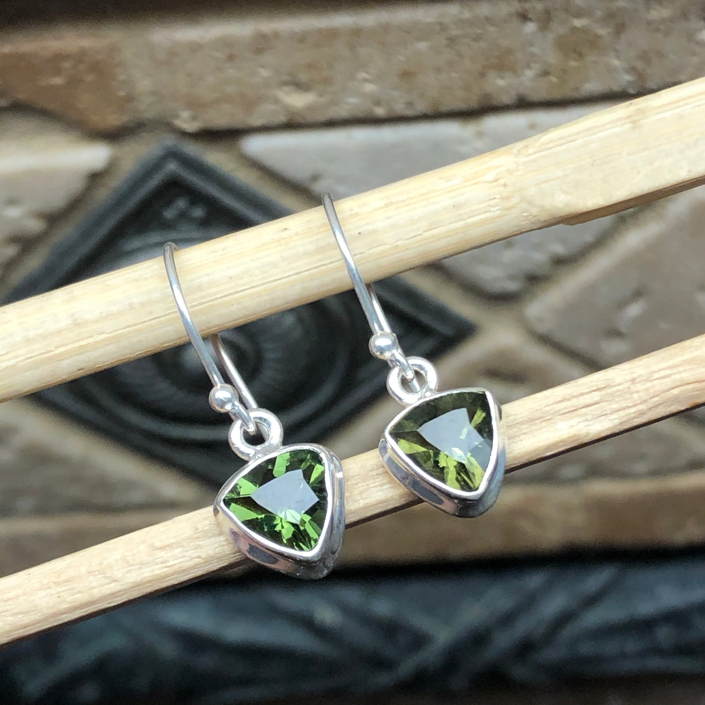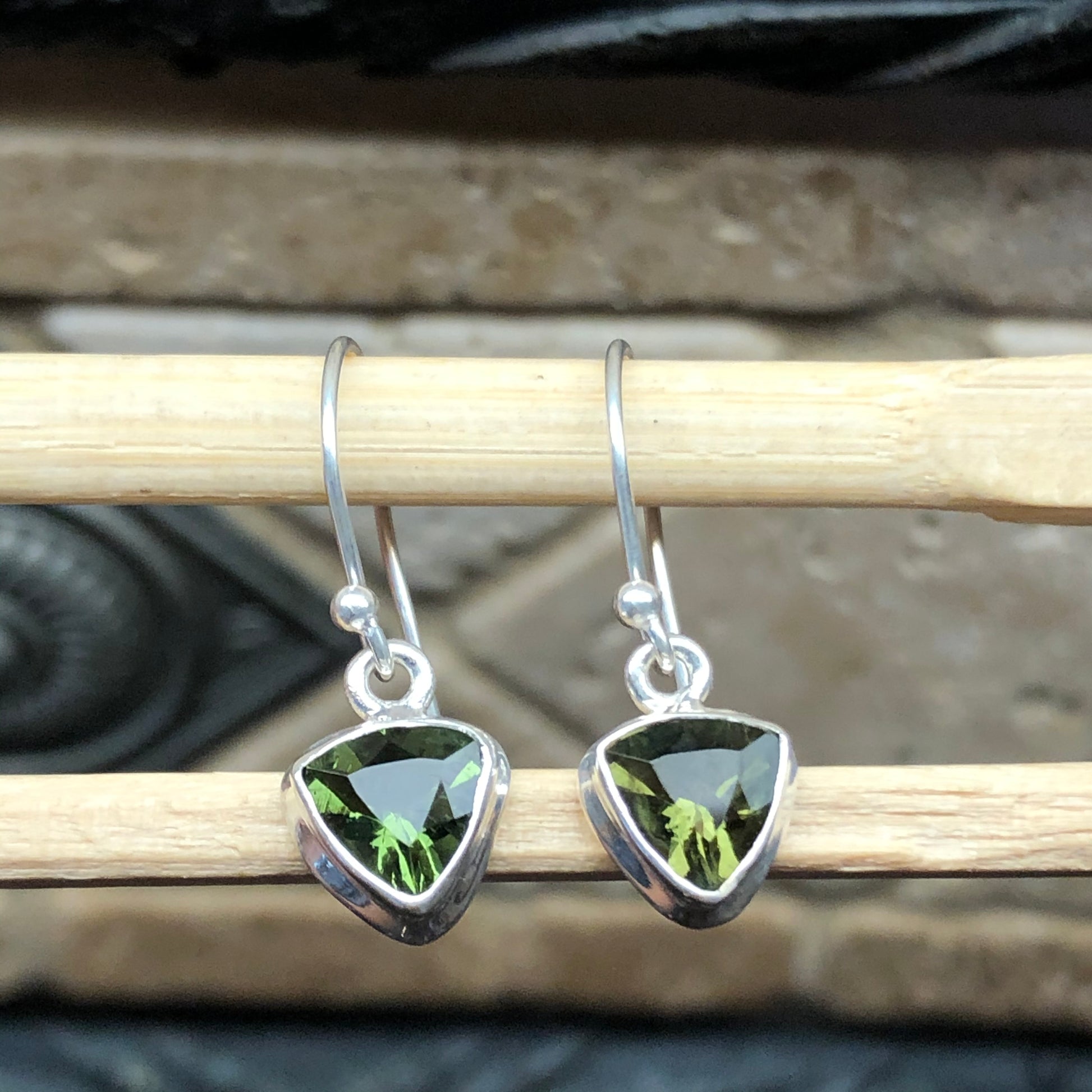 Natural Green Moldavite 925 Solid Sterling Silver Earrings 25mm