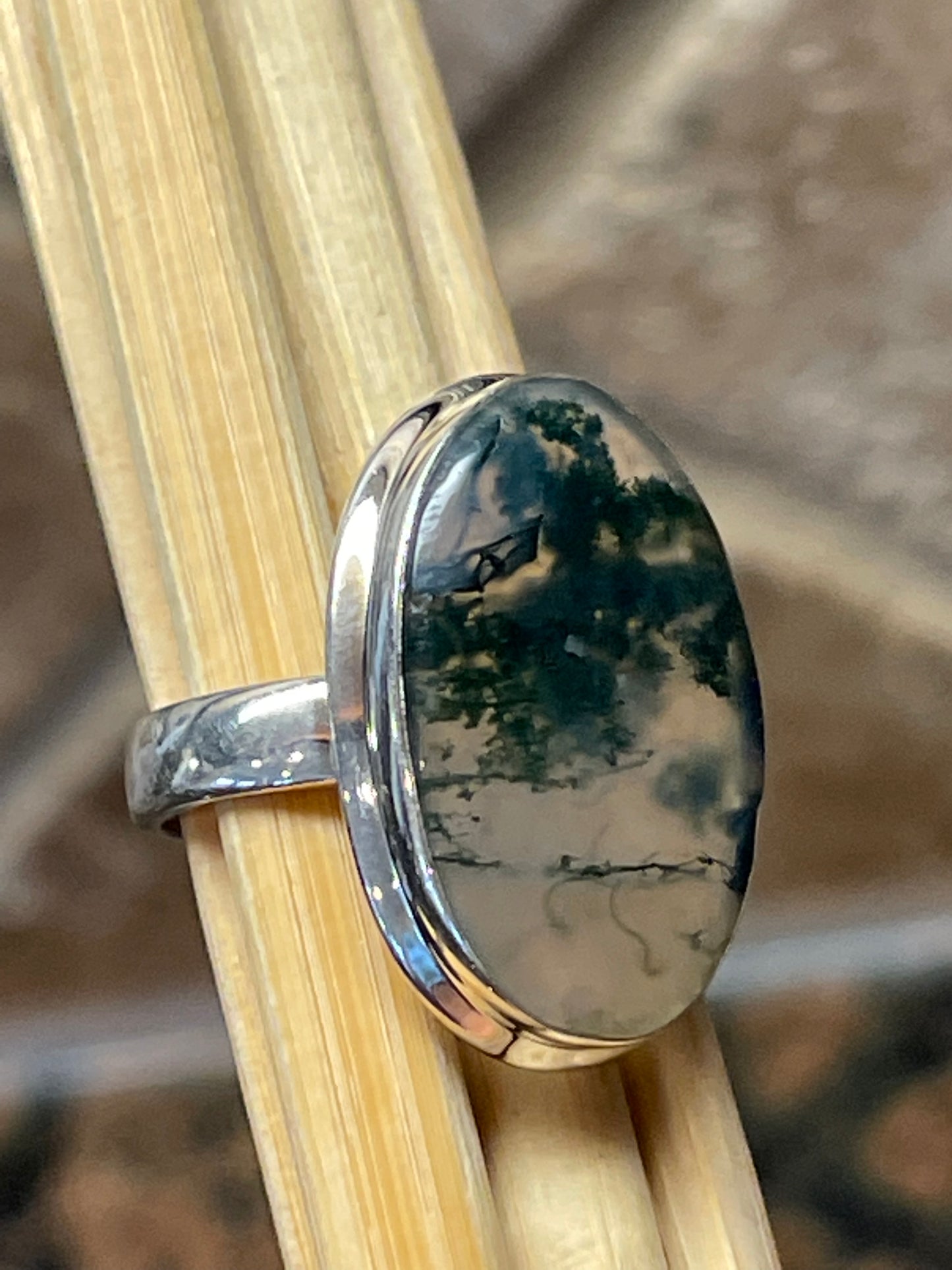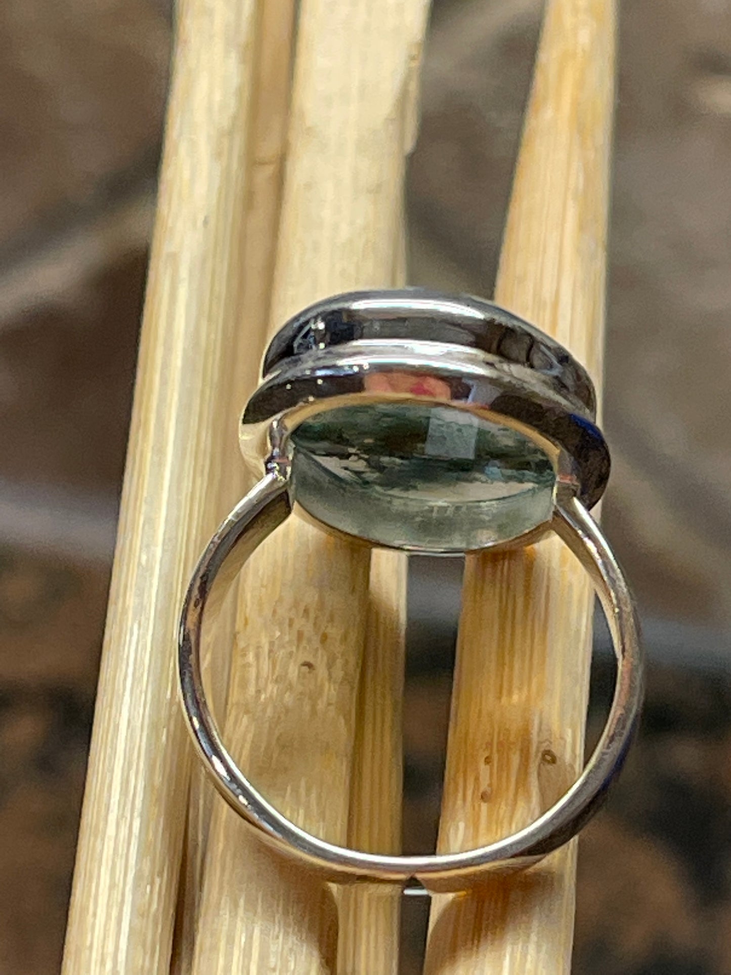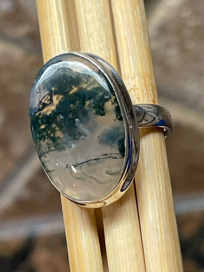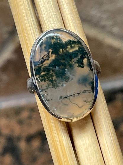 Natural Green Moss Agate 925 Solid Sterling Silver Ring Size 9.25