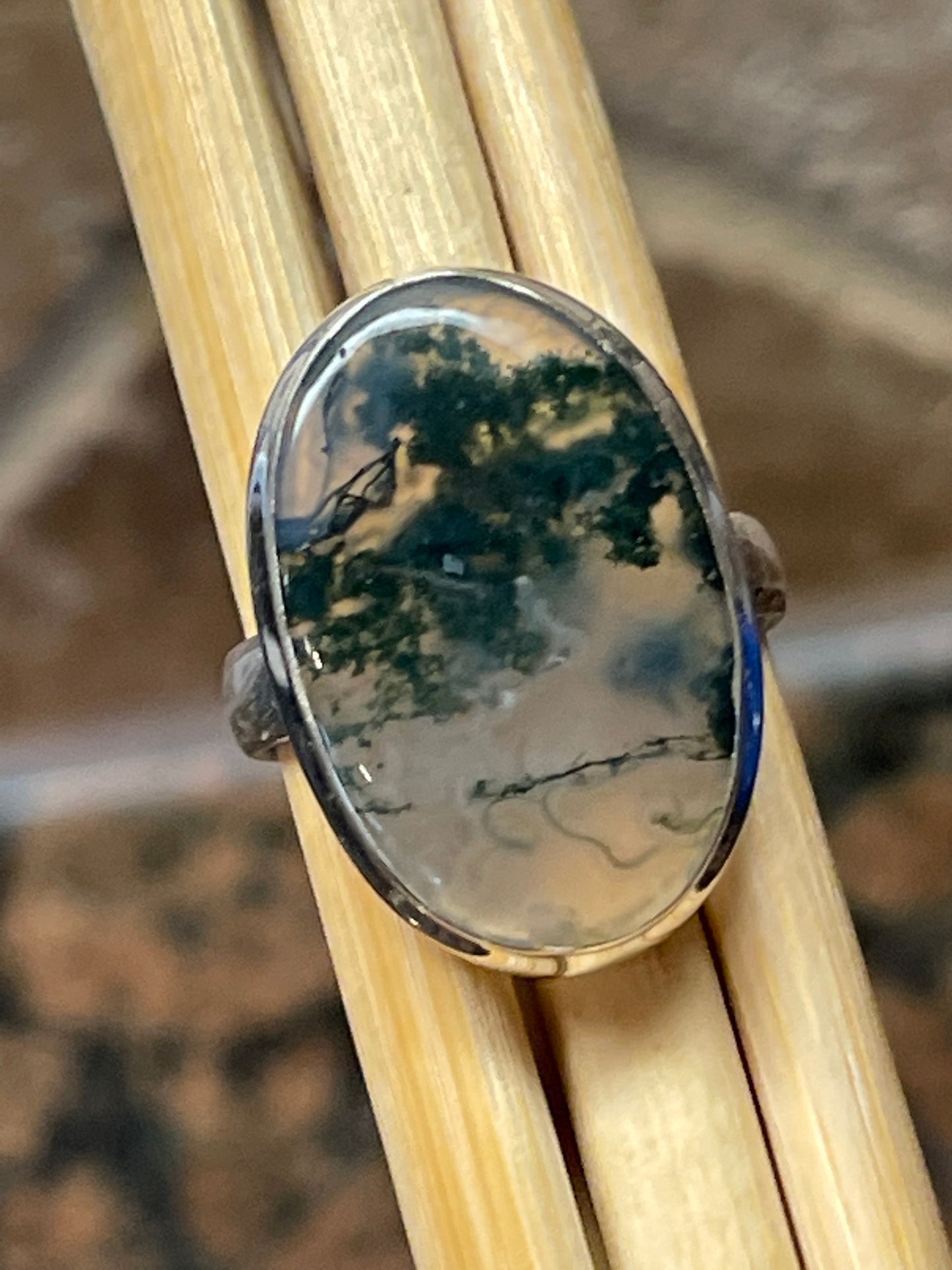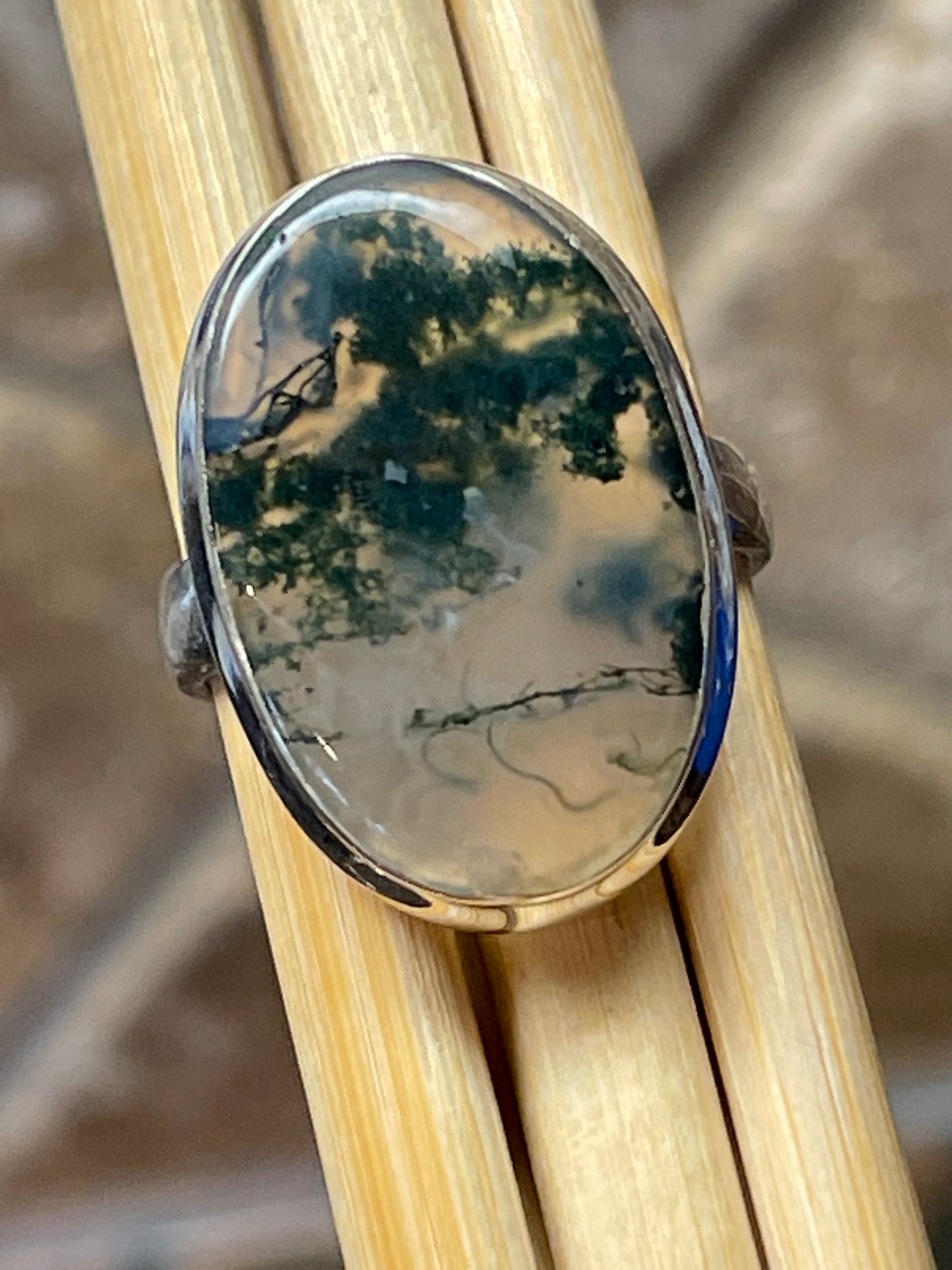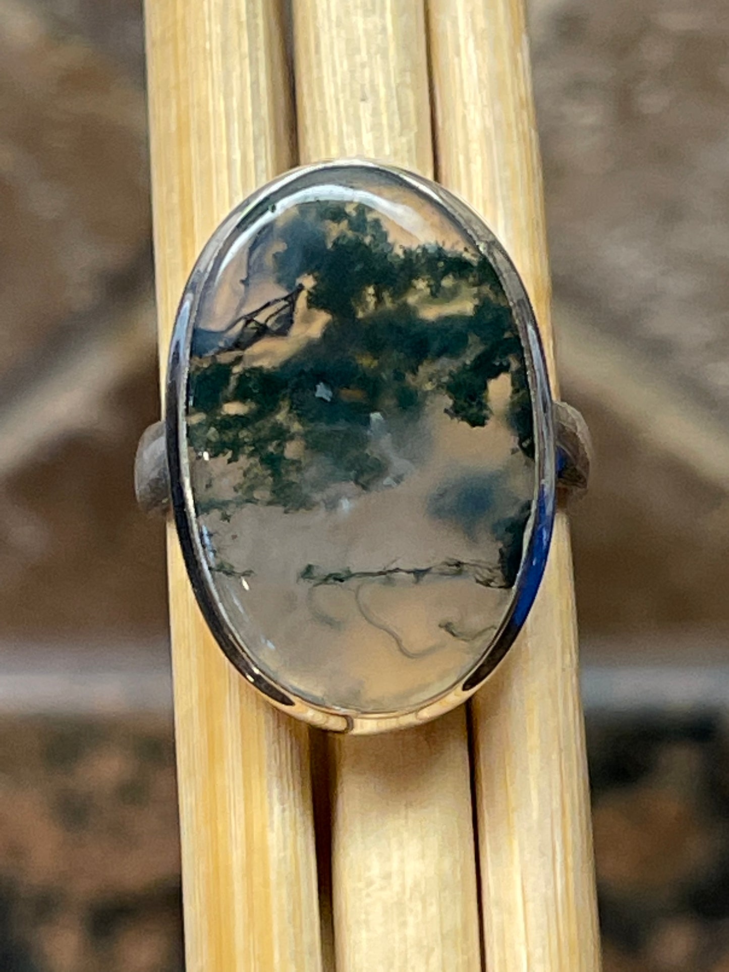 Natural Green Moss Agate 925 Solid Sterling Silver Ring Size 9.25