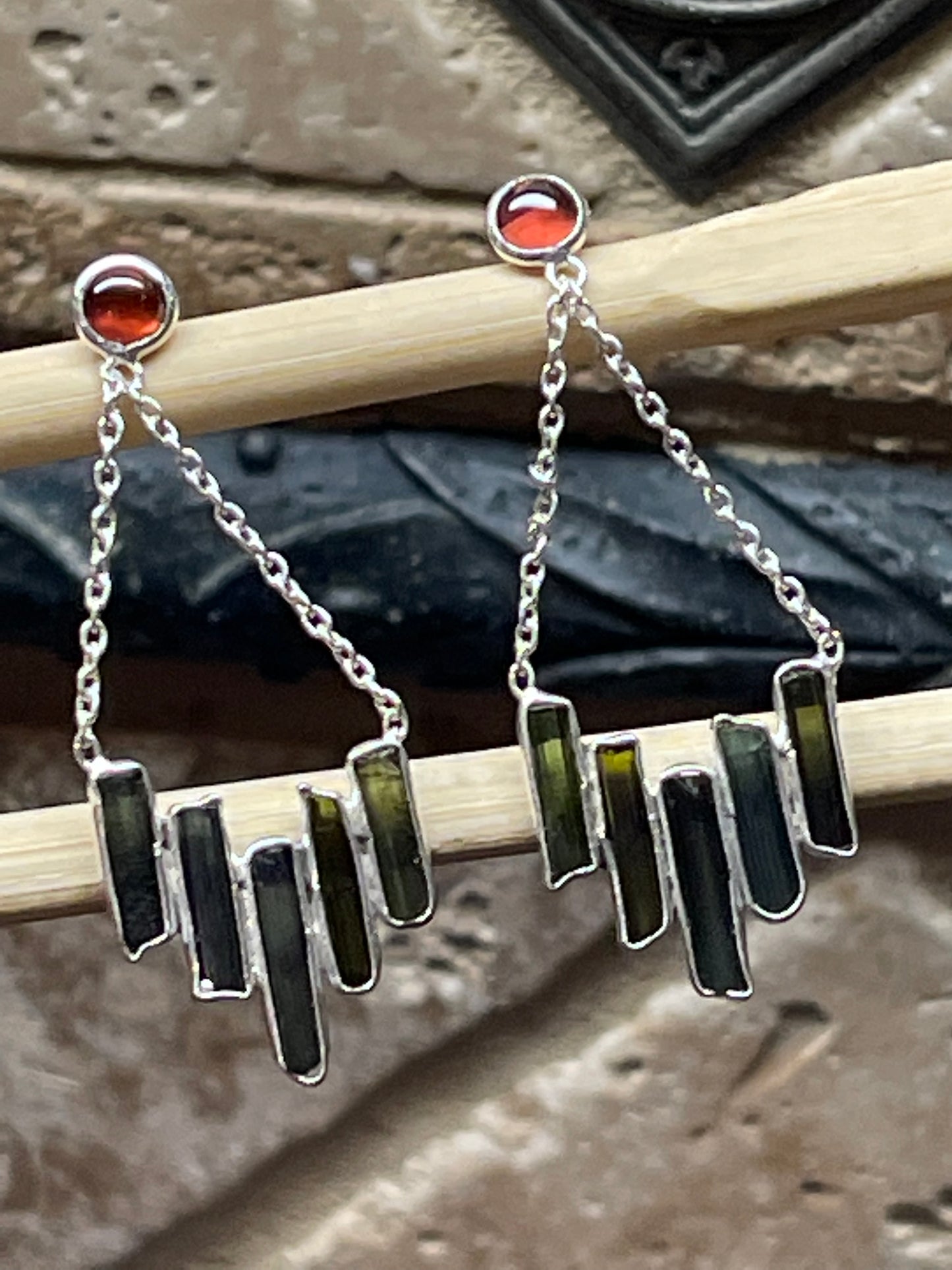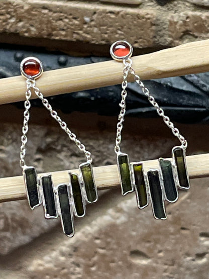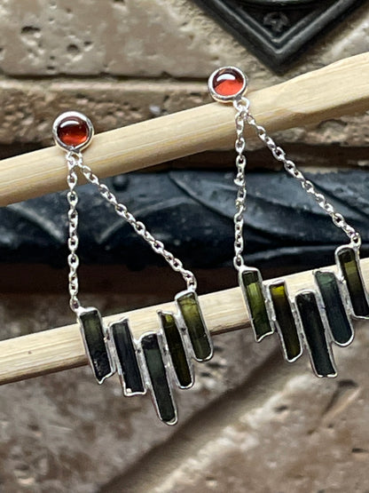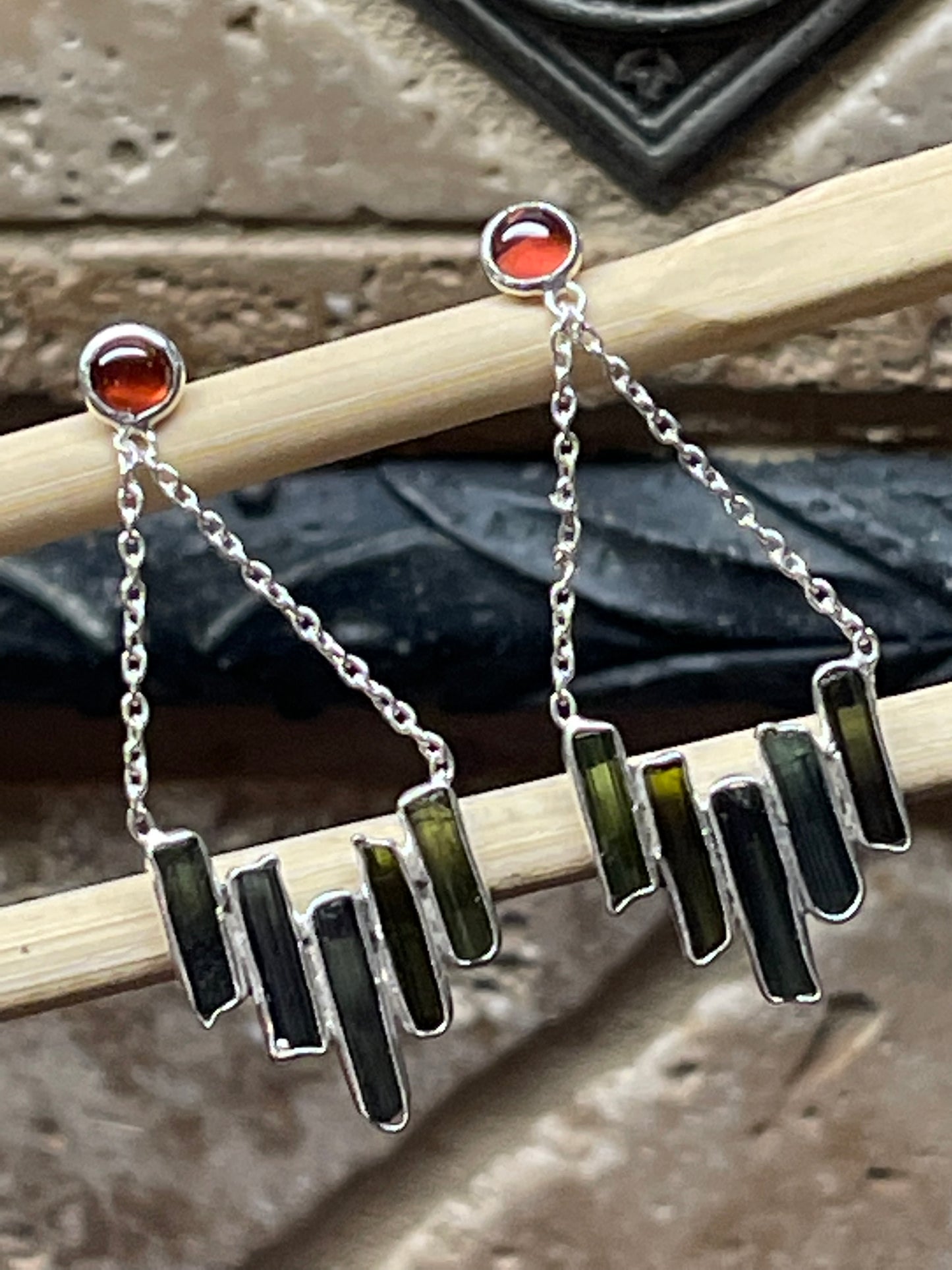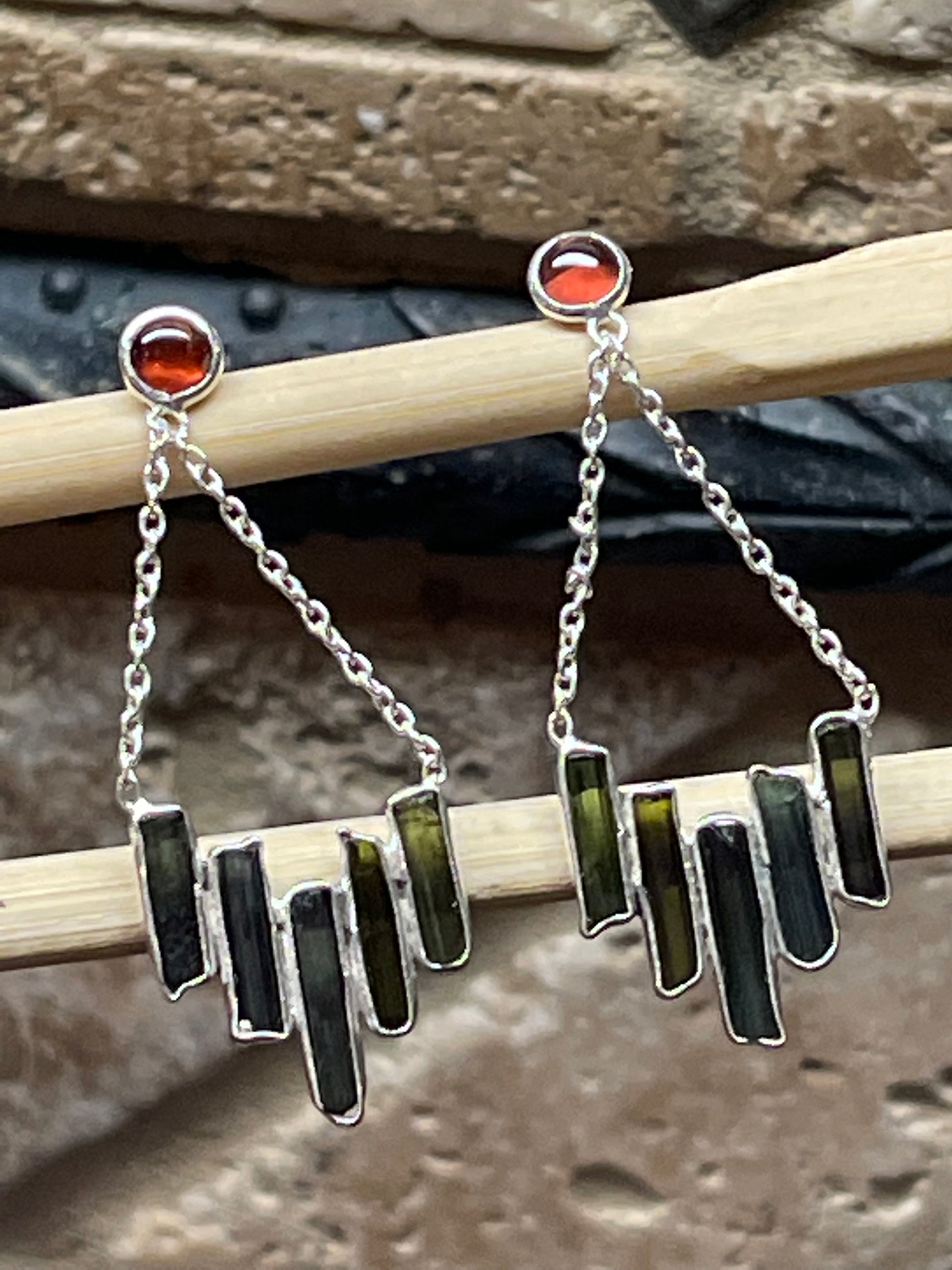 Natural Green Tourmaline 925 Solid Sterling Silver Earrings 35mm