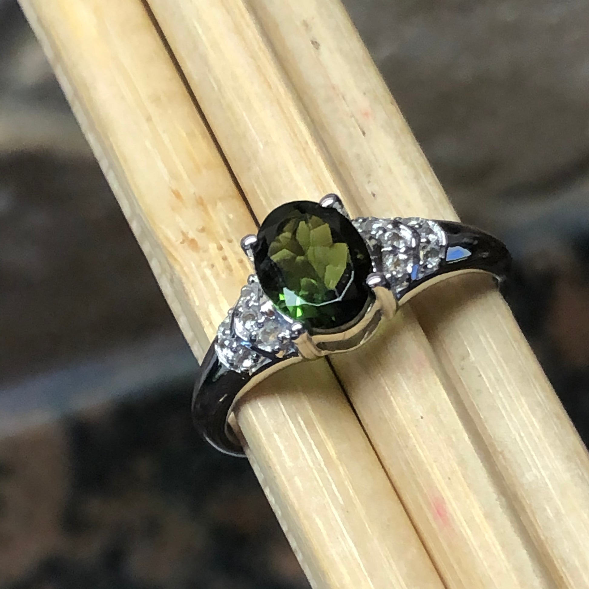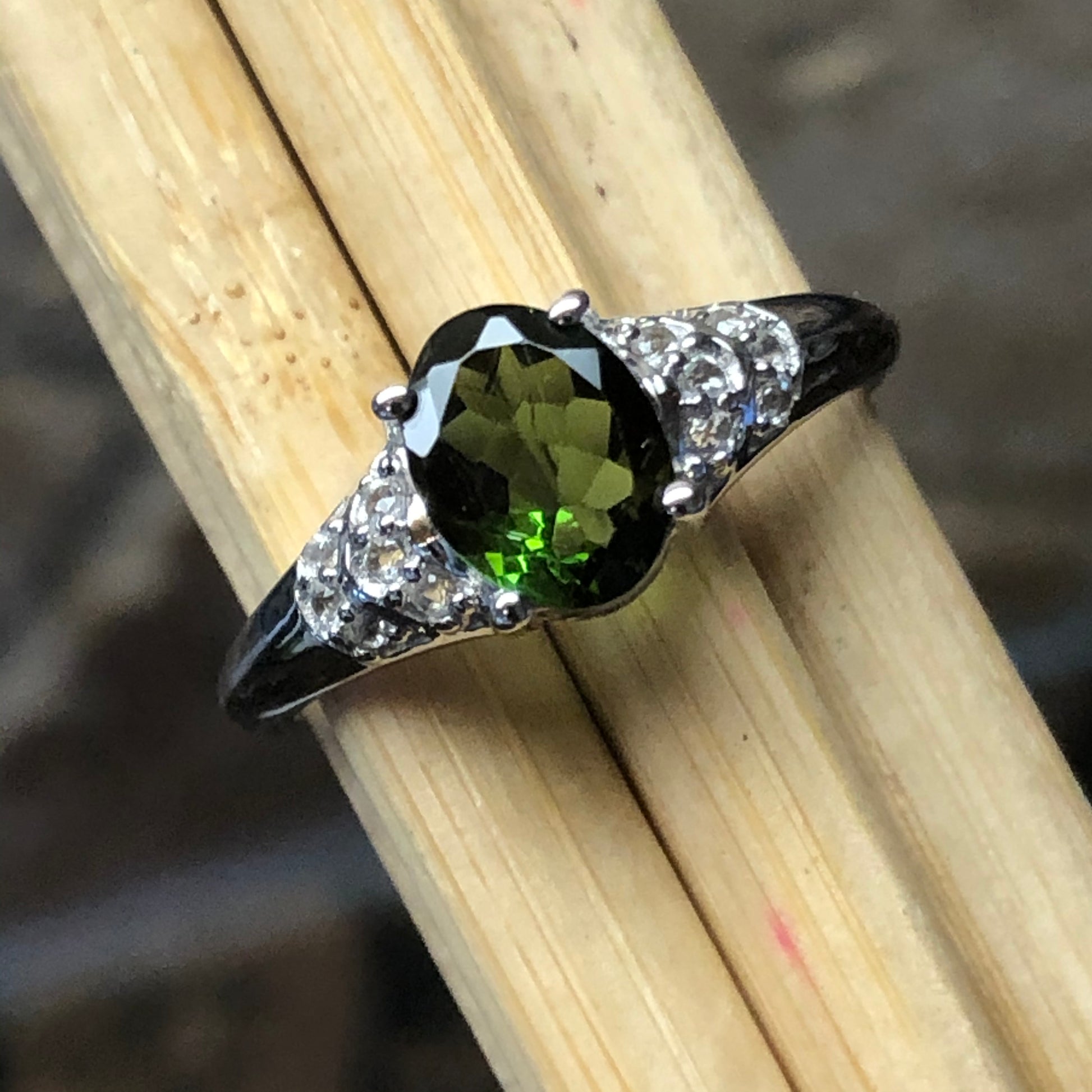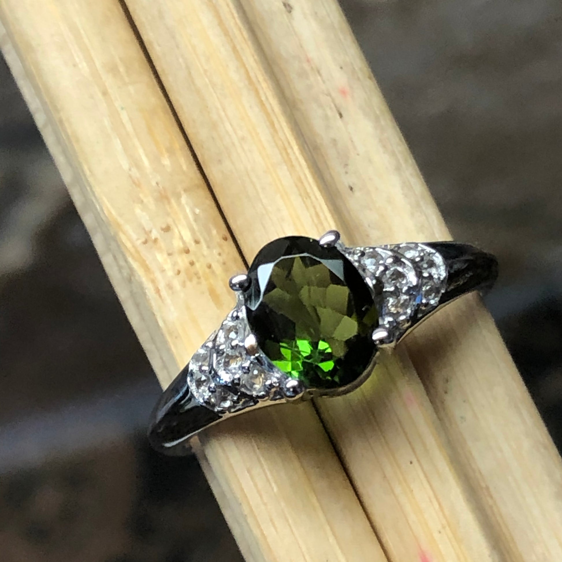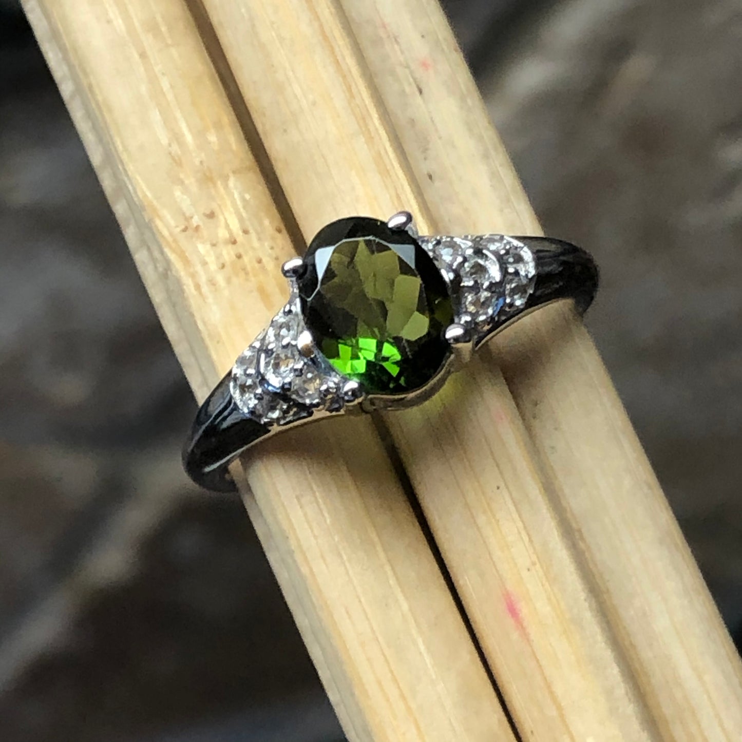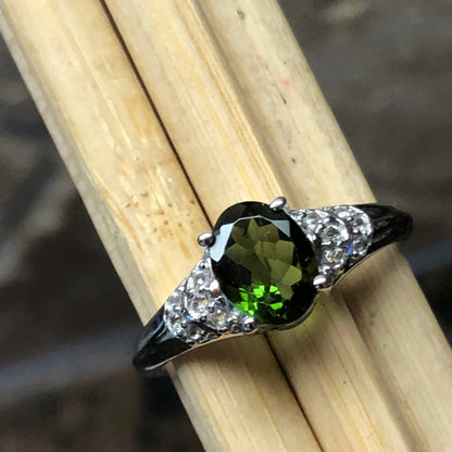 Natural Green Tourmaline 925 Sterling Silver Engagement Ring Size 6, 7, 8, 9