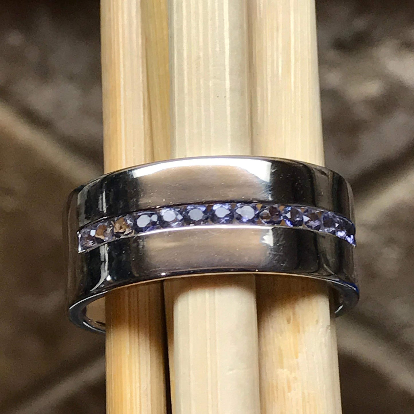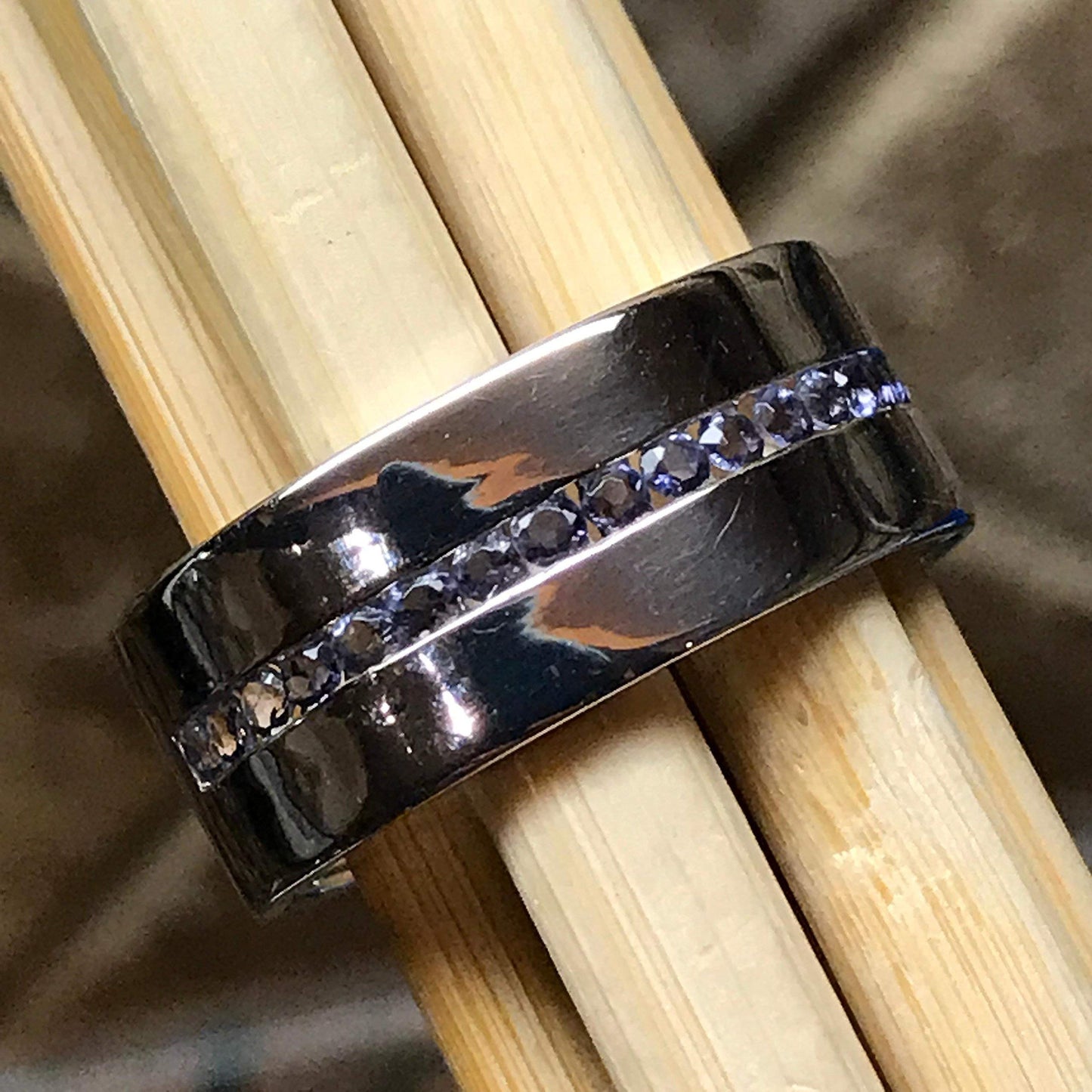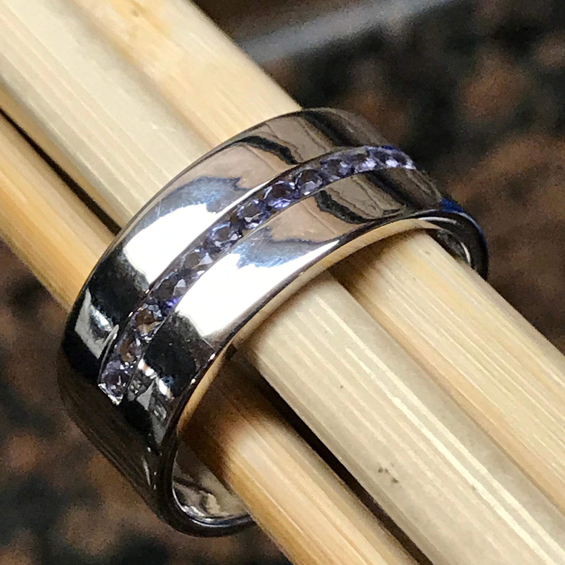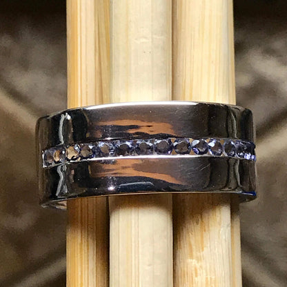 Natural Iolite 925 Sterling Silver Men's Band Ring Size 9, 11, 12