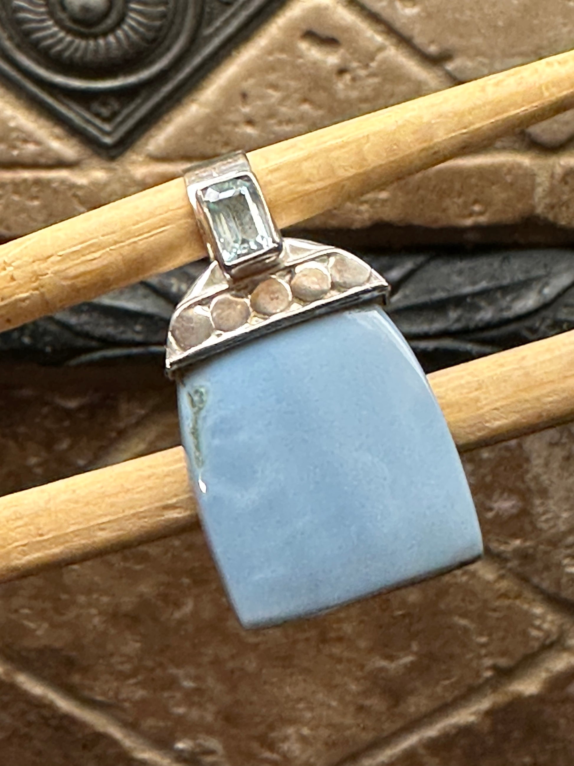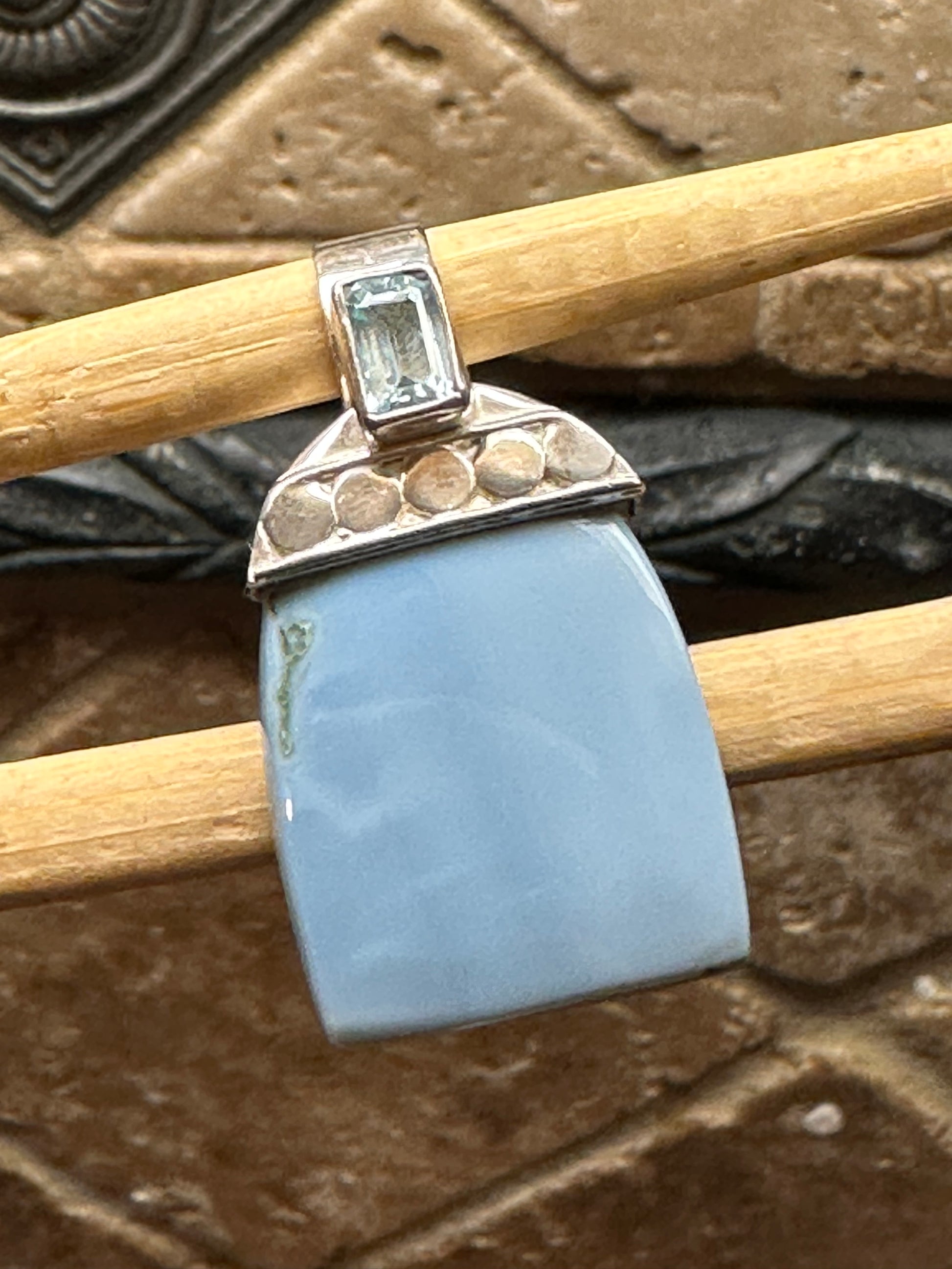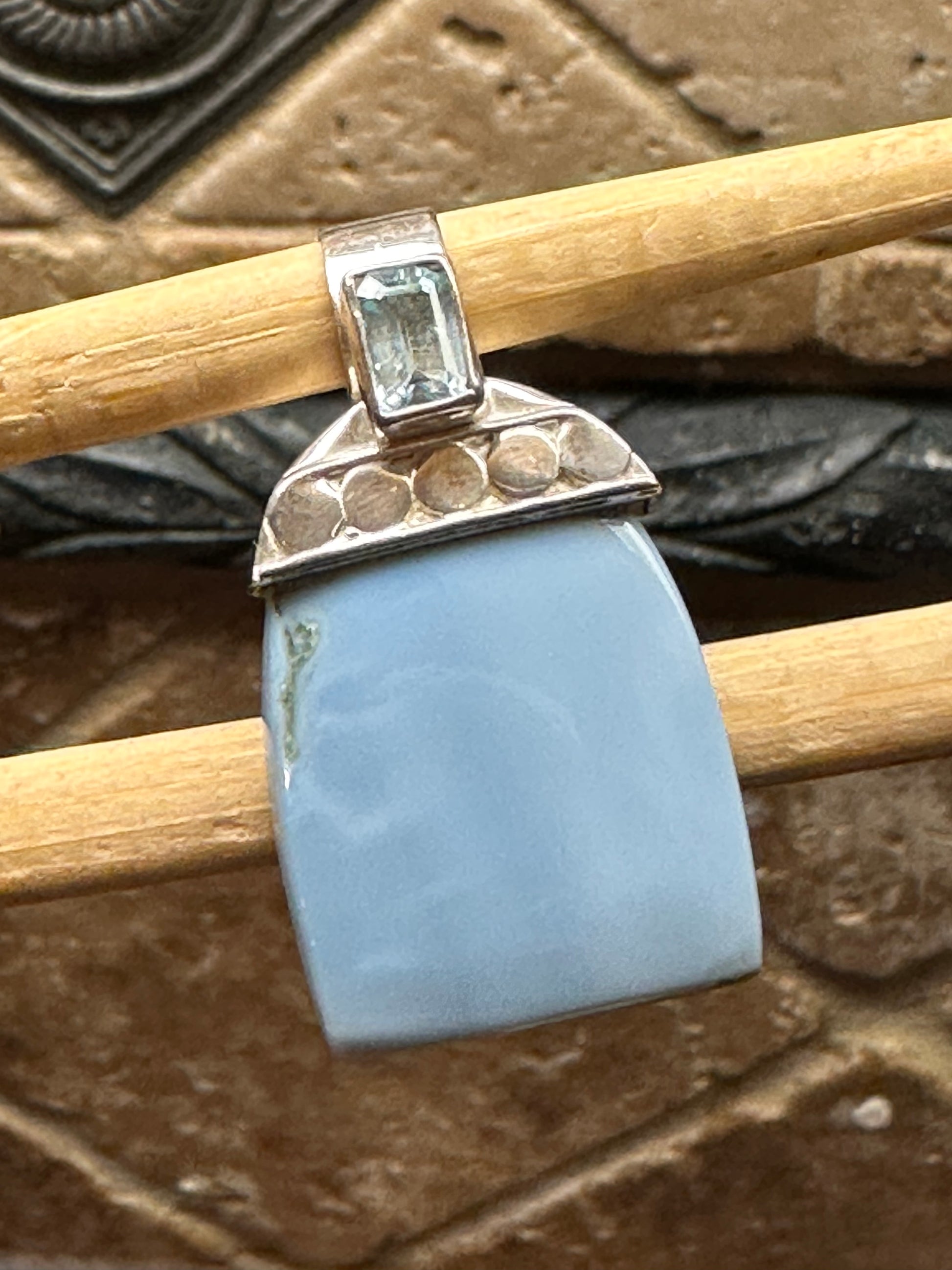 Natural Owyhee blue opal, Blue Topaz 925 Sterling Silver Unisex Pendant 50mm