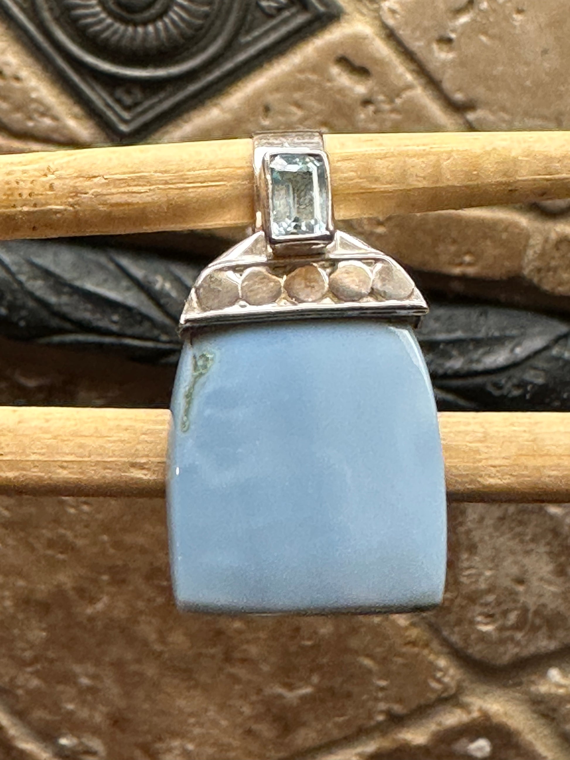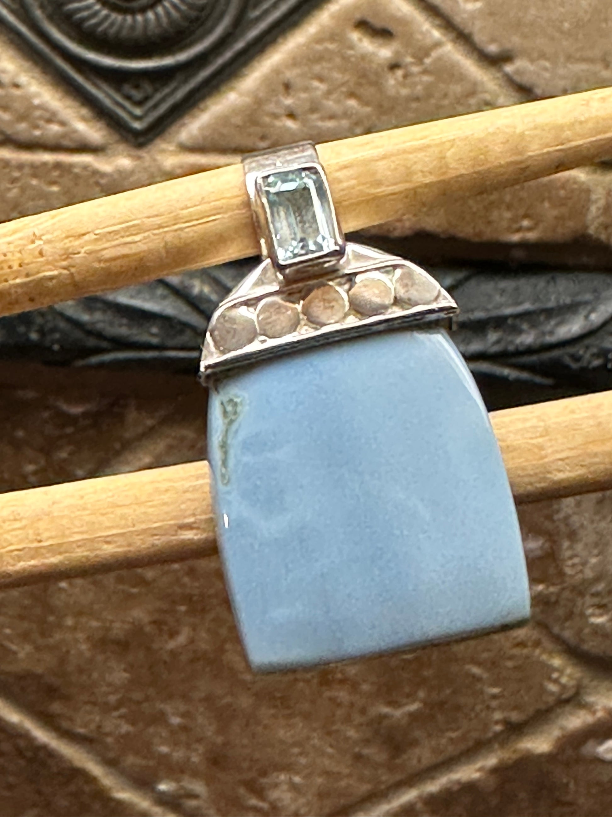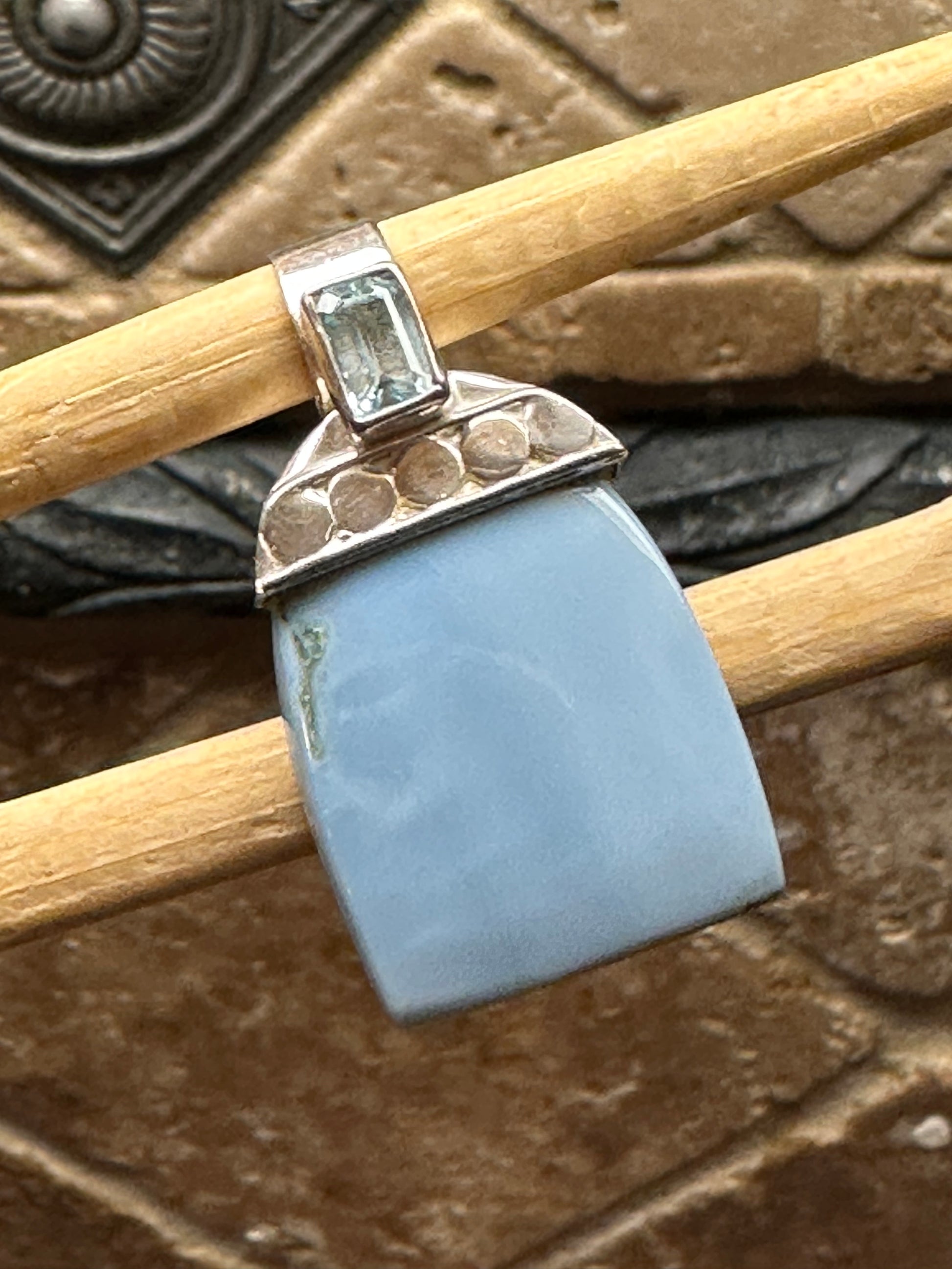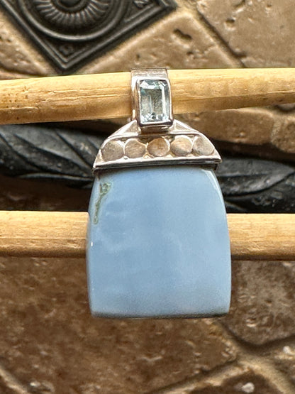 Natural Owyhee blue opal, Blue Topaz 925 Sterling Silver Unisex Pendant 50mm
